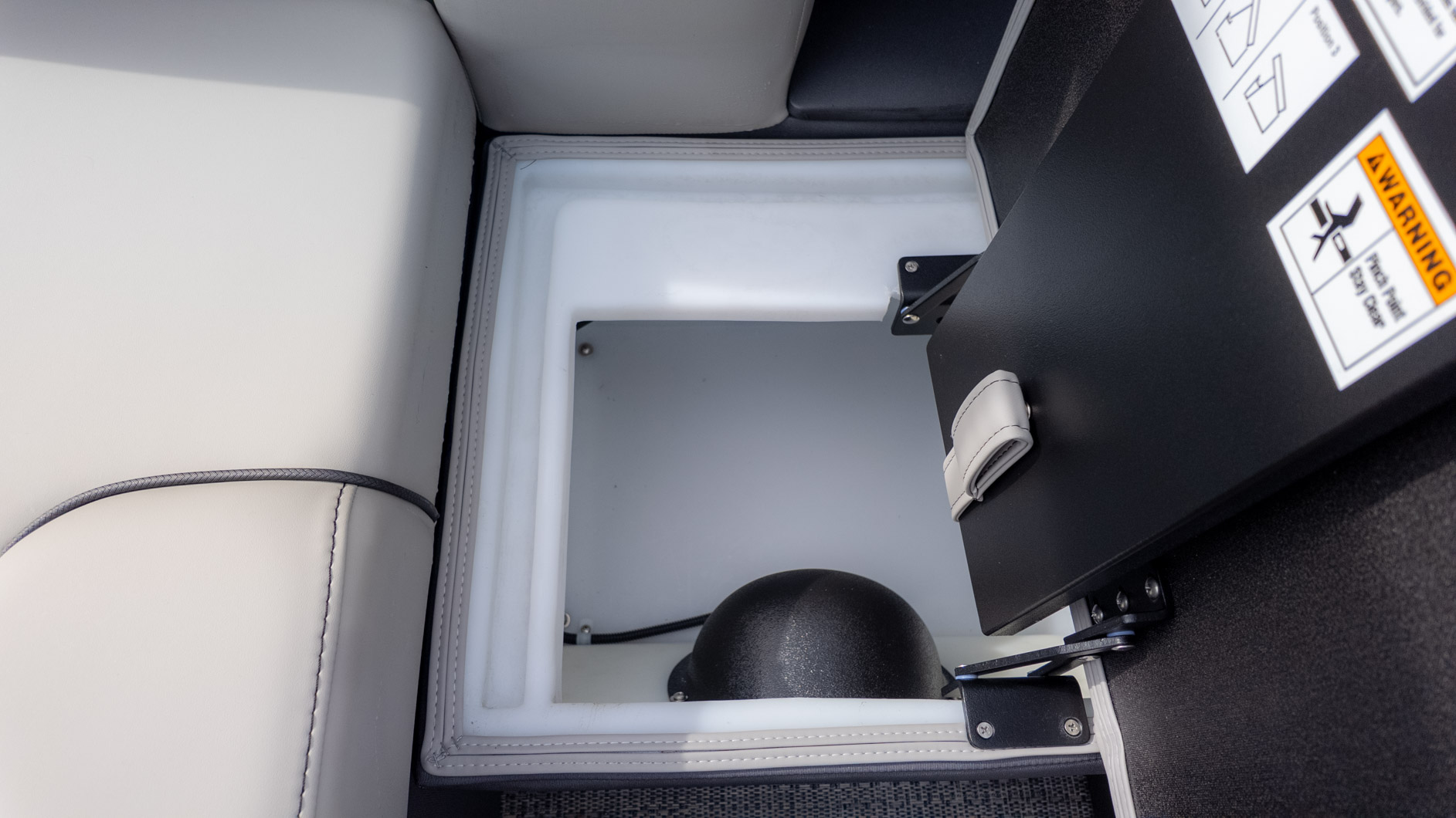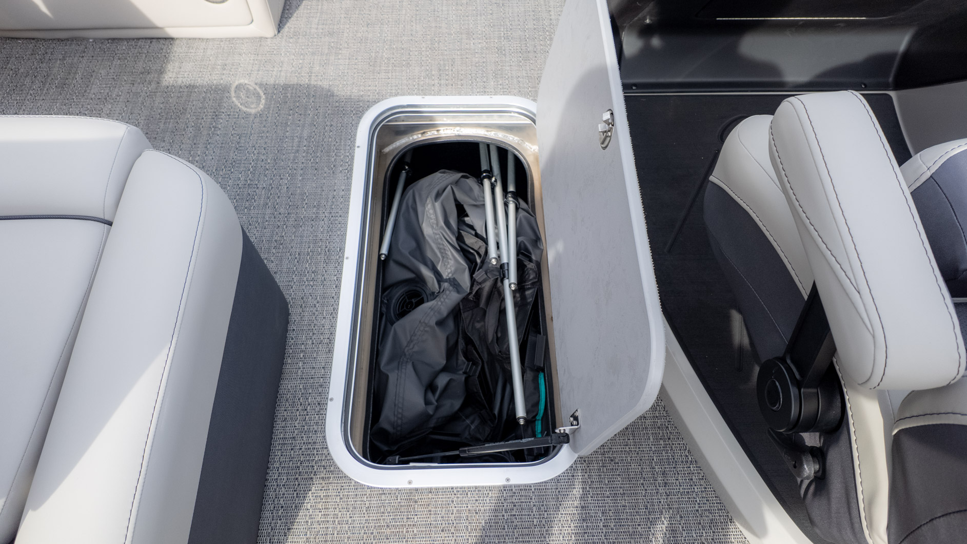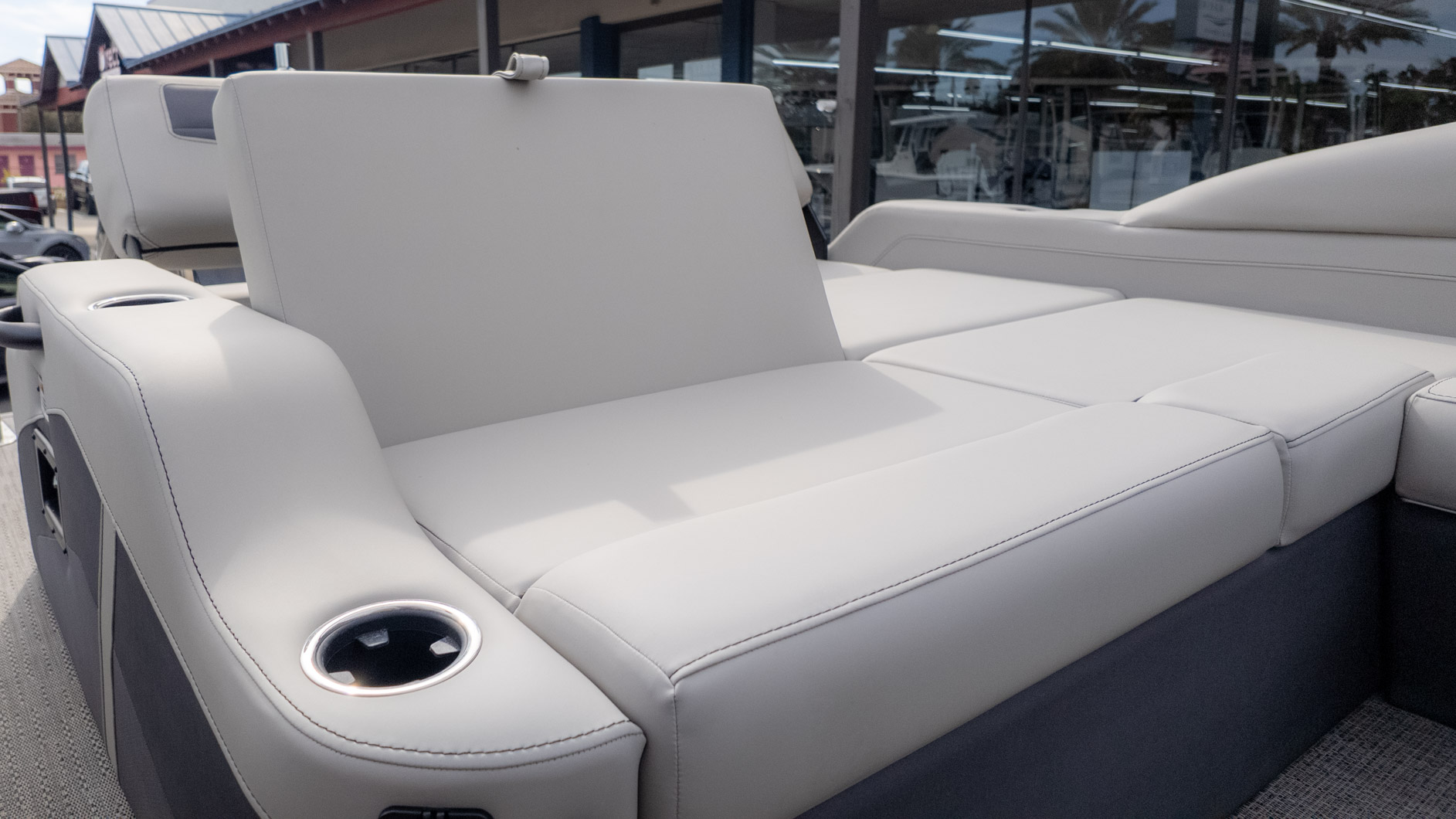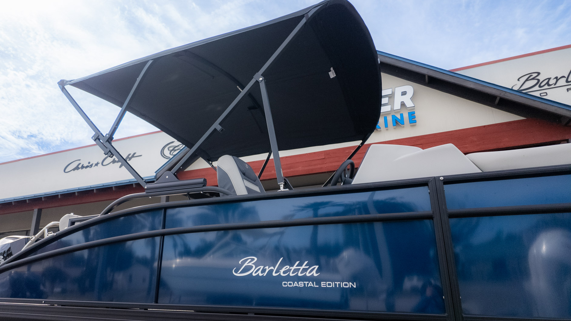 Imagine setting sail with the sun glinting off the Blue Sapphire rails, surrounded by the sleek Blackout Package. The Marquesan Gray furniture with Charcoal accents offers a stylish and comfortable setting for all your adventures, complemented by the Amore Gray flooring underfoot. Whether you're towing water sports enthusiasts with the tube-tow cage or just kicking back with your favorite tunes on the JBL Marine Stereo, this boat promises endless fun. Plus, with integrated pet food/water dishes and a convenient stern boarding ladder, your furry friends are just as welcome on board. The Coastal Edition and Triple Toon Package, complete with midship storage, ensure a smooth and stable ride, making every journey a delight. This boat comes equipped with a Mercury 200L FourStroke engine.