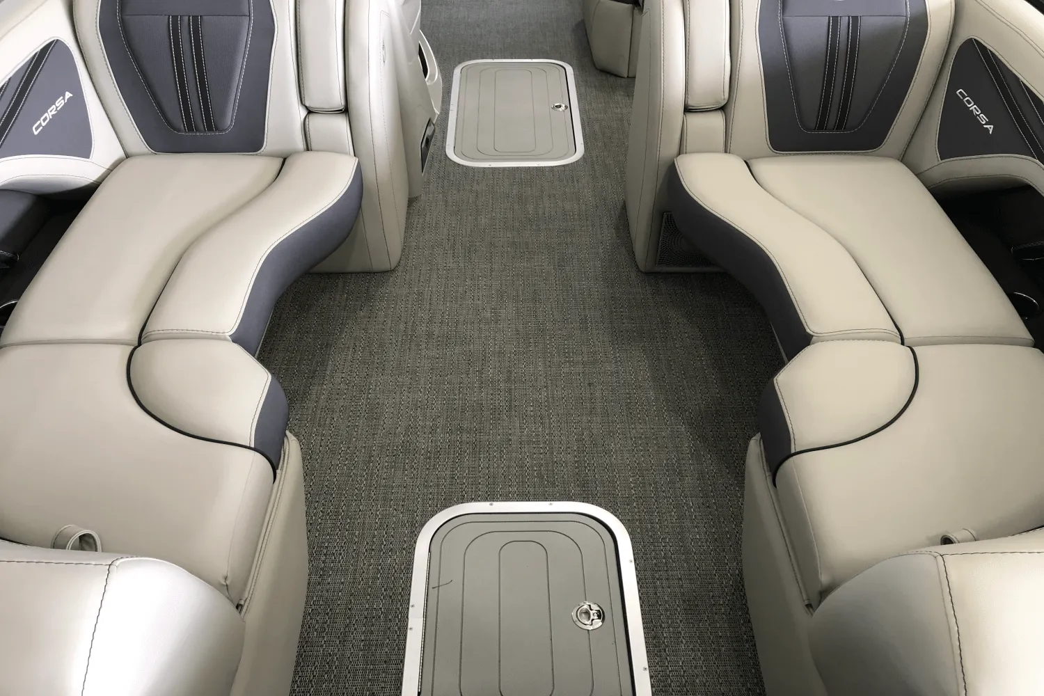 Is the Corsa right for you? Built for those who want everything that makes Barletta great, with a sporty, aggressive stance. Sleek exterior lines with a muscle-car feel, chrome badging, the best helm in its class, and interior furniture featuring three interior accents to add the perfect pop of color, creates an upgraded experience at an astonishing price point. You'll be the leader of the pack no matter what body of water you call home. Corsa- see yourself on the water Feeling the wind in your hair and watching heads turn is just the start of your day on the water with a Corsa. Find yourself in this hot rod and watch your wildest dreams come true.