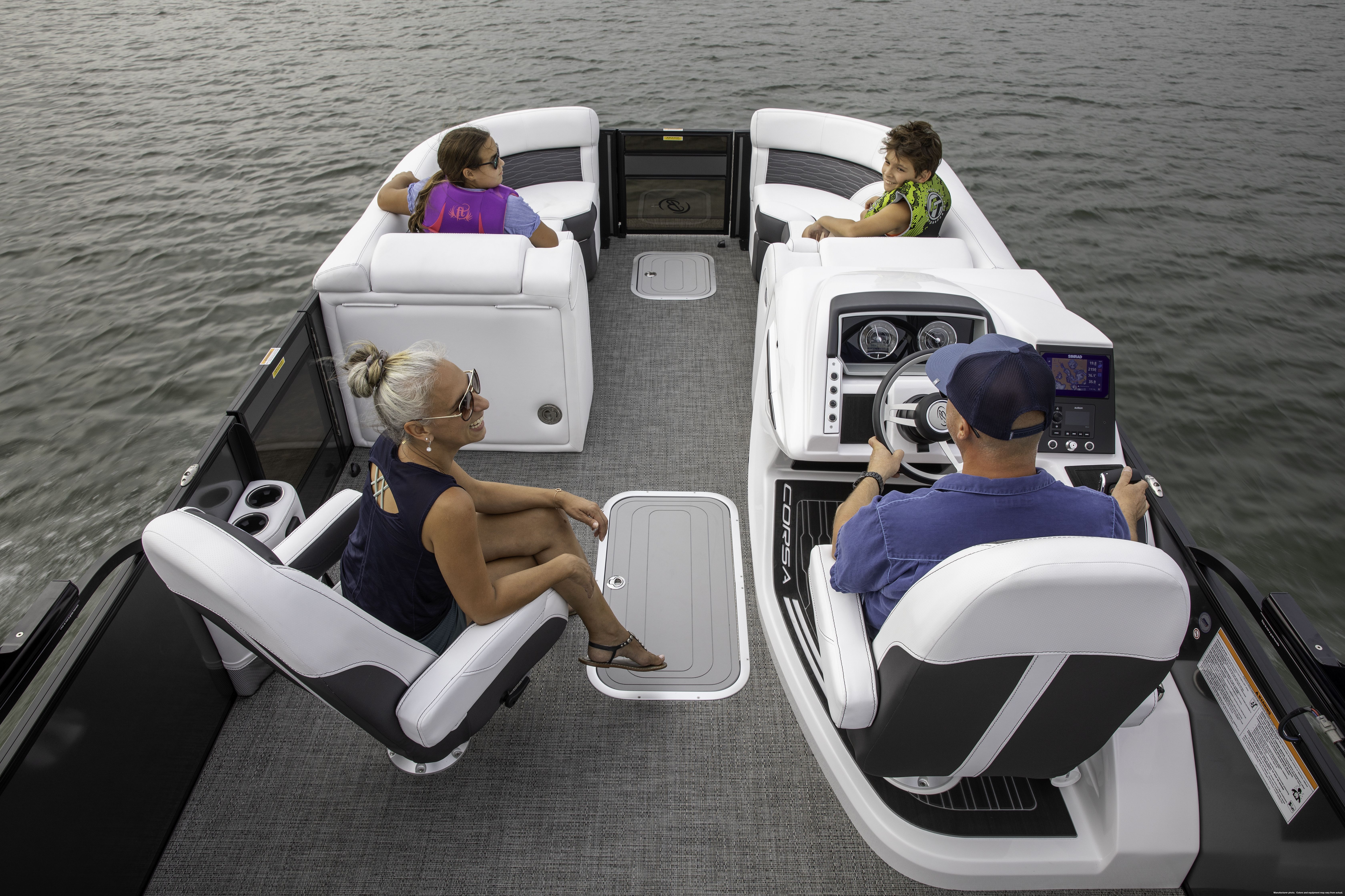 Is the Corsa right for you? Built for those who want everything that makes Barletta great, with a sporty, aggressive stance. Sleek exterior lines with a muscle-car feel, chrome badging, the best helm in its class, and interior furniture featuring three interior accents to add the perfect pop of color, creates an upgraded experience at an astonishing price point. You'll be the leader of the pack no matter what body of water you call home. Corsa- see yourself on the water Feeling the wind in your hair and watching heads turn is just the start of your day on the water with a Corsa. Find yourself in this hot rod and watch your wildest dreams come true.