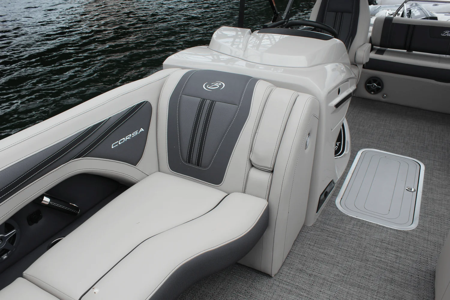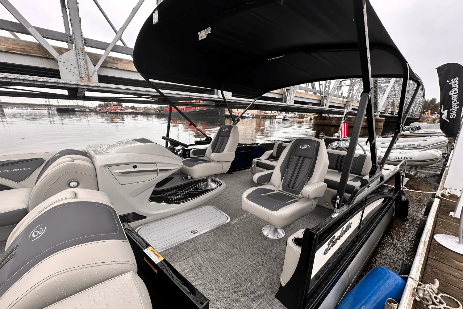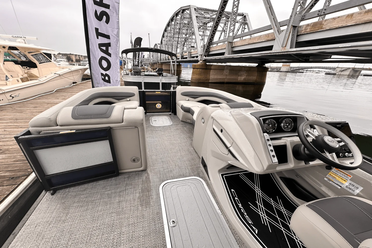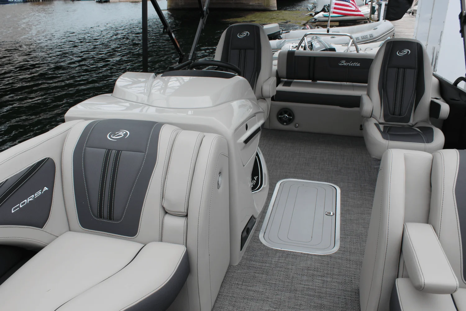 Contact us to find out ALL available savings! The Barletta Corsa 23 UC isn’t just a pontoon—it’s a statement on the water. With muscle-car-inspired styling, sleek aggressive lines, and chrome accents, you’ll be the one everyone notices at the dock. Step inside and enjoy bold interior accents, premium flooring, and a layout built for fun, comfort, and entertaining—this isn’t your average boat, it’s a showstopper. Powered by the Mercury 200L FourStroke, the Corsa delivers an incredible, exhilarating ride that feels smooth, fast, and effortless. Whether you’re cruising, towing, or soaking up the sun with friends and family, this boat makes every moment unforgettable. Triple toon construction, midship storage, stereo upgrades, and a bow anchor locker mean it’s ready for anything. Plus, Barletta is renowned for top-tier customer service, making every part of your ownership experience seamless and worry-free. This is more than a boat—it’s a lifestyle, a thrill, and a statement. Be ready for attention, smiles, and unforgettable days on the water with the Corsa 23 UC.
