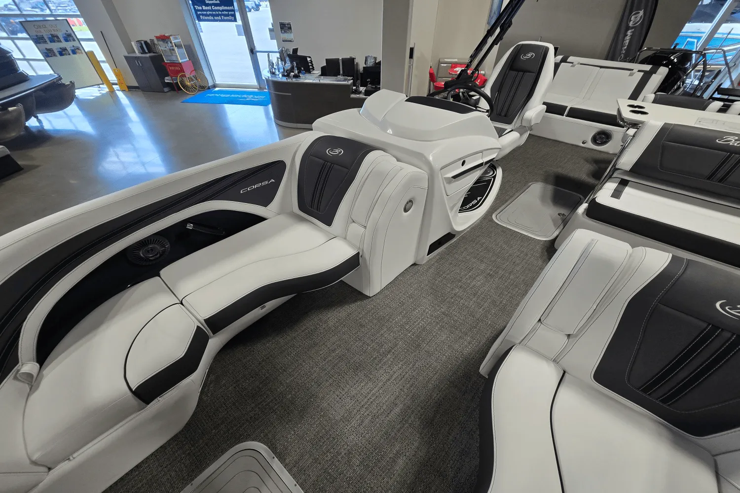 Is the Corsa right for you? Built for those who want everything that makes Barletta great, with a sporty, aggressive stance. Sleek exterior lines with a muscle-car feel, chrome badging, the best helm in its class, and interior furniture featuring three interior accents to add the perfect pop of color, creates an upgraded experience at an astonishing price point. You'll be the leader of the pack no matter what body of water you call home. Corsa- see yourself on the water Feeling the wind in your hair and watching heads turn is just the start of your day on the water with a Corsa. Find yourself in this hot rod and watch your wildest dreams come true.