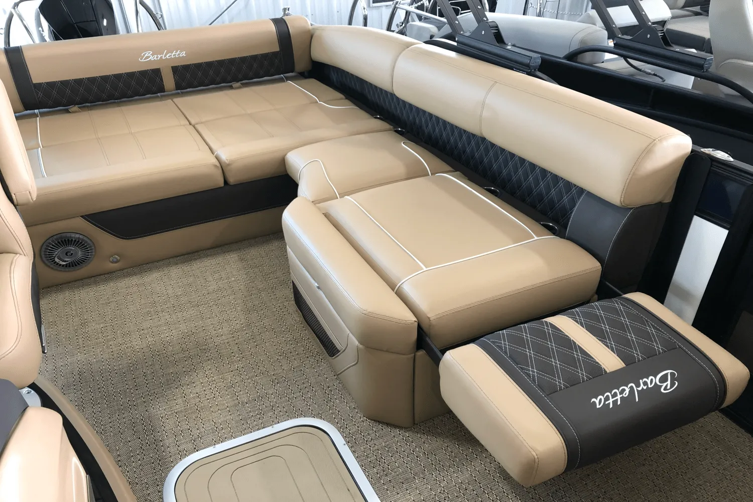 Is Lusso right for you? Designed with you, and your on-water experience, in mind, the Barletta Lusso models offer something for everyone. A classic and stylish rail-set, ultra-soft and ultra-comfortable furniture, a sleek helm loaded with technology and leg-room, pet-friendly amenities...the list goes on and on. Take a look and see why the Barletta L-Class pontoon boat just might be the perfect choice for you and your family. Lusso-Elevate your boating experience The Lusso brings comfort and luxury to your on-water experience. High-end touches and feature-rich, you and your family will find everything you've ever wanted in a boat.