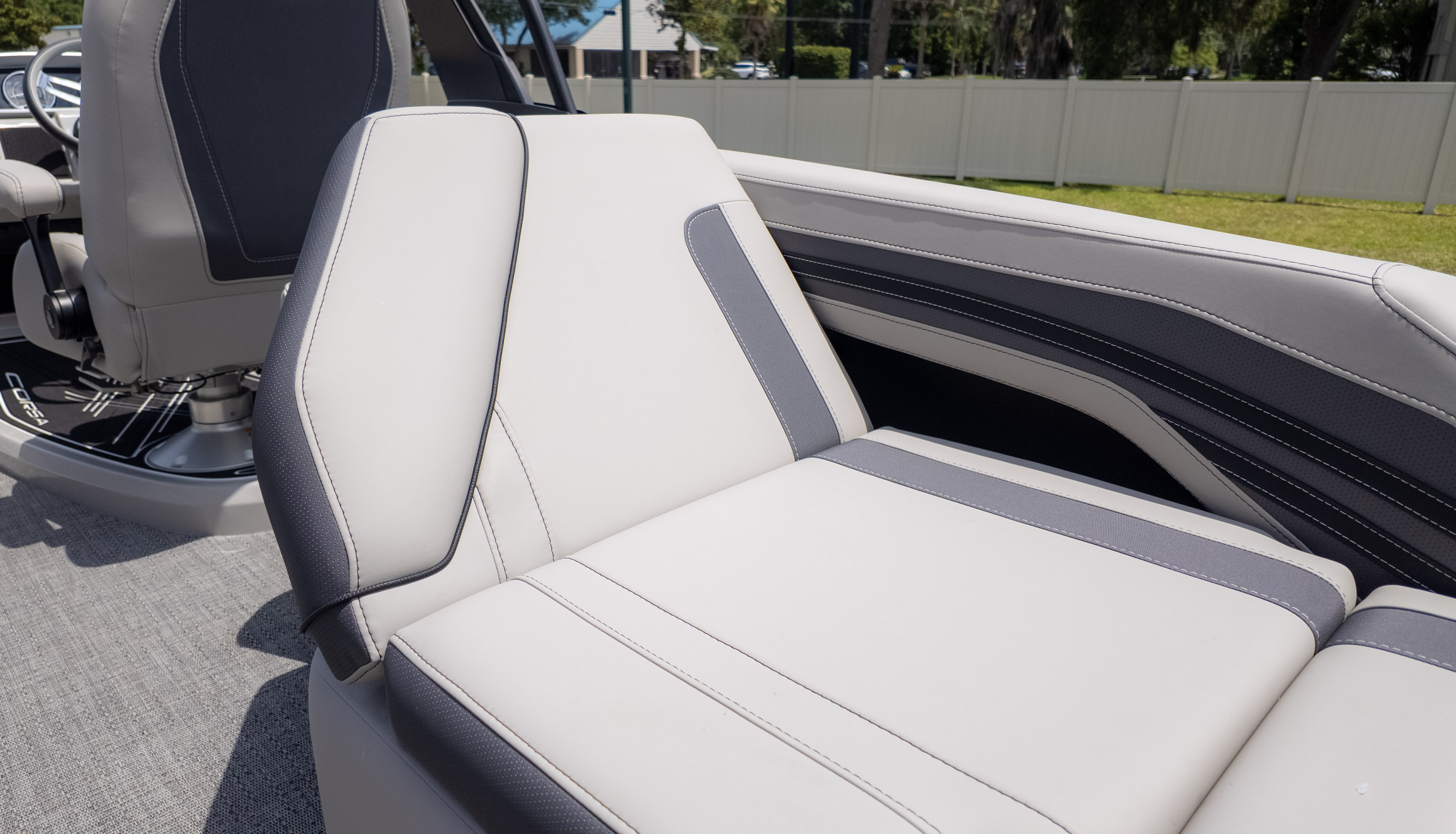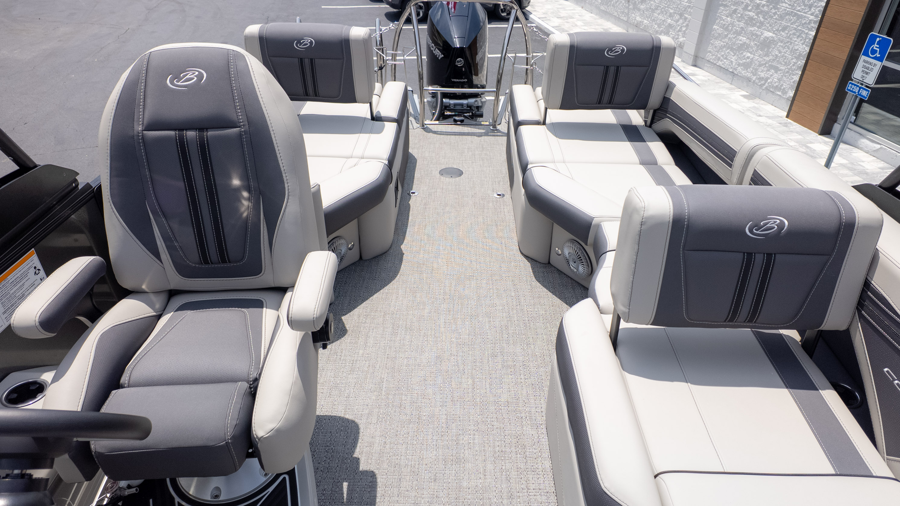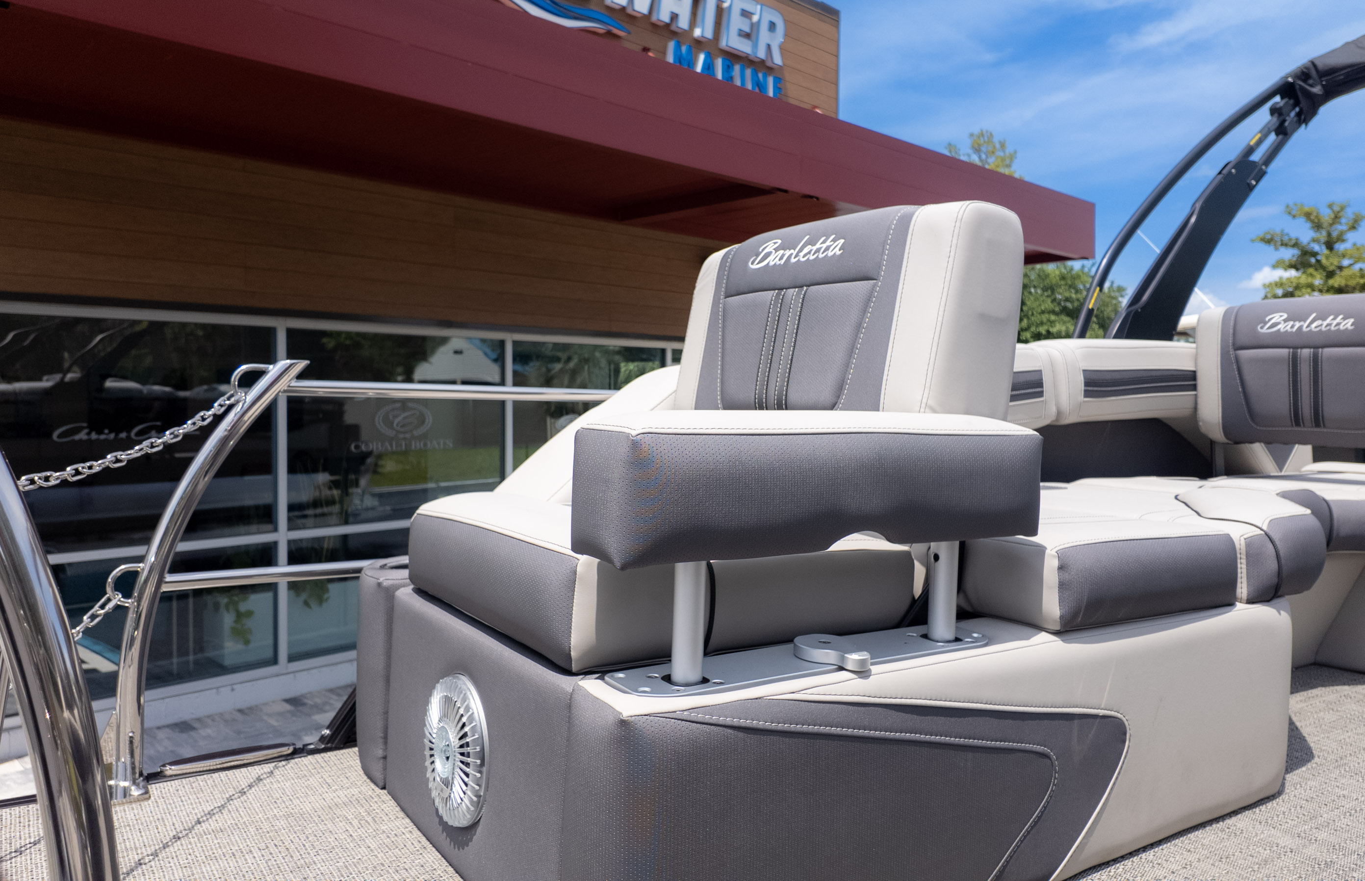 Imagine a perfect day on the water: the sun is shining, tunes are flowing from the enhanced JBL Marine Stereo with six speakers and zone control, and you've got icy beverages at the ready in the Yeti-Ready cupholders found throughout the boat. For the water sports enthusiasts, the tube-tow watersports cage is a dream come true, making it easy to hit the water for some exhilarating fun.