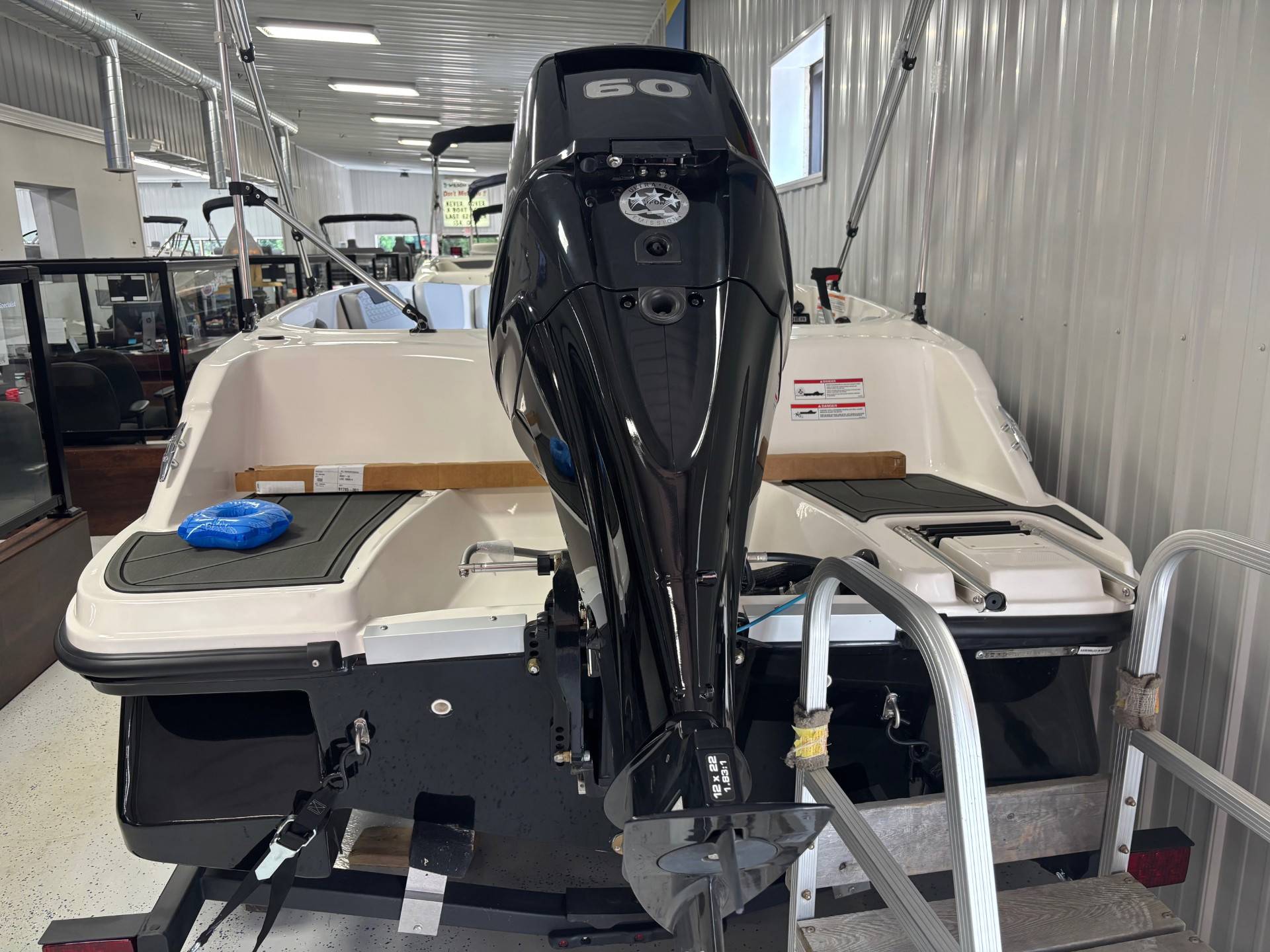 2025 Bayliner 150EL powered by a Mercury 60ELPT 4S EFI and includes trailer!Factory Installed Options:Exterior- solid black hullInterior- gray with black accentsMX packageSki tow pylonCockpit flooring- grey mat