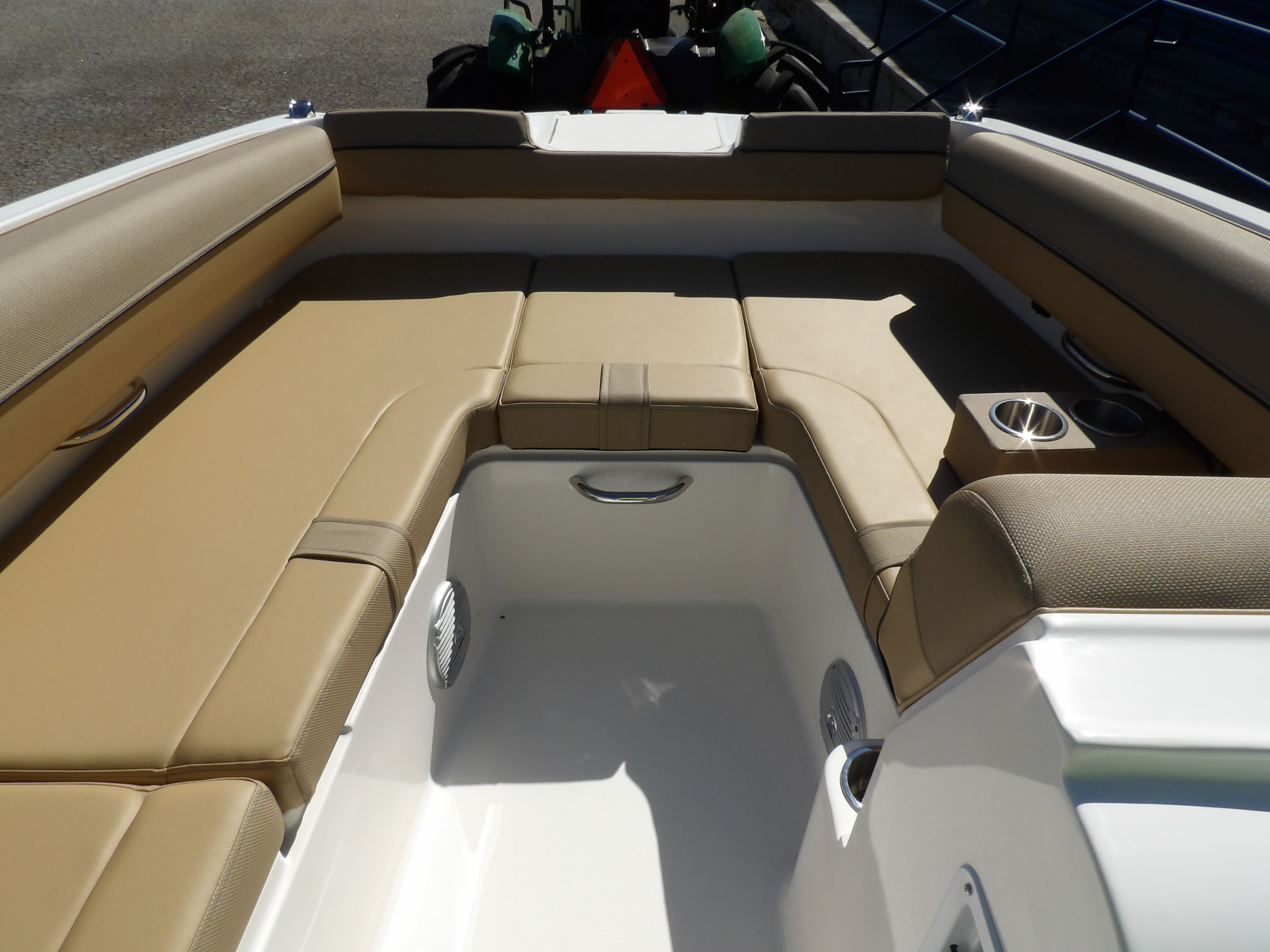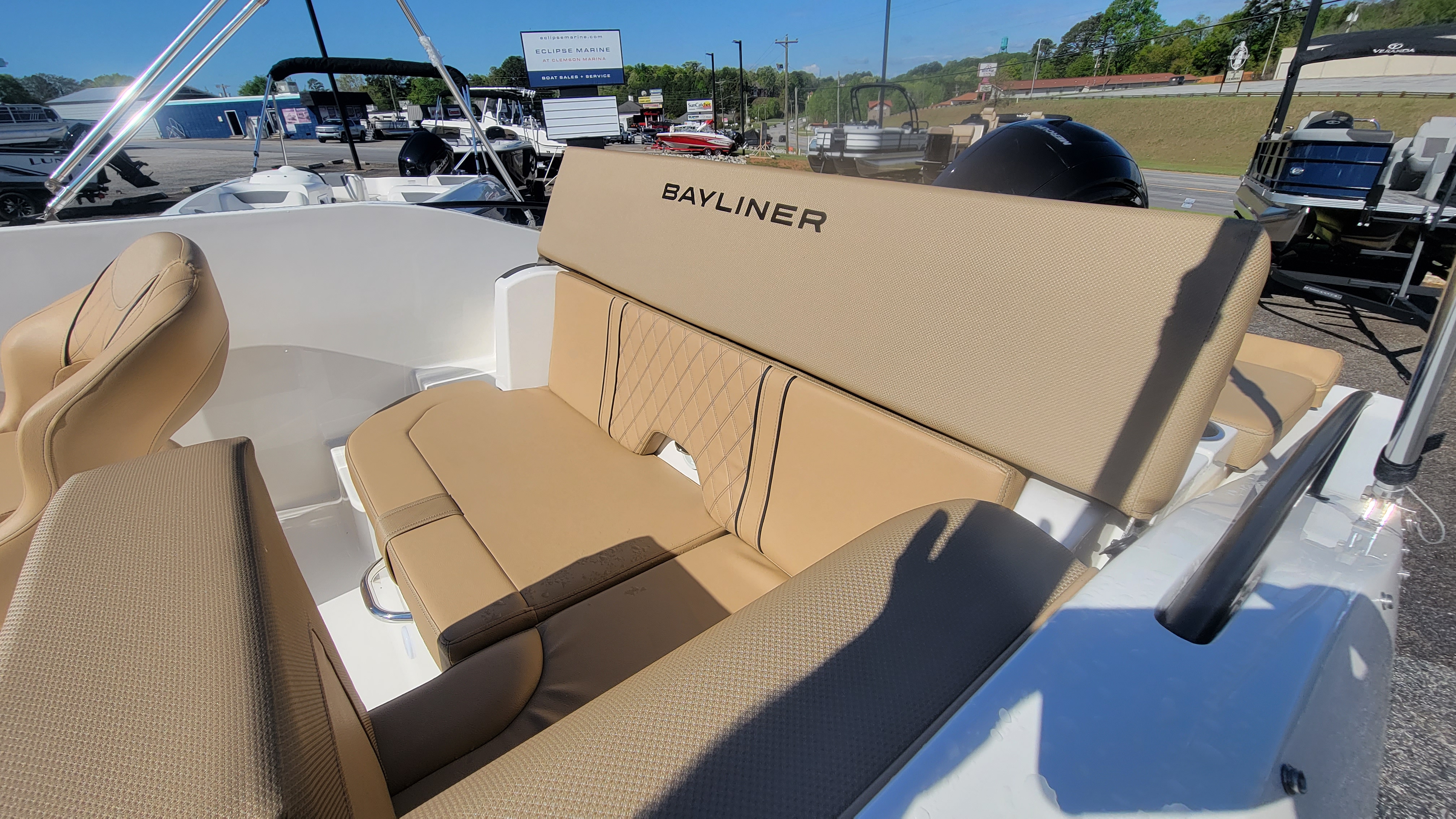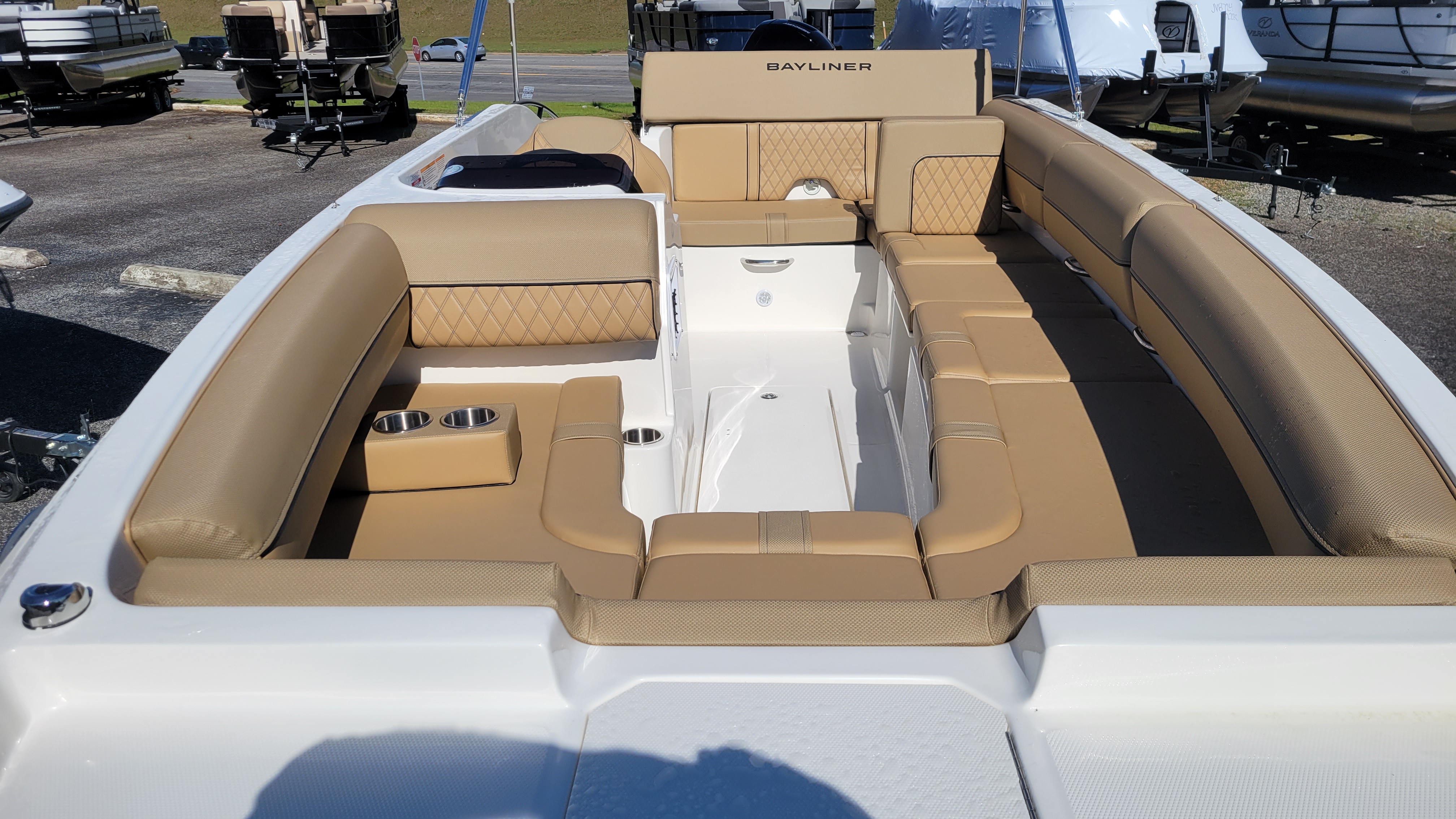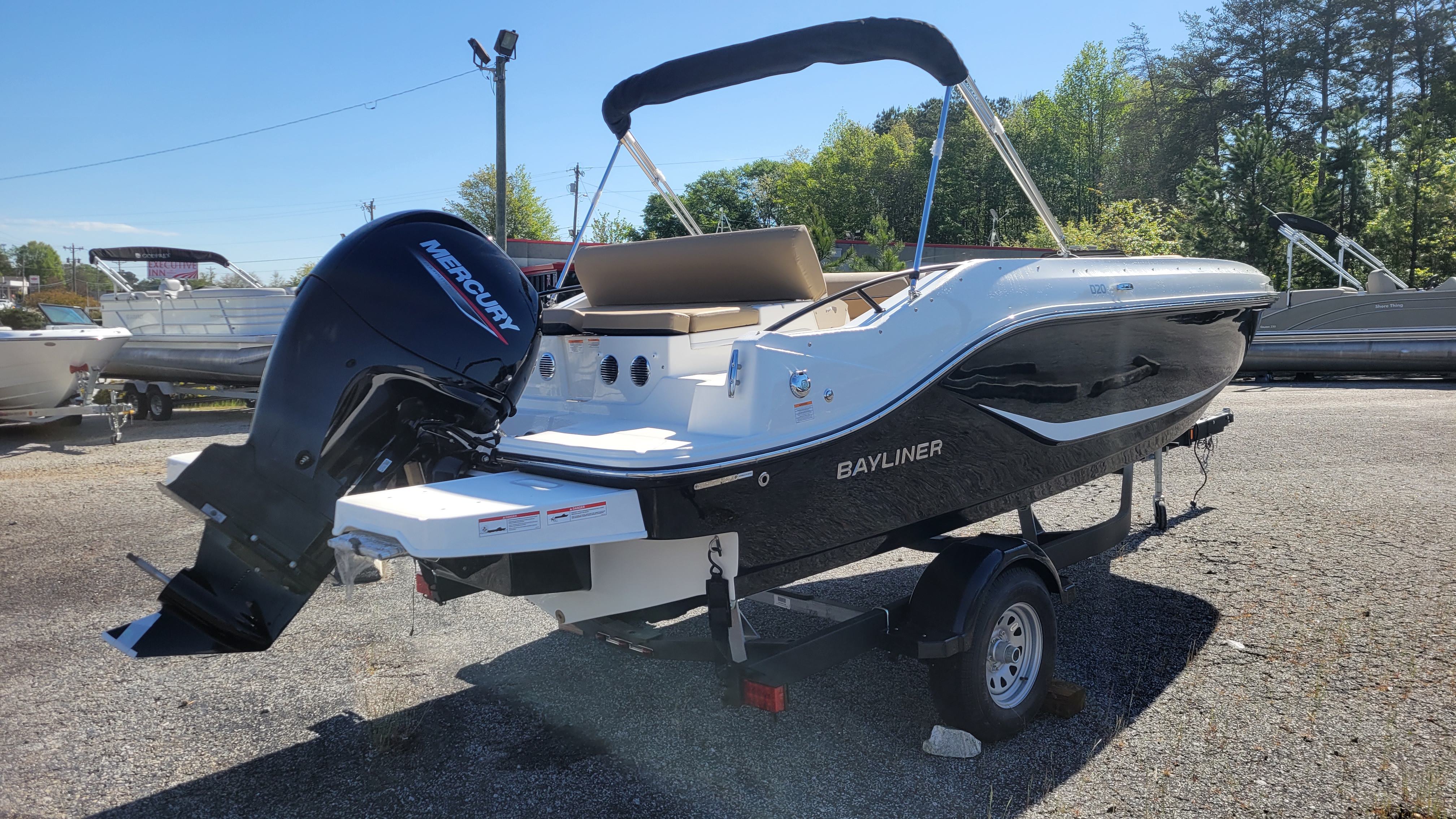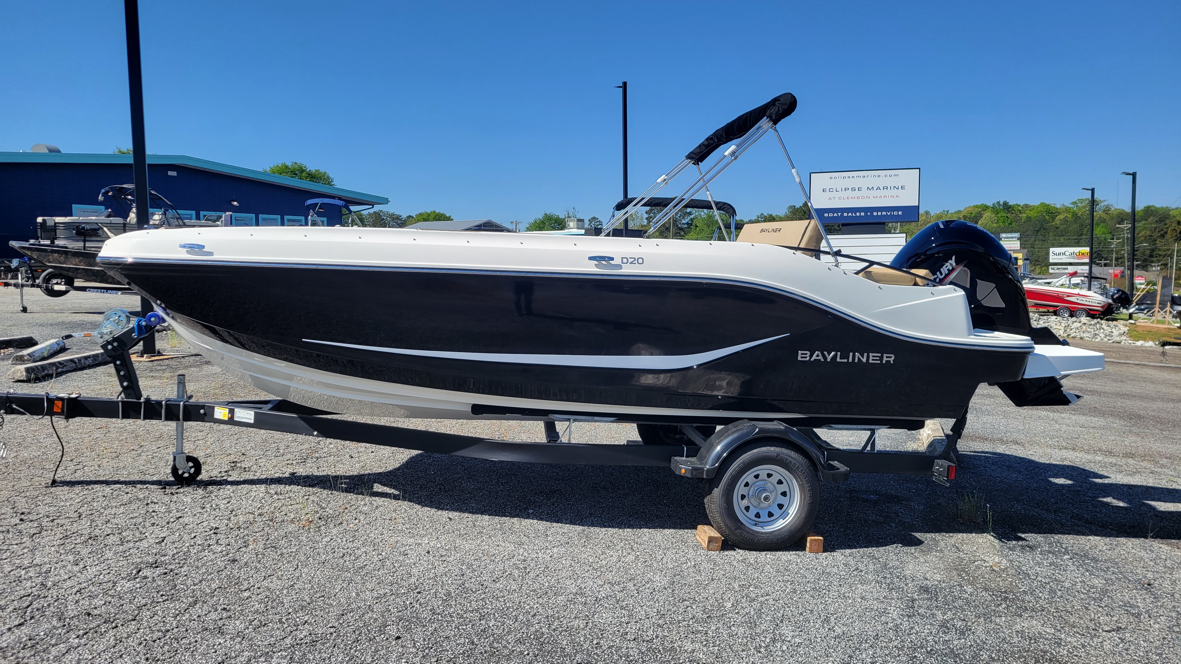 This new 2025 Bayliner D20 deck boat is a spacious option to get everyone out on the water. This new model comes with all the standard features of the D-series plus these added options: Power from a 150 HP Mercury Four Stroke outboard, Max Layout bundle including L shaped cockpit, Snap on cover & wireless charger, Bimini package with ski tow pylon, Stainless steel upgrade, battery switch & D series Coastline interior, Digital depth indicator, all sitting on a painted swing tongue trailer with brakes. For the latest in pricing and incentives give us a call at Sinclair Marina (478) 449-3300 or stop in and see us at 170 Sinclair Marina Rd Milledgeville, GA.