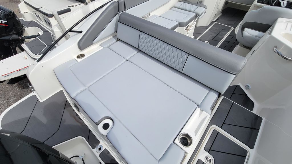 Introducing the D22, now ready to shine in the spotlight and impress the next generation of boaters. The outboard version combines the best features of the D series, featuring a sleek exterior with hull sculpting and stylish shear lines. Inside, you'll find all the comforts of home with plush upholstery, transitional cockpit and transom seating for the ultimate lounging experience.