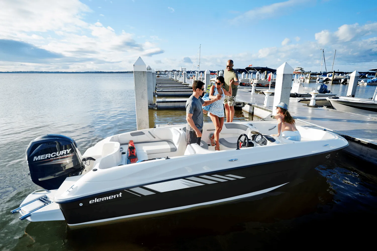 The Bayliner Element E18 is designed for those who value style and comfort. Its spacious layout provides ample seating for friends and family, allowing everyone to indulge in the joy of boating together. The sleek design, combined with ergonomic features and high-quality materials, sets this boat apart, making it a statement on the water.