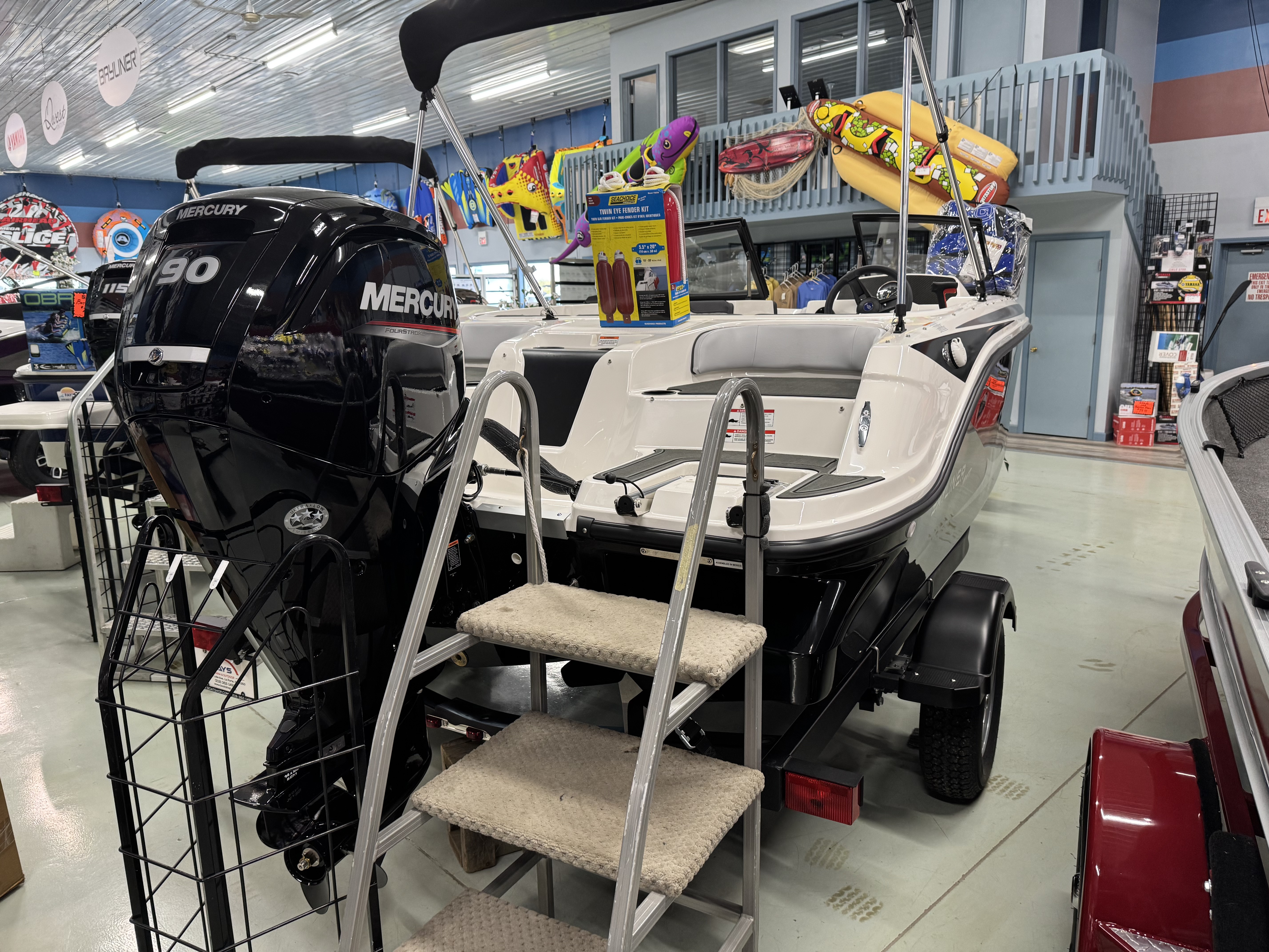 Discover the Bayliner Element M17 at Fay’s Marina in La Porte, IN. Powered by a Mercury 90HP 4-Stroke with MX Package, full windshield, mat cockpit flooring, and swing-tongue trailer. Stable M-Hull design, comfort upgrades