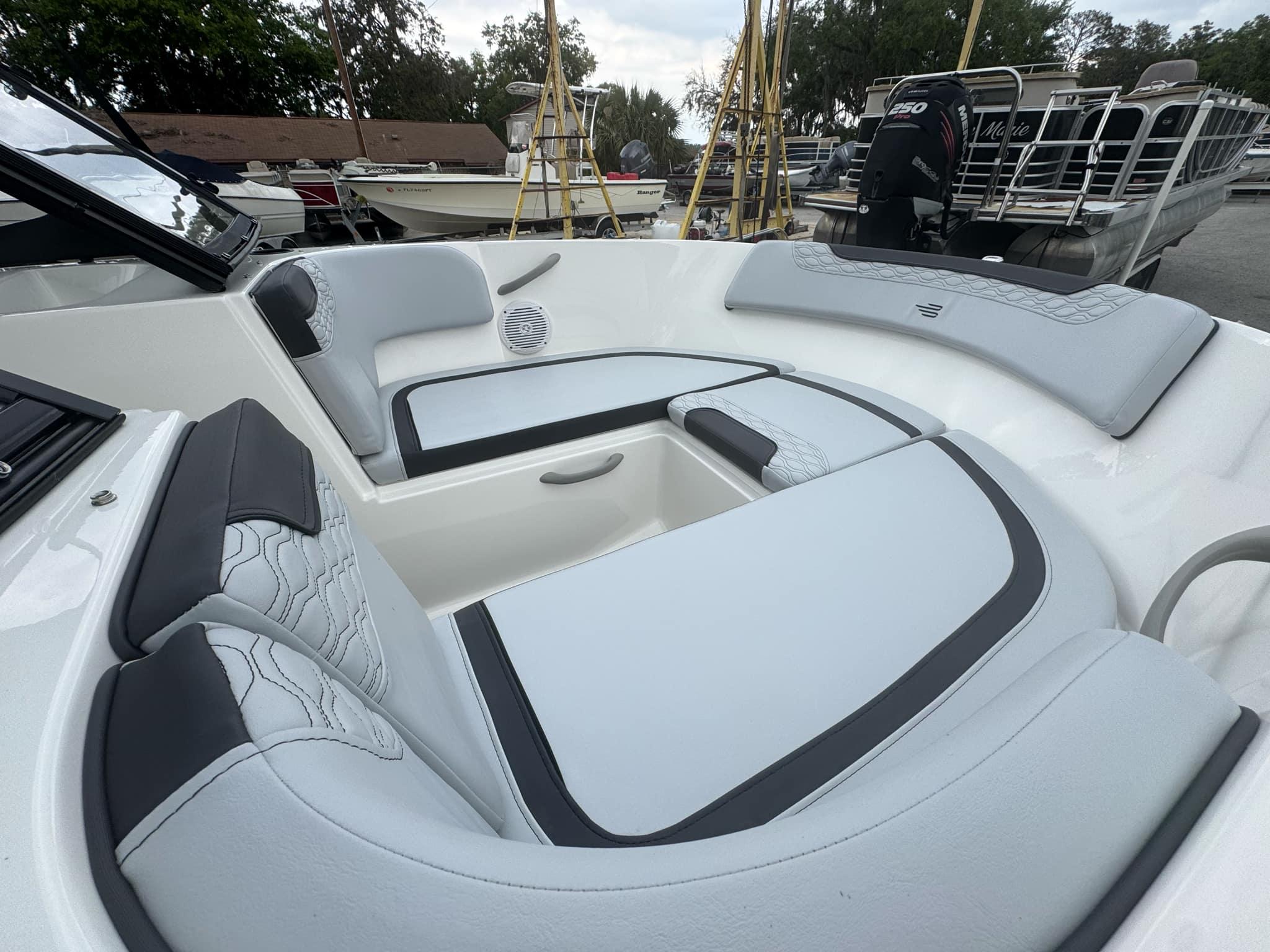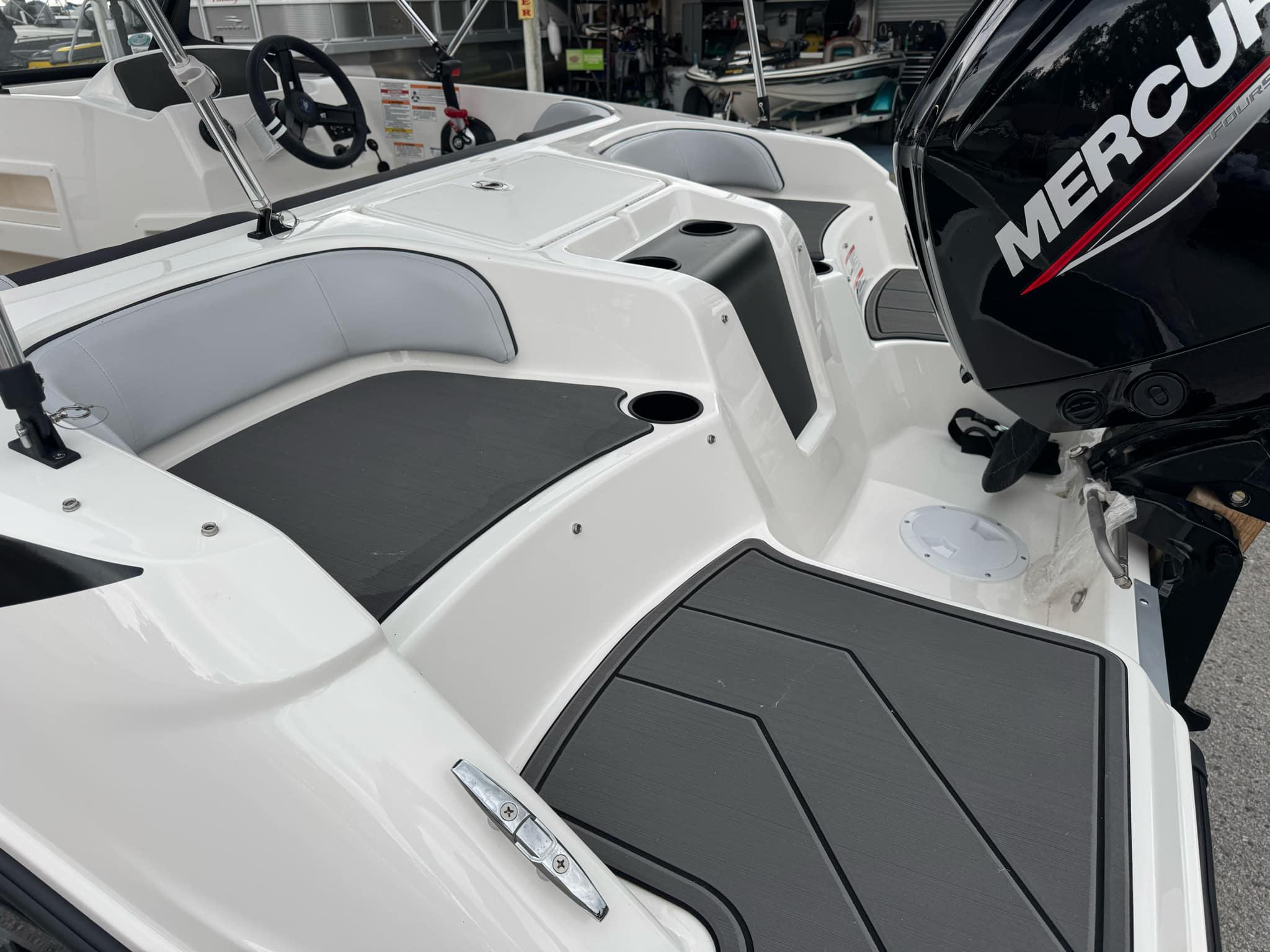 We designed the evolutionary Bayliner M17 to be the start of something new. It combines a stunningly affordable price familiar automotive-style handling, and class-leading stability and safety features. Plus, it has the power and comfort features to get you to the fun spots and enjoy every minute. Simple, intuitive controls at the helm Lightweight model for easy storage, trailering and handling Nook-style seating configuration of the cockpit, optimized for socializing M-Hull foundation offers better stability and predictable handling High attention to detail, fit and finish in premium stitched upholstery and fixtures Molded-in storage and cupholders Award-winning Mercury® engine performance and reliability Filler cushion turns bow into a sun lounger