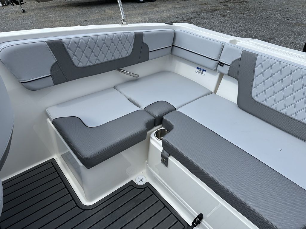 The VR4 OB is easy to trailer, easy to launch, and easy to store without compromising any of the fun. The smallest of our VR Series outboard models delivers plenty of interior space thanks to our BeamForward design, which carries the fullest width farther into the bow for more comfort and capacity than traditional pointed bows. Our AftAdvantage design increases the rear seating area by allowing the swim platform to extend beyond the aft-most point of the running surface, which means more room for comforts like movable backrests for versatile seating configurations available bow wind block and optional filler cushion that together create an additional bow seat optional sun pad cushion inserts that expand the sunbathing area and plenty of convenient storage throughout