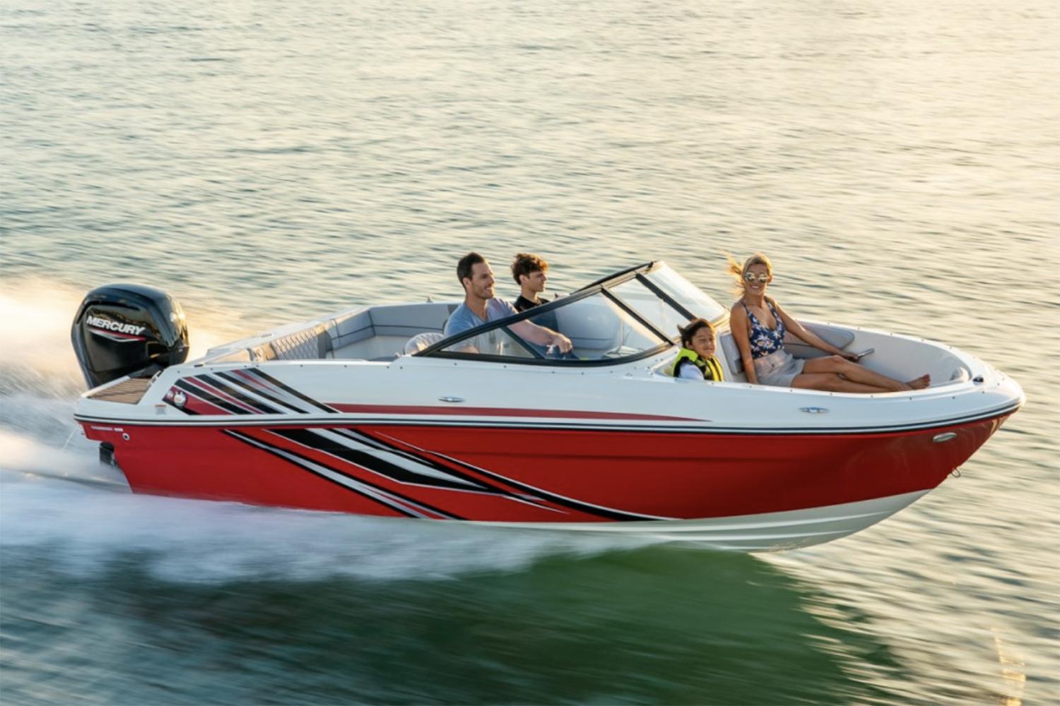 The VR4 OB is easy to trailer, easy to launch, and easy to store without compromising any of the fun. The smallest of our VR Series outboard models delivers plenty of interior space thanks to our BeamForward design, which carries the fullest width farther into the bow for more comfort and capacity than traditional pointed bows. Our AftAdvantage design increases the rear seating area by allowing the swim platform to extend beyond the aft-most point of the running surface, which means more room for comforts like movable backrests for versatile seating configurations available bow wind block and optional filler cushion that together create an additional bow seat optional sun pad cushion inserts that expand the sunbathing area and plenty of convenient storage throughout BeamForward" design with high gunnels creates more passenger space, under-seat storage and safety Roomy cockpit thanks to our exclusive AftAdvantage" design Spacious bow seating converts to inviting lounge with addition of optional bow filler cushion Extra passenger seat created in bow by adding an optional bow wind block (requires bow filler cushion) Contoured backrests for comfortable lounging on the swim platform Optional sun pad inserts increase surface area for sunbathing comfort Standard sport style windshield or optional windshield with opening center panel and side wings Available water sports or fishing options to suit your family's needs