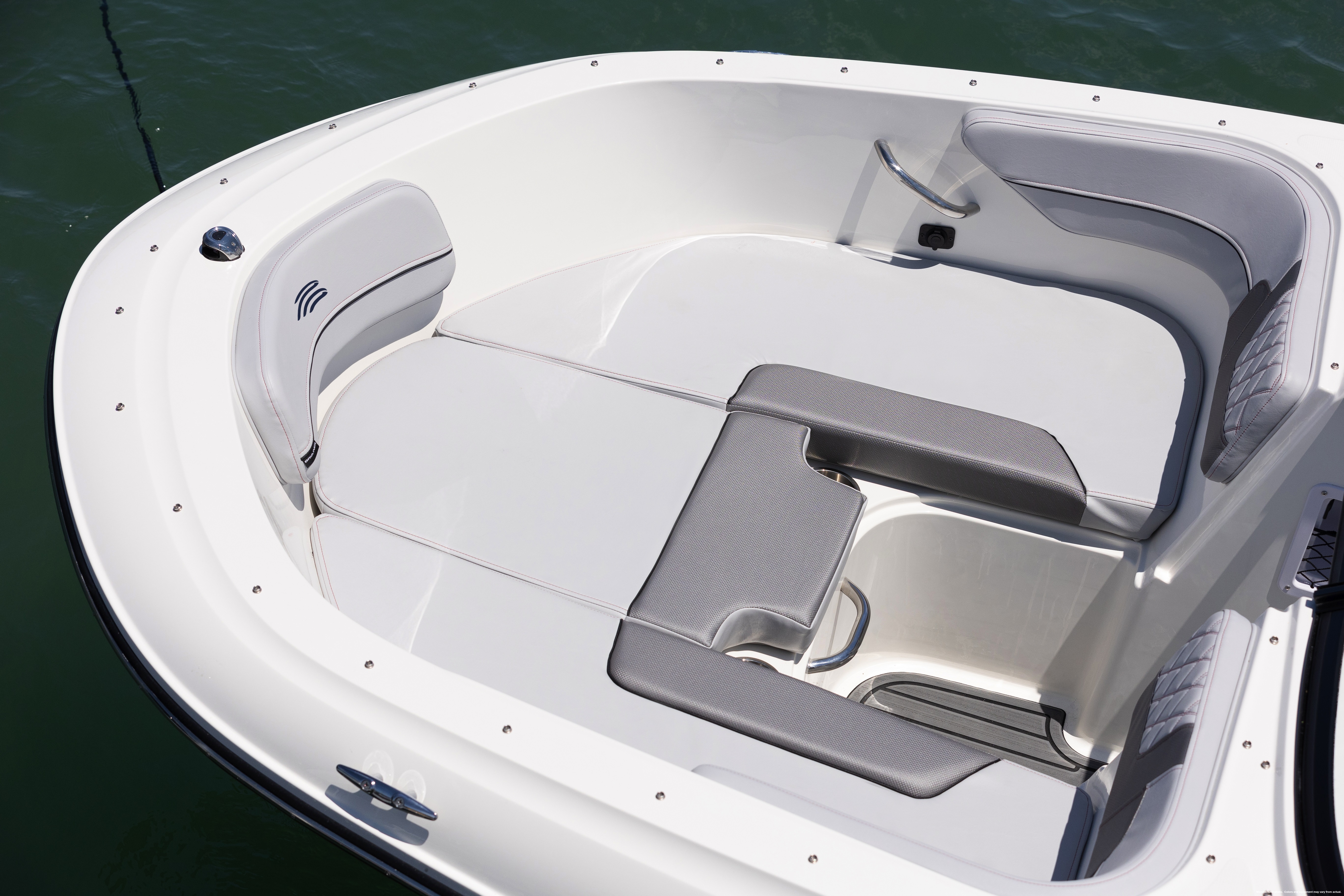 The latest in our VR Series of highly evolved bowriders the VR4 is easy to tow launch and store and really fun to use. The smallest VR Series model delivers plenty of interior space thanks to our BeamForward design which carries the full beam further forward for more comfort and capacity than traditional pointed bows. Our AftAdvantage design increases the rear seating area by shifting it to the aft-most point of the running surface allowing the swim platform to extend beyond that. That means more room for comforts like movable backrests for versatile seating configurations available bow wind block and optional filler cushion that together create an additional bow seat optional sun pad cushion inserts that expand the sunbathing area and plenty of convenient storage throughout.