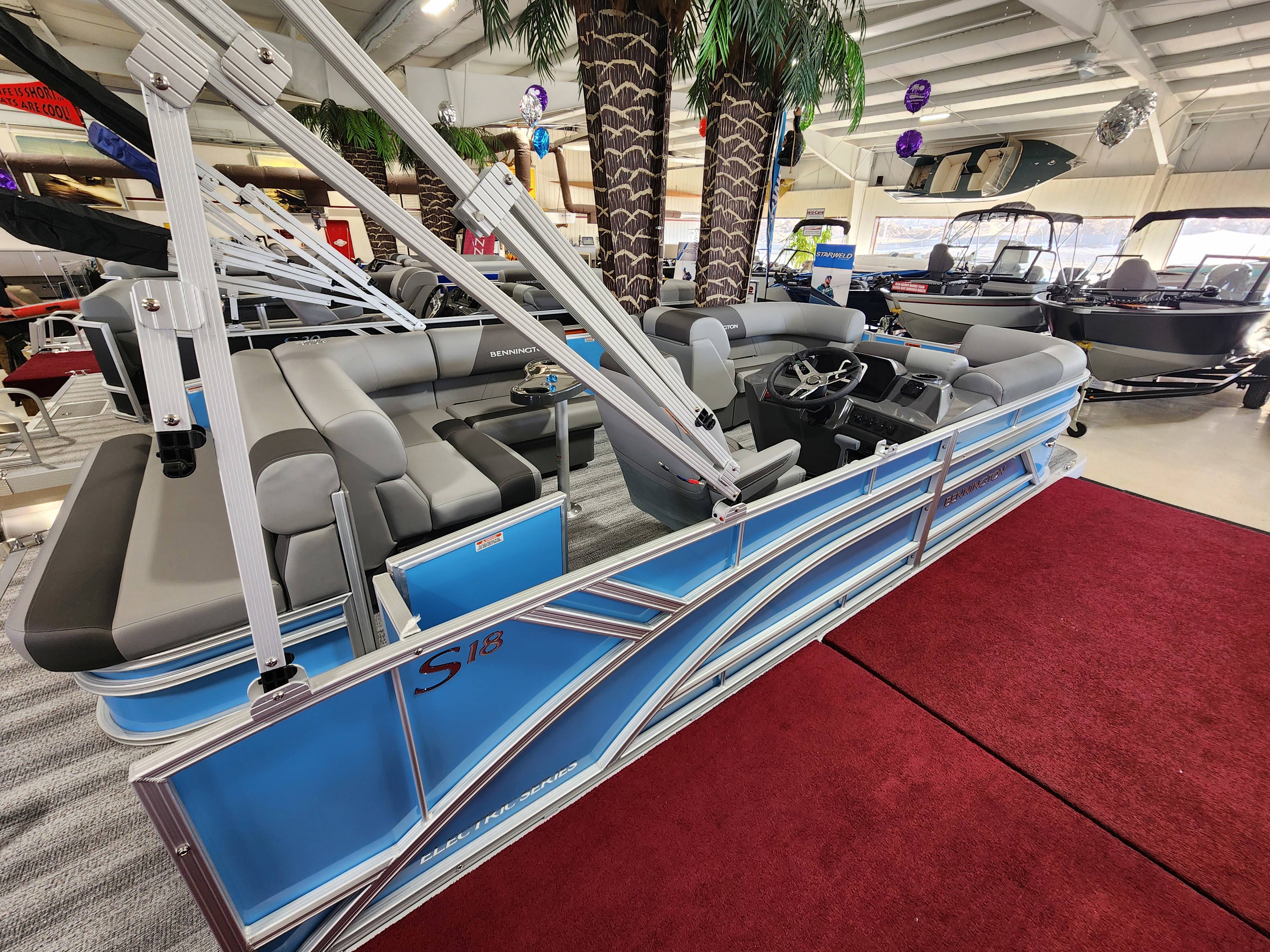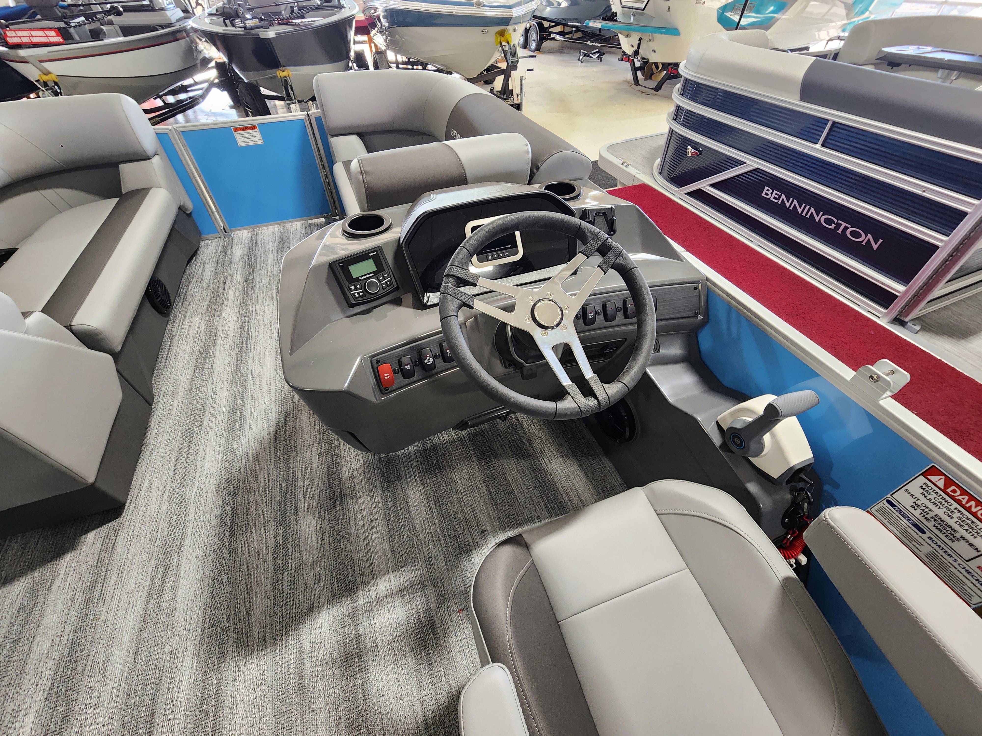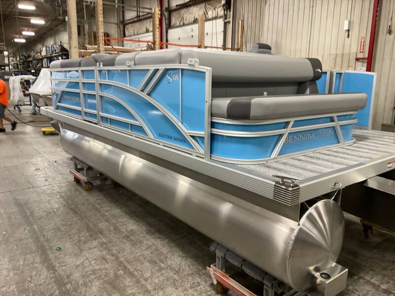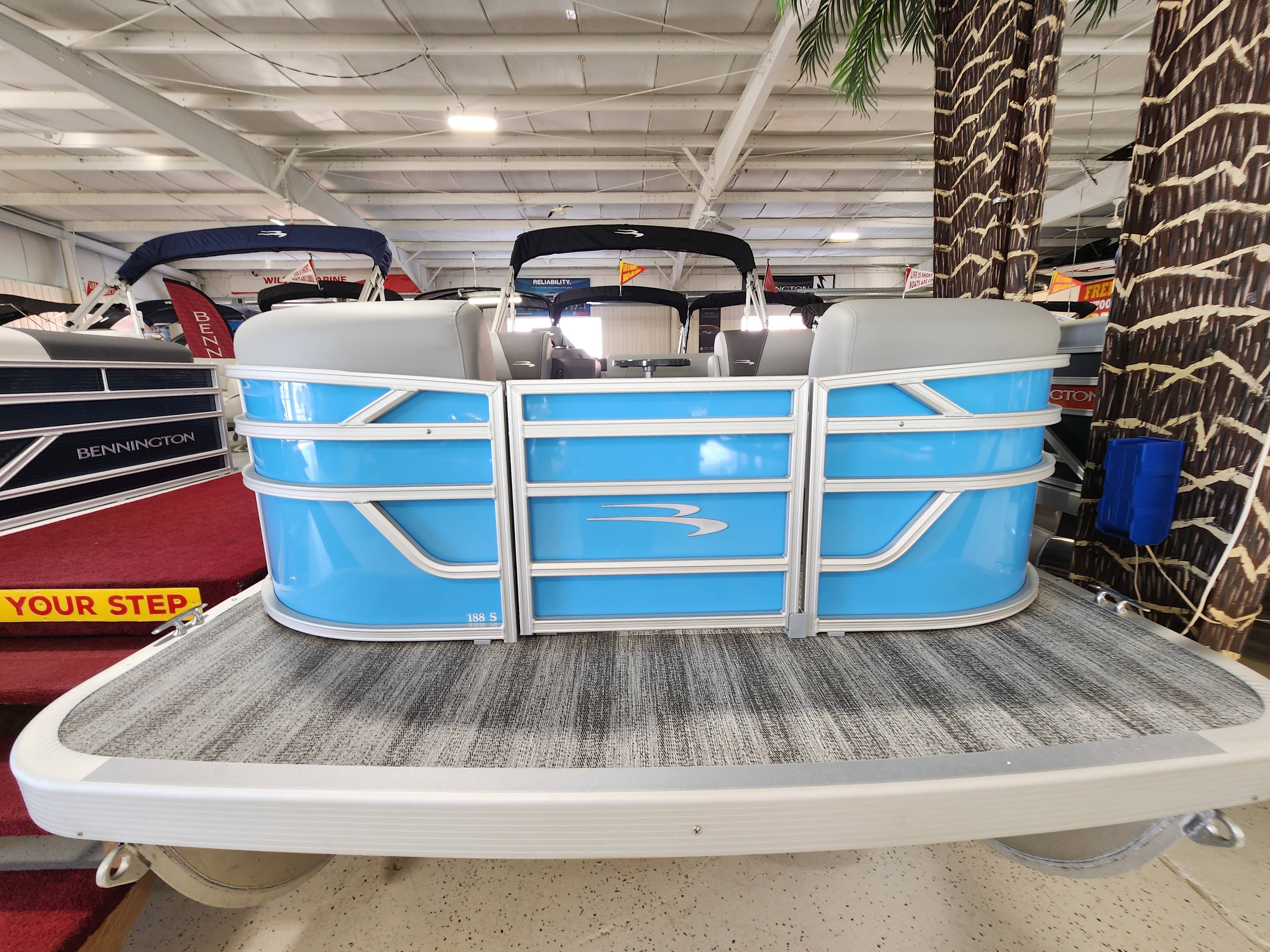2025 Bennington 188 SLJ powered by an electric Mercury 75ELRC 7.5 Avator!Factory Installed Options:Exterior- smoother azure blueInterior- shadow grey with shadow grey & carbon accentsBlack canvasIronwood trim accentShoreline grey flooringWindshieldWireless chargerAvator batteryTilt steering