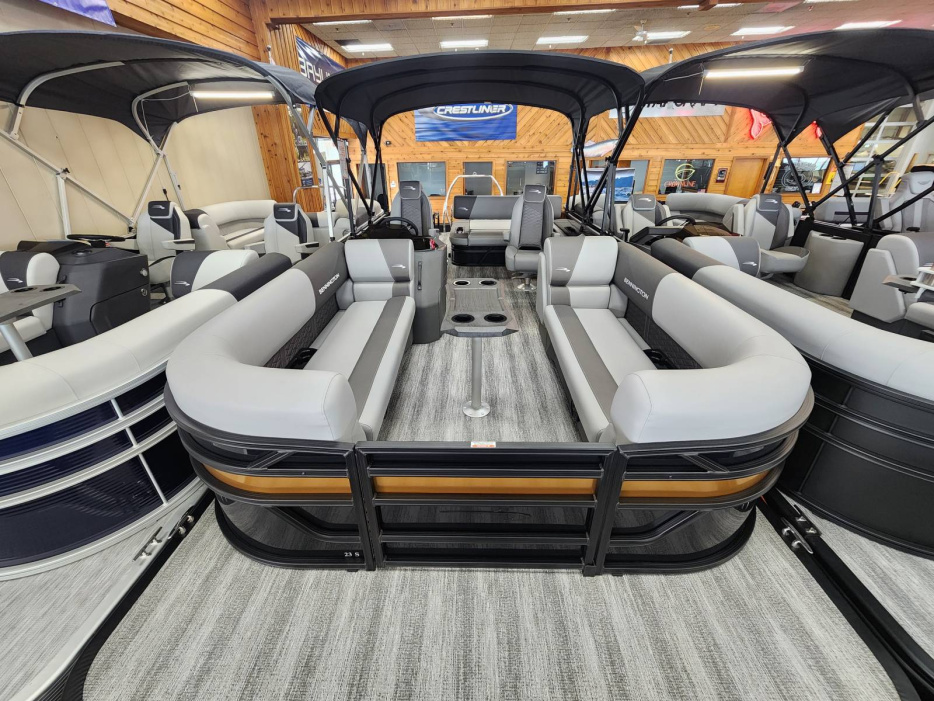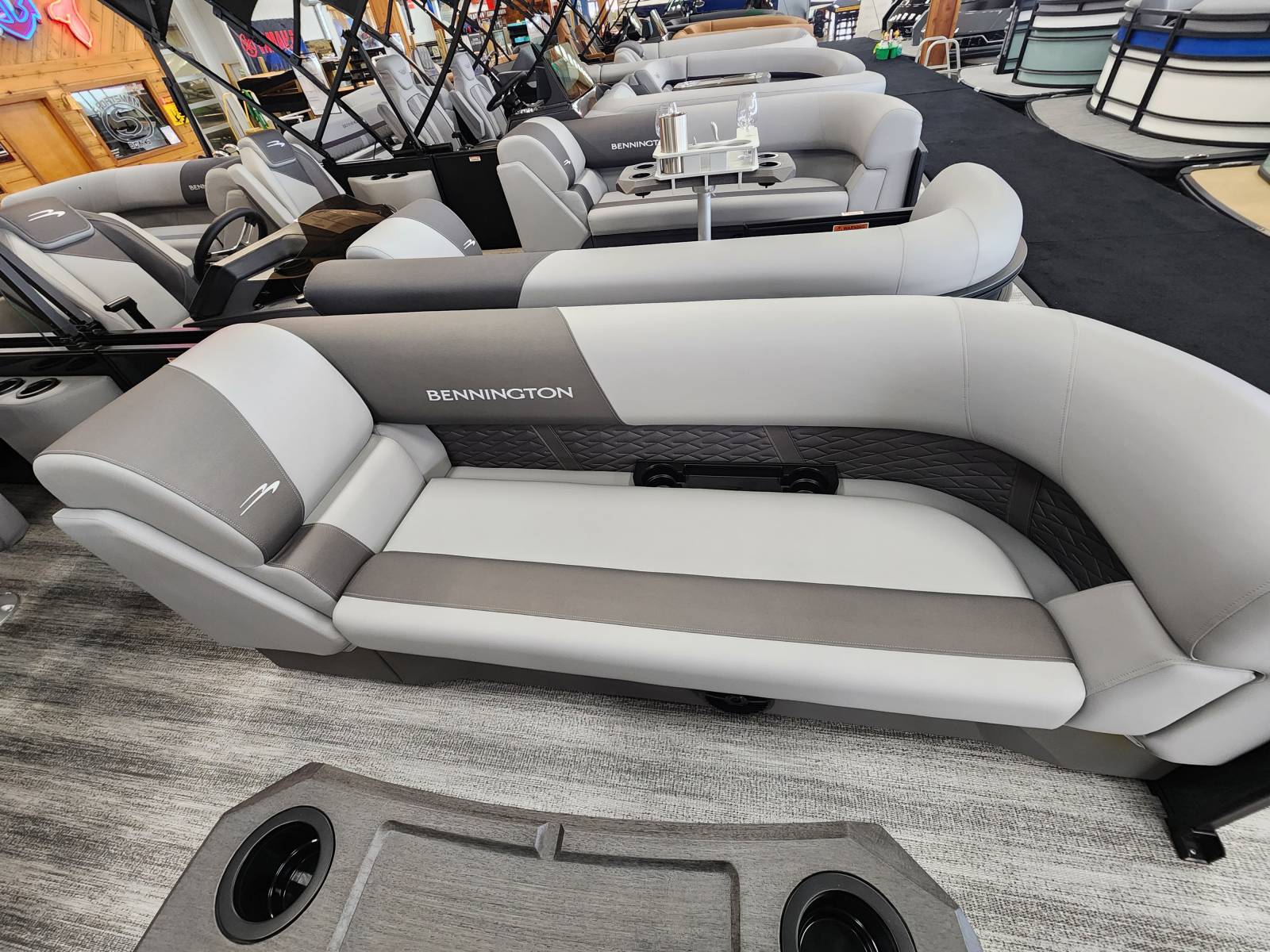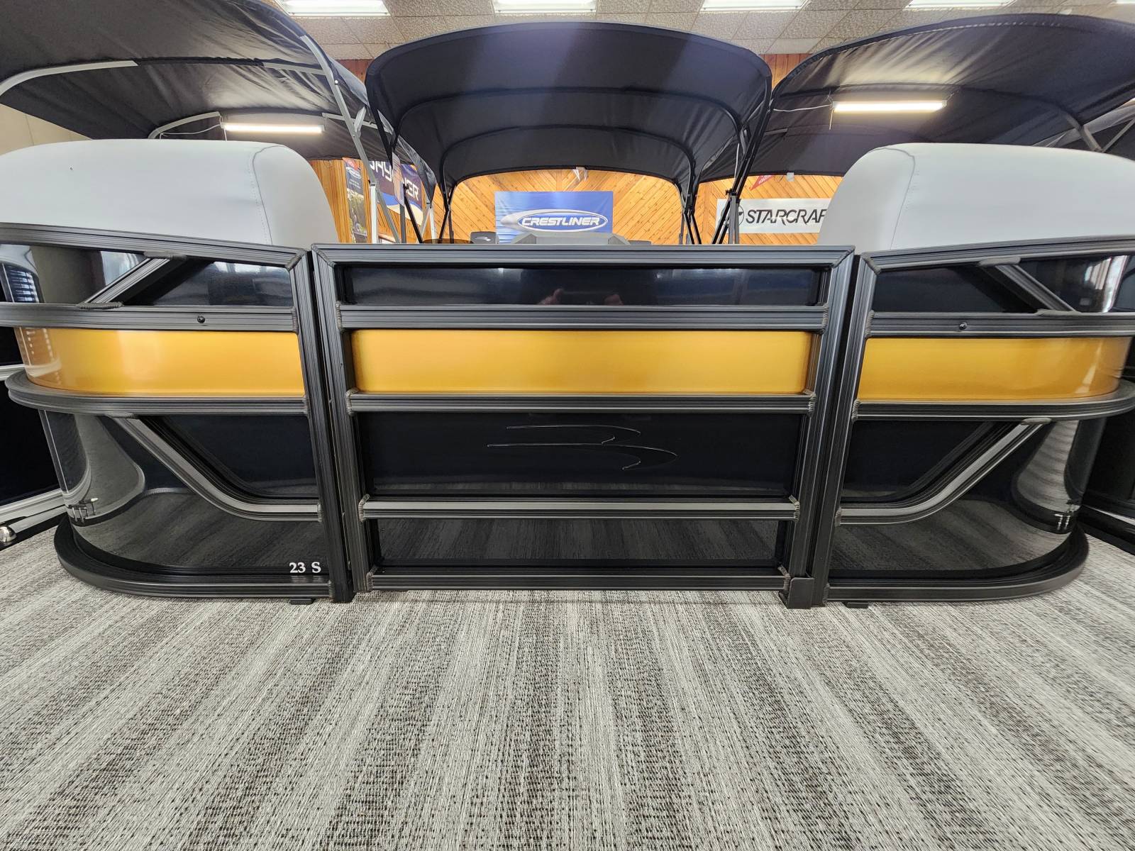 2025 Bennington 23 SSB powered by a Yamaha F150XC!Factory Installed Options:Exterior- Gemini black smooth with smooth olaedo gold accentsInterior- S Series furniture upgrade in shadow grey with shadow grey & carbon accentsBlack canvasBlackout luxeIronwood trim accentShoreline grey flooringBimini 8.5X10Swingback rail keeperHigh back helm seatsBlack rub rail insertHeavy duty rub railExtended aft deckSPS 23' transom direct fill 33 galSki towWireless chargerWindshield