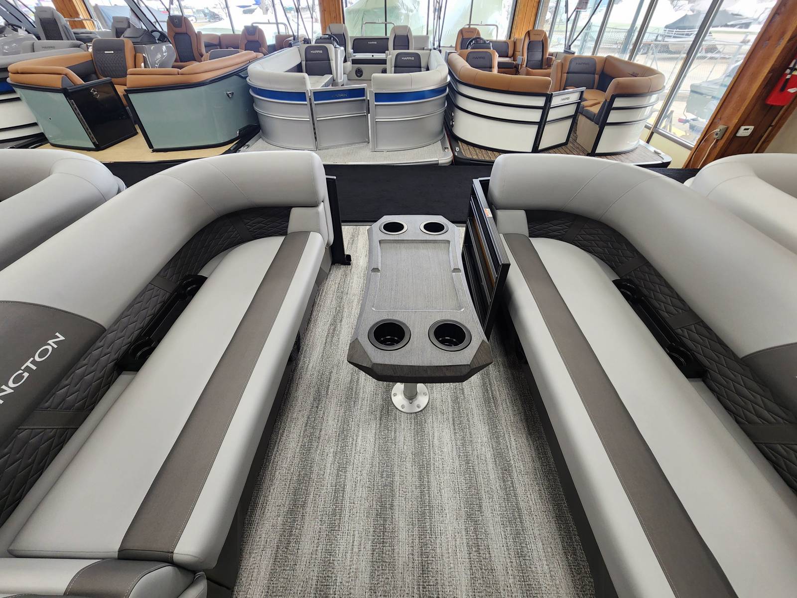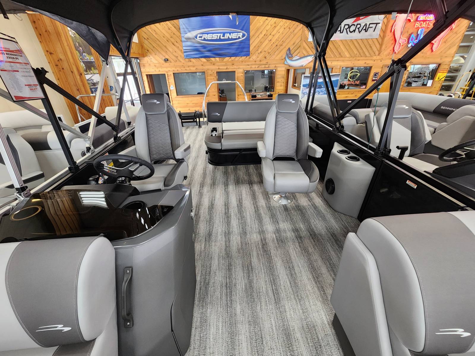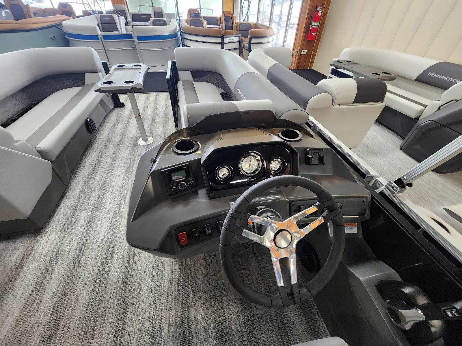 2025 Bennington 23 SSB powered by a Yamaha F150XC!Factory Installed Options:Exterior- Gemini black smooth with smooth olaedo gold accentsInterior- S Series furniture upgrade in shadow grey with shadow grey & carbon accentsBlack canvasBlackout luxeIronwood trim accentShoreline grey flooringBimini 8.5X10Swingback rail keeperHigh back helm seatsBlack rub rail insertHeavy duty rub railExtended aft deckSPS 23' transom direct fill 33 galSki towWireless chargerWindshield