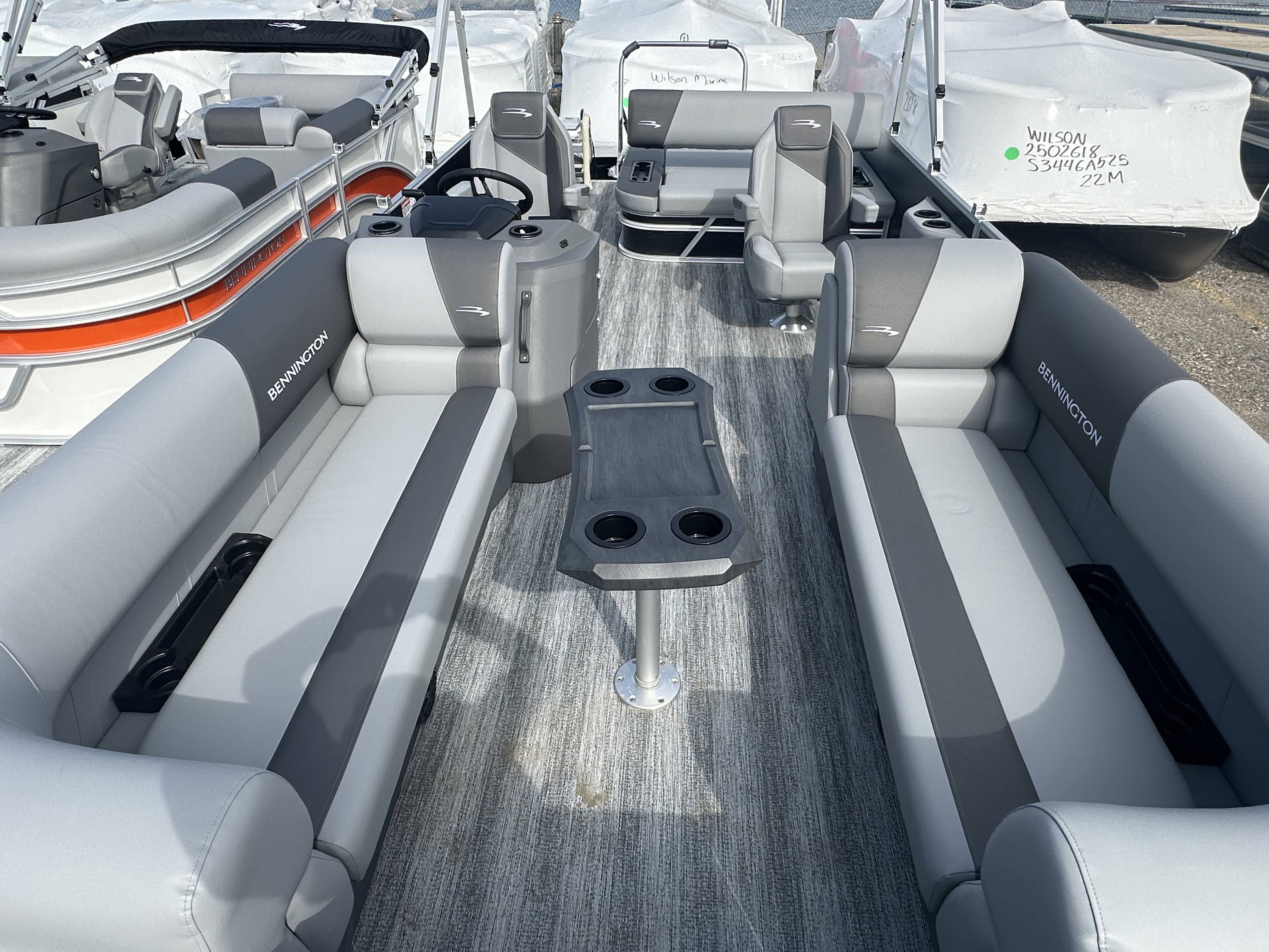 2025 Bennington 23 SSBYamaha 70Factory options include:Satin Black ExteriorShadow Grey w/Carbon AccentsBlack CanvasDimensional Brushed LogosShoreline Grey FlooringWindshieldBase FurnitureRetractable Keeper RailCo-Captains Helm ChairsLillipad LadderTilt Steering WheelAnalog SwitchingMain Analog GaugesSki Tow BarCall 800-875-2620 for additional information or to schedule an appointment to view the boat today!