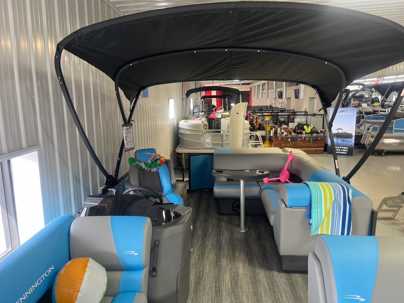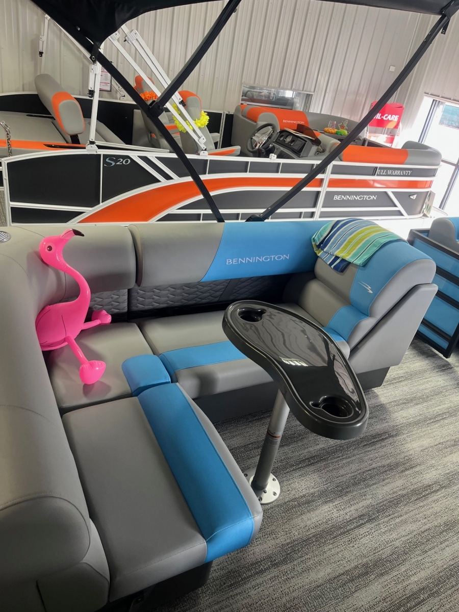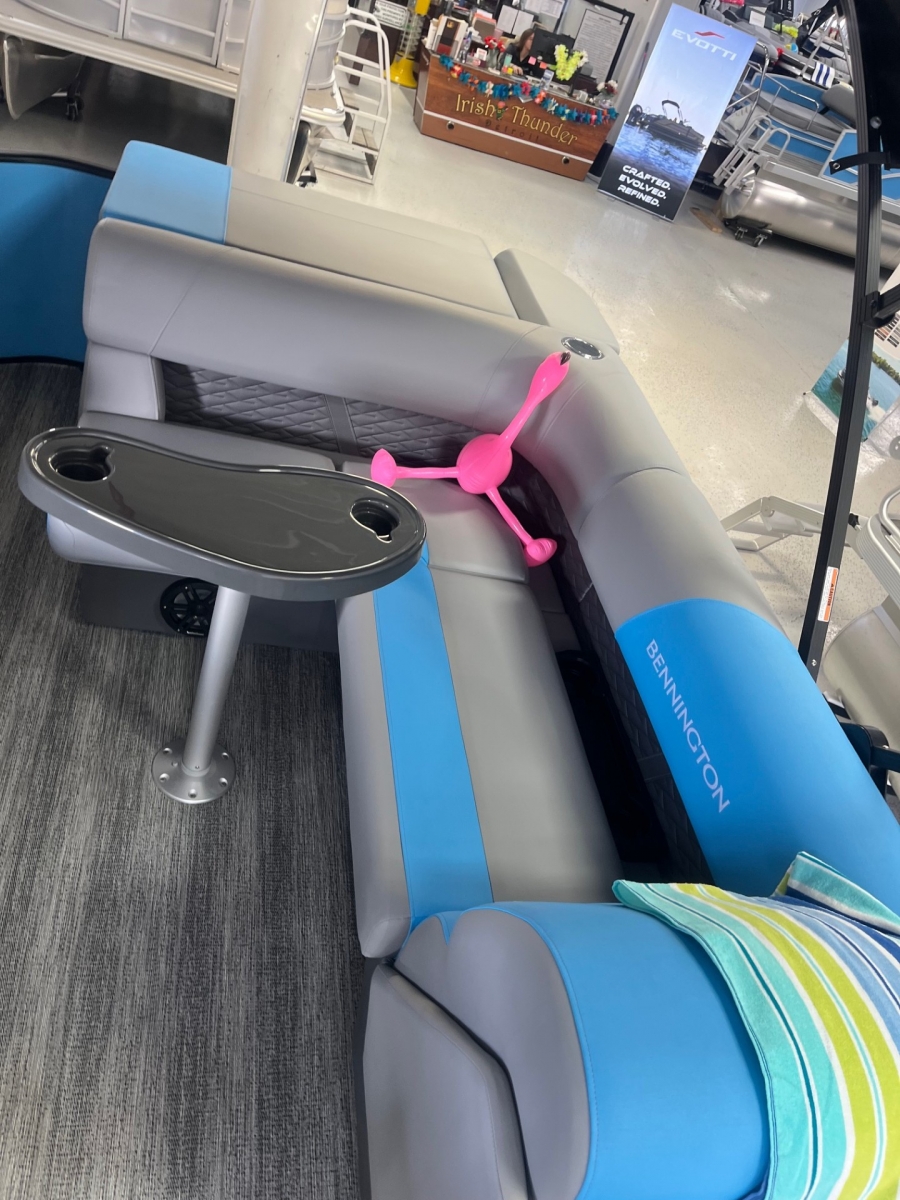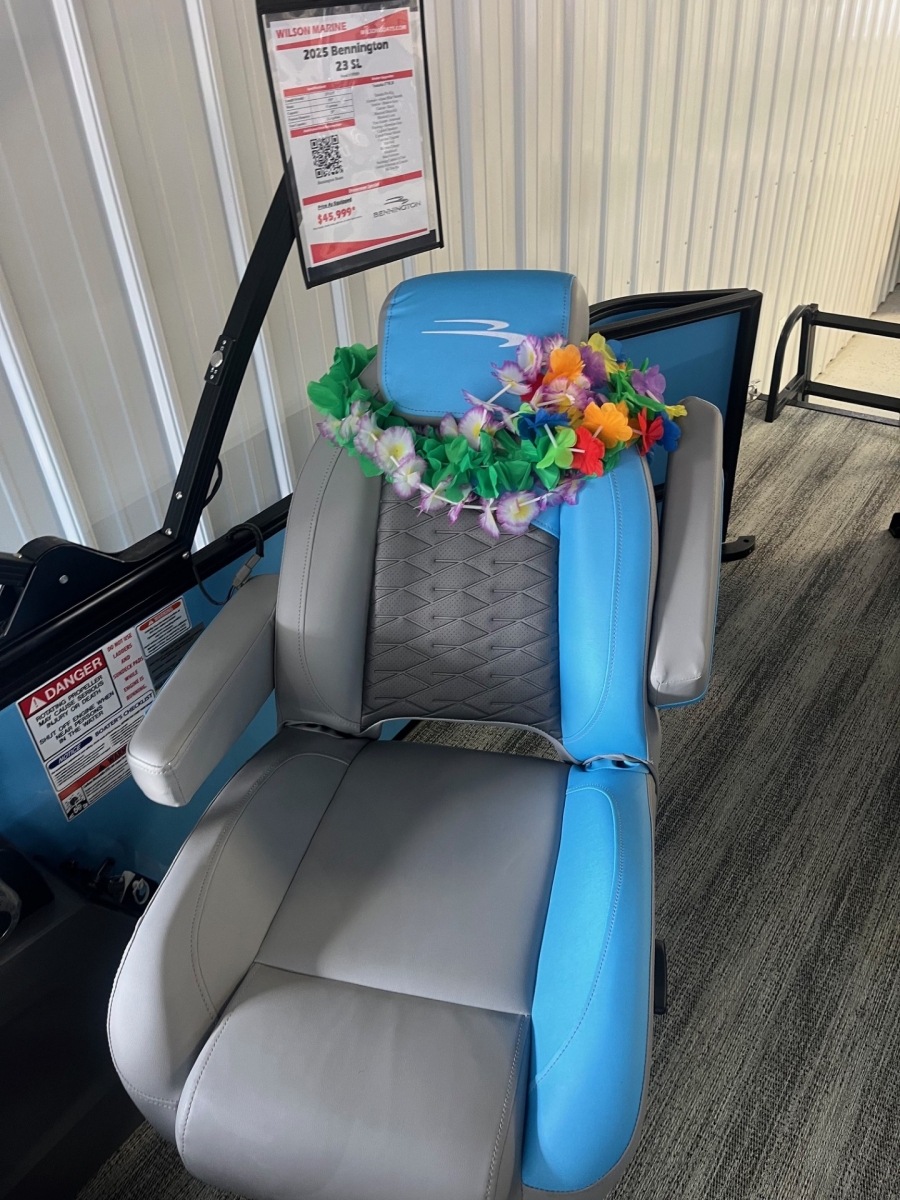 2025 Bennington 23SL powered by a Yamaha engine!Yamaha F70Factory Installed Options:Exterior- smooth azure blueInterior- shadow grey with shadow grey & azure blue accentsBlack canvasBlackout luxeIronwood trim accentShoreline grey flooringRGB lighted speakersCurved biminiS series furniture upgradeRecliner for helmBlack rub rail insert23' heavy duty rub railSki towWireless chargerWindshield