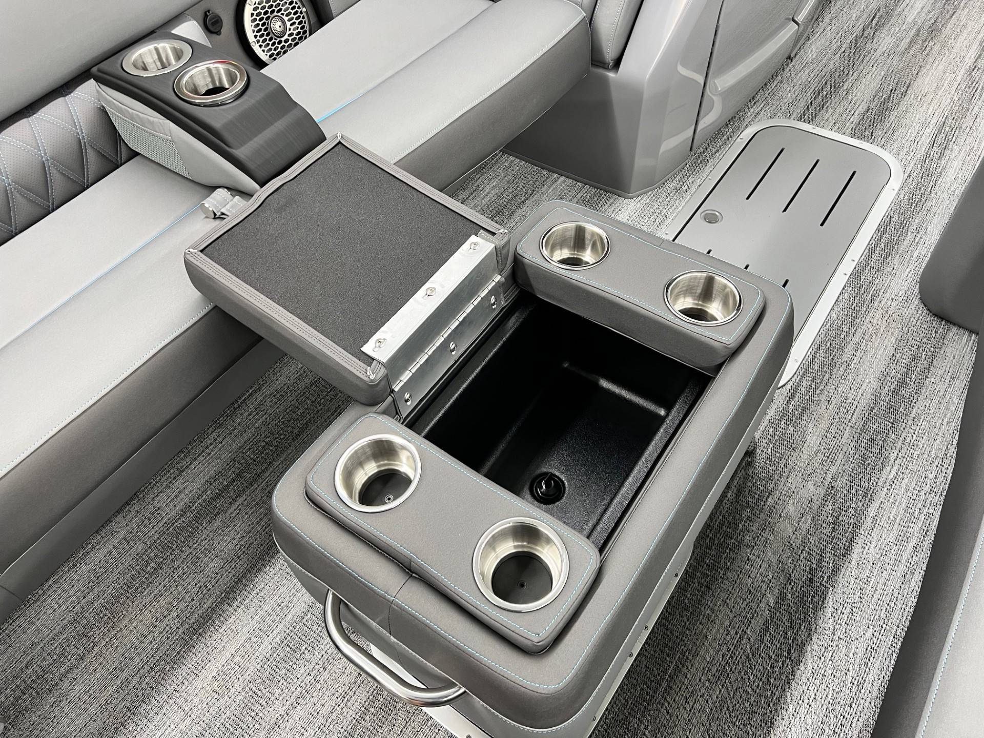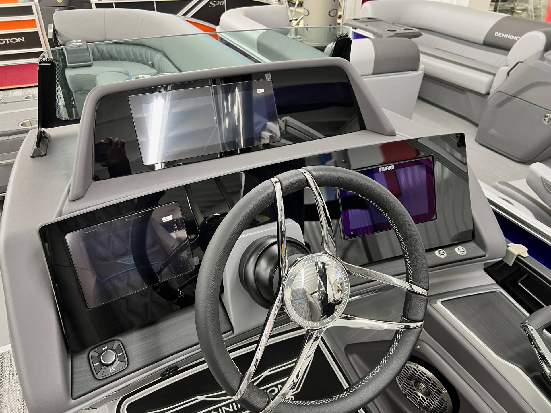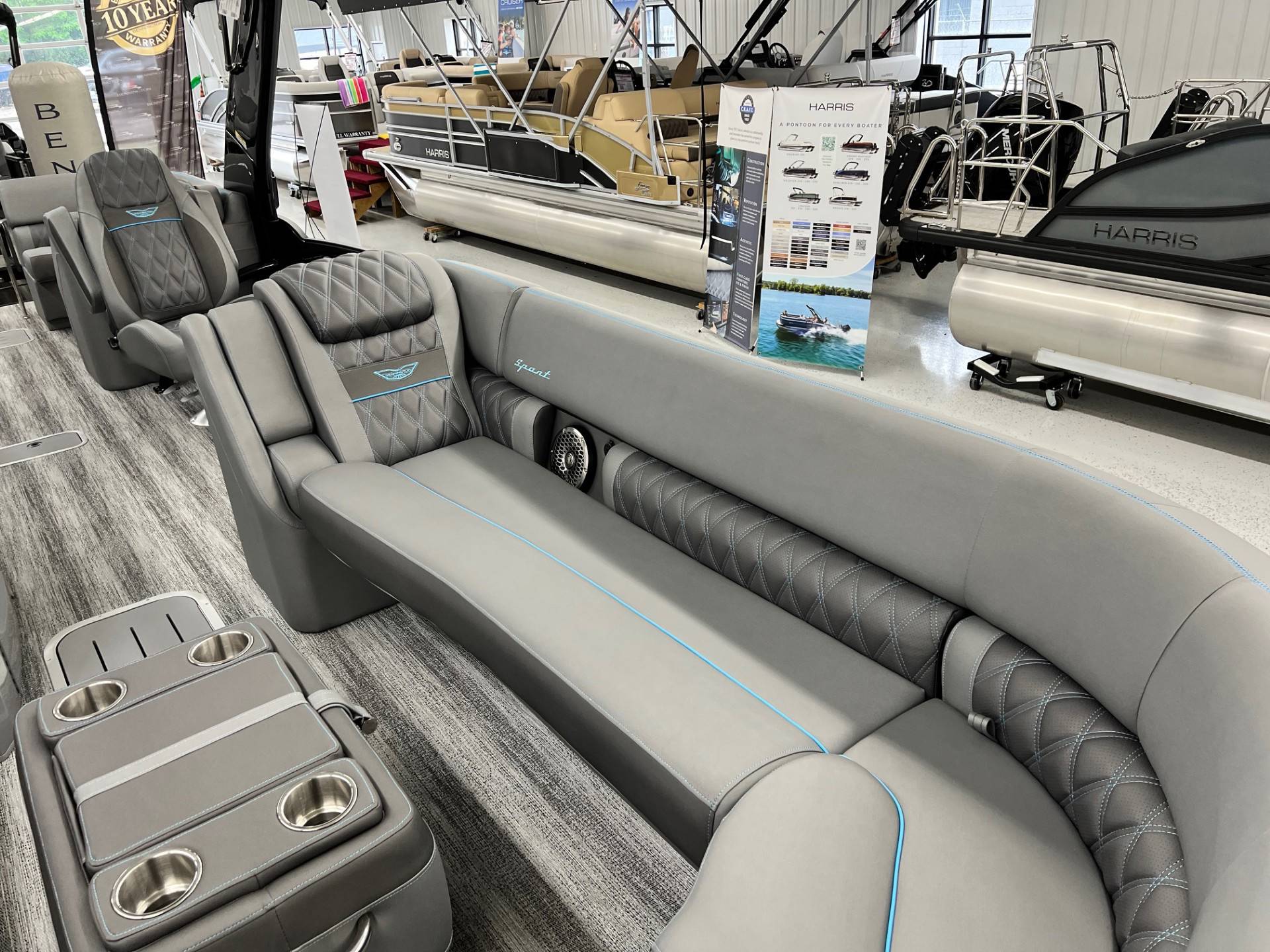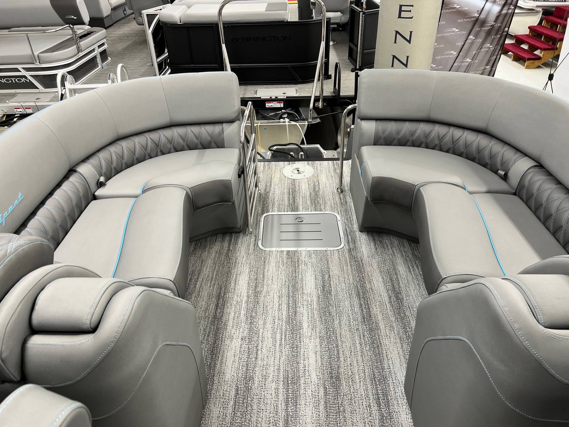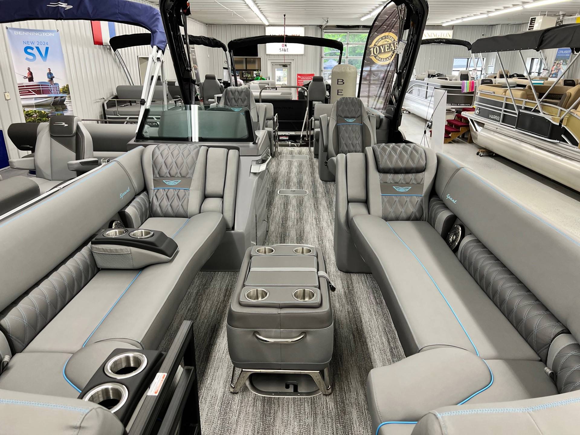 2025 Bennington 25 RFBA powered by a Mercury V350XL 6.4!Factory Installed Options:Exterior- smooth gemini black with smooth bottom azure blue accentsInterior- graphite pillowtop sport with perforated carbon accentsBlack canvasBlackout luxeCladded power archMatte slate zebrawood trim accentsShoreline grey flooringUpgrade M2 speakerBlack corvina steering wheelConsole exchangeToe kick lightingLighted cupholdersExterior side lightingUnderwater lightsDeluxe ottoman coolerAzure blue embroidery packageStainless steel rub railBow & aft pop up cleatsElliptical sport performance package 25ftFuel 73galDual battery switchCenter & anchor storagePower distribution centerSimrad 9 Vivid 12 carbonFender post with clipAtmos fastback podsRemovable 62" ski pylon