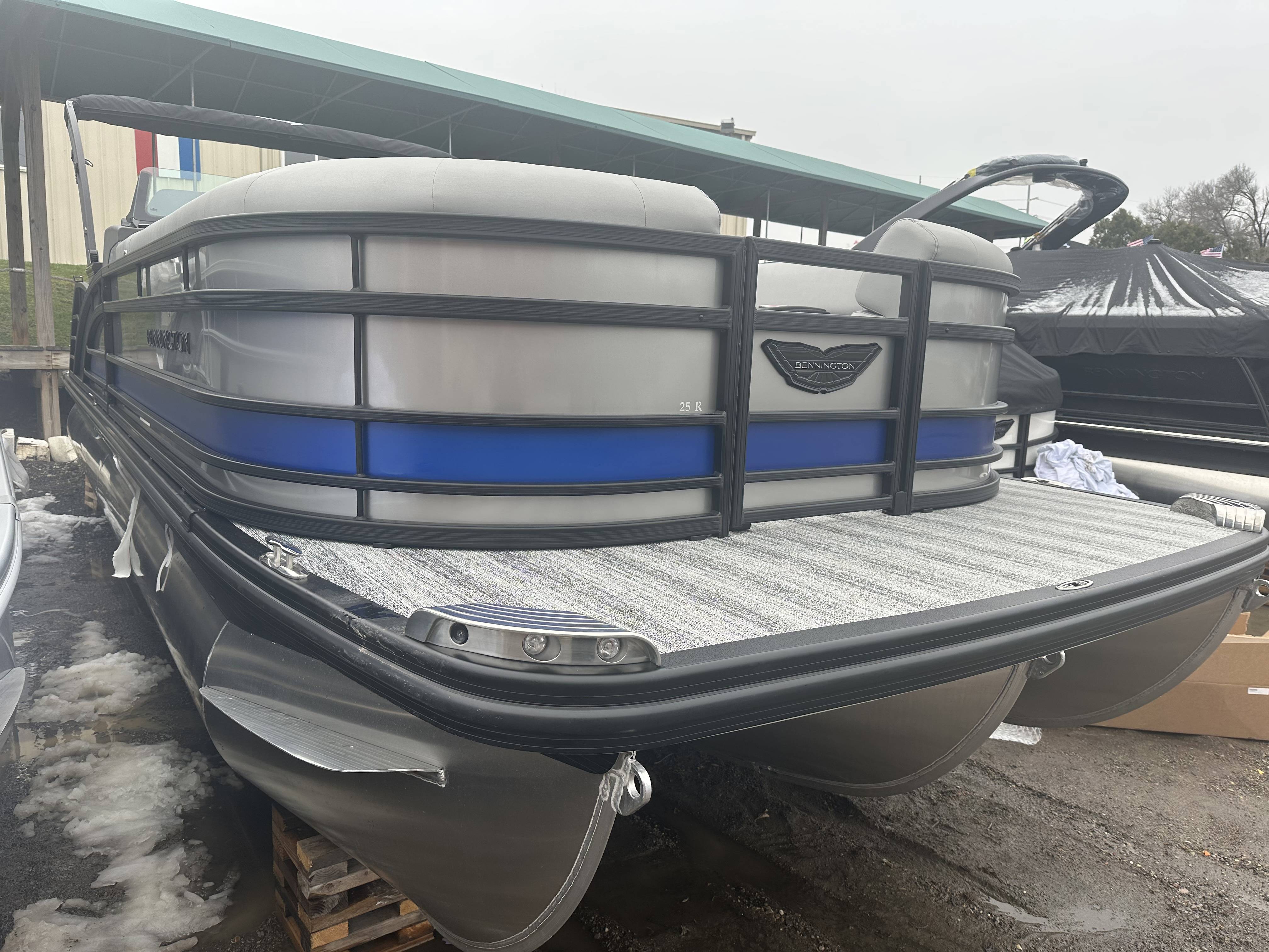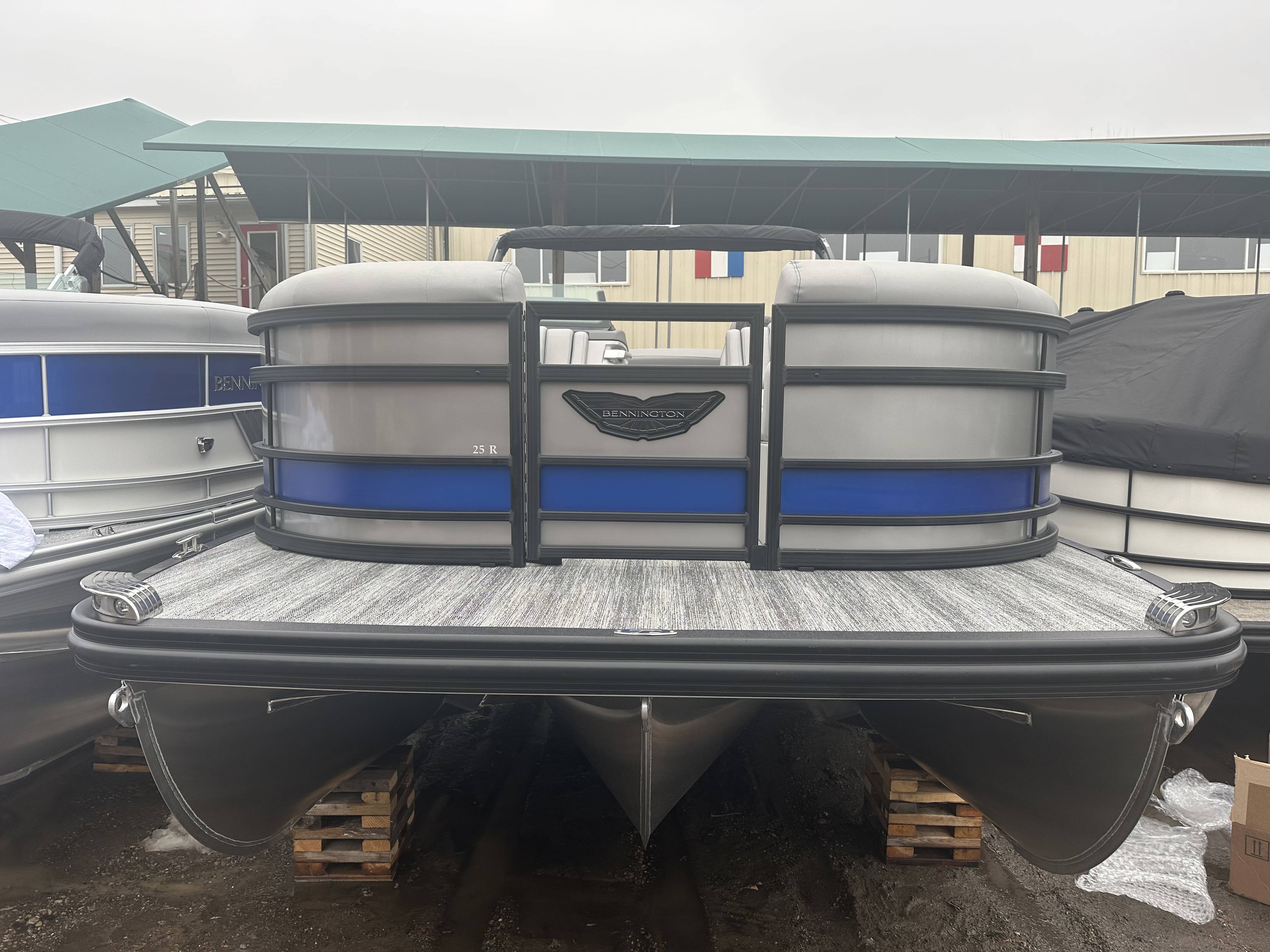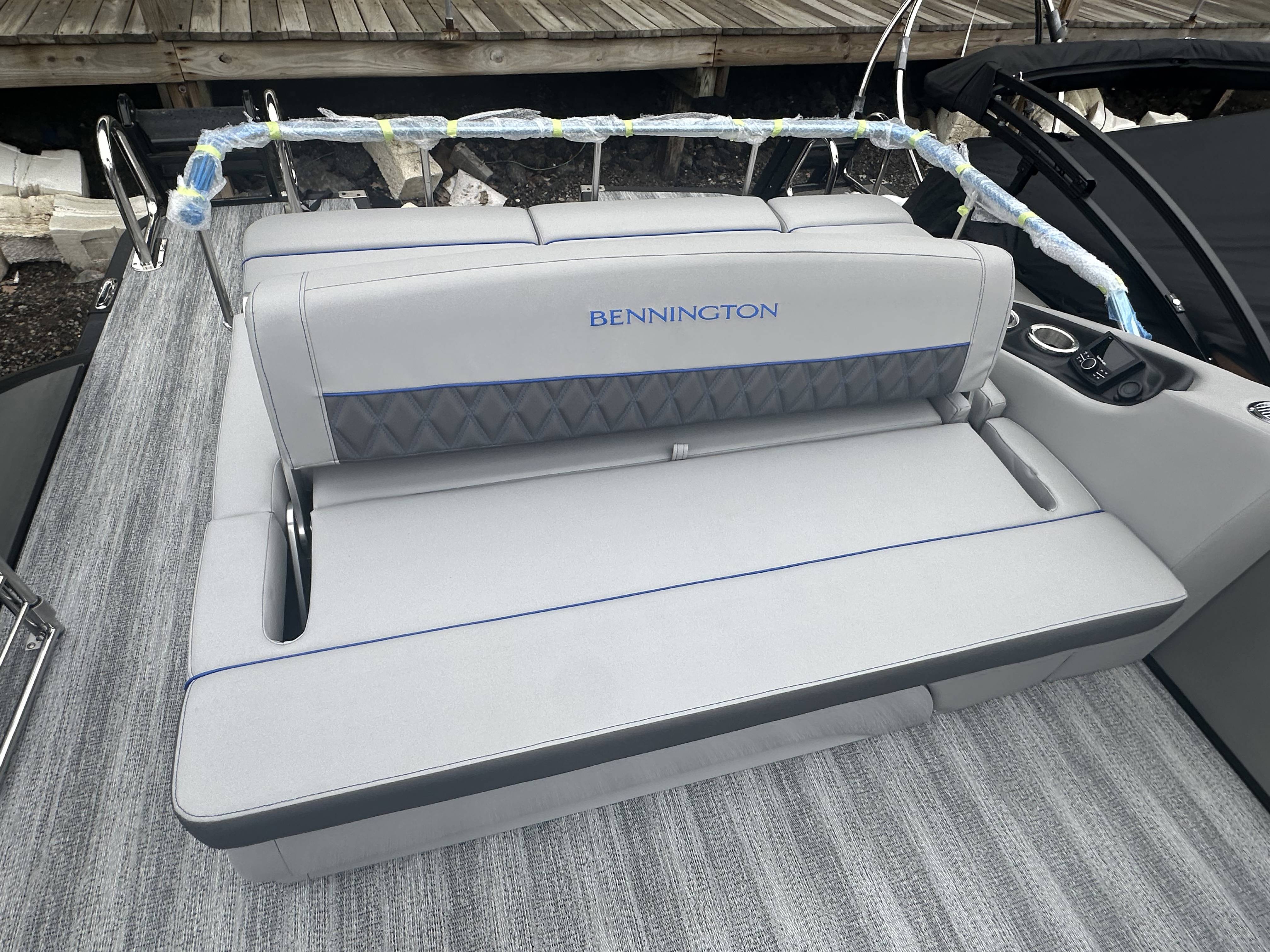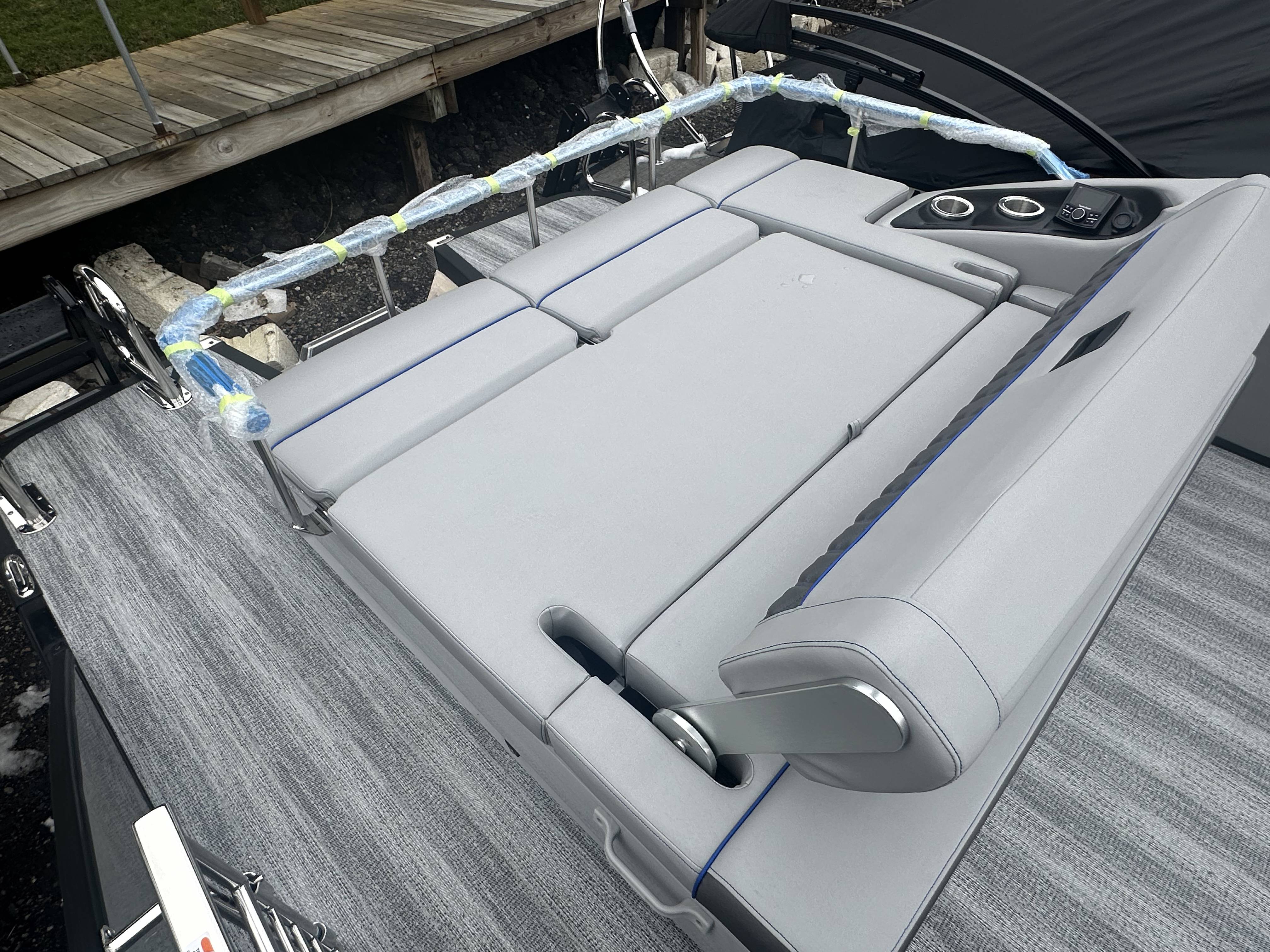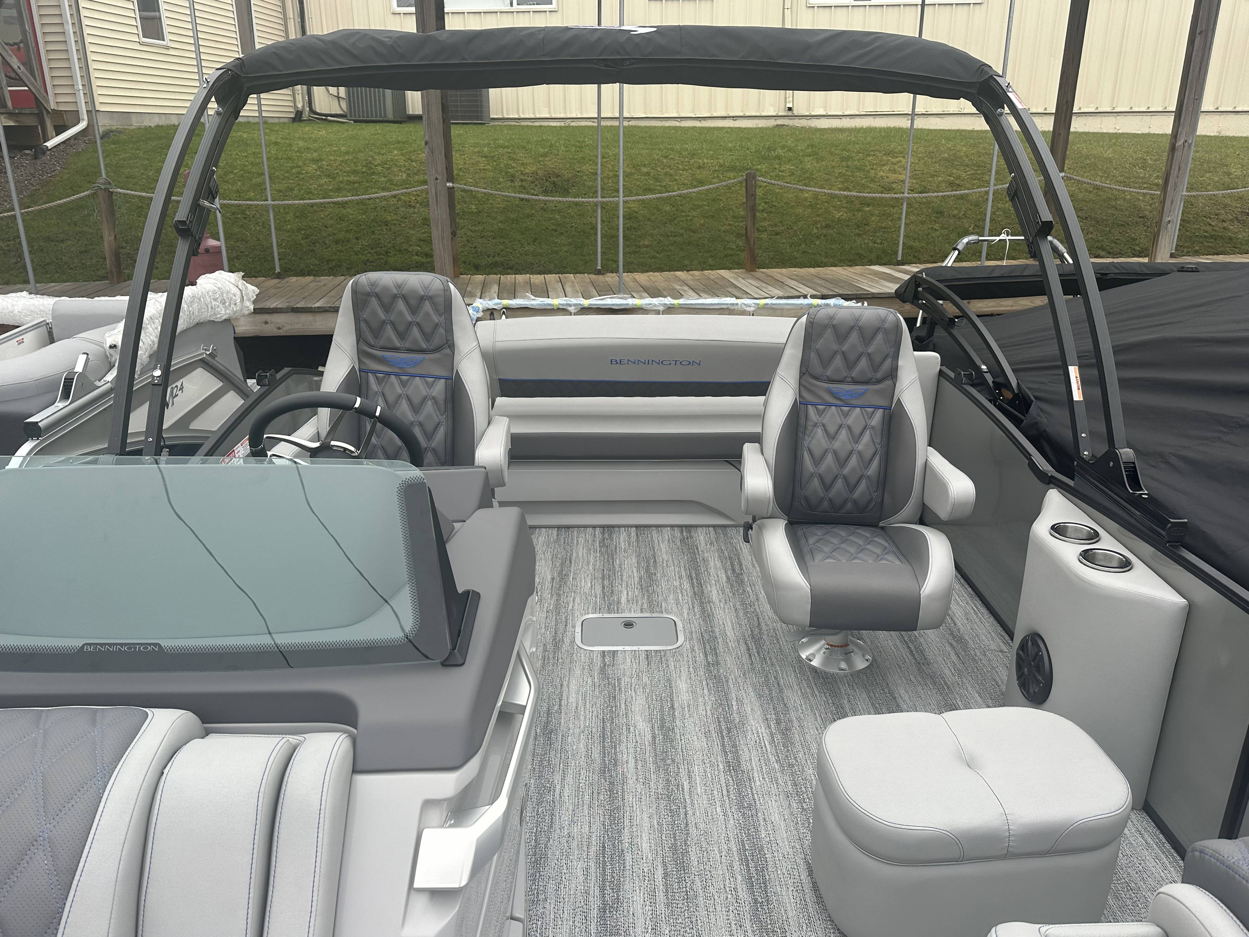2025 Bennington 25 RSB powered by a Yamaha F250XSB!Factory Installed Options:Exterior- smooth metallic silver with smooth bottom satin luminous blue accentsInterior- Silver pillowtop sport with perforated metallic carbonBlack canvasBlackout luxeZebrawood slate matte trim accentGrey shoreline flooringM1 sub/ampBlack corvina steering wheelLighted mesh swing back logoLighted cupholdersExterior side lightsCurved biminiCo-captain seat exchangeOttomanLuxury swing back keeper railDeluxe swing back queen reclinerLuminous blue embroidery packageBow & aft pop up cleatsBlack rub rail insertElliptical sport perf package 25ftESP fuel 73galCenter & anchor storageWavetamerDisplay Garmin 12 vivid 12 carbonFender post with clipAmerican flag54" removable aluminum ski pylonPrivacy frame/curtain