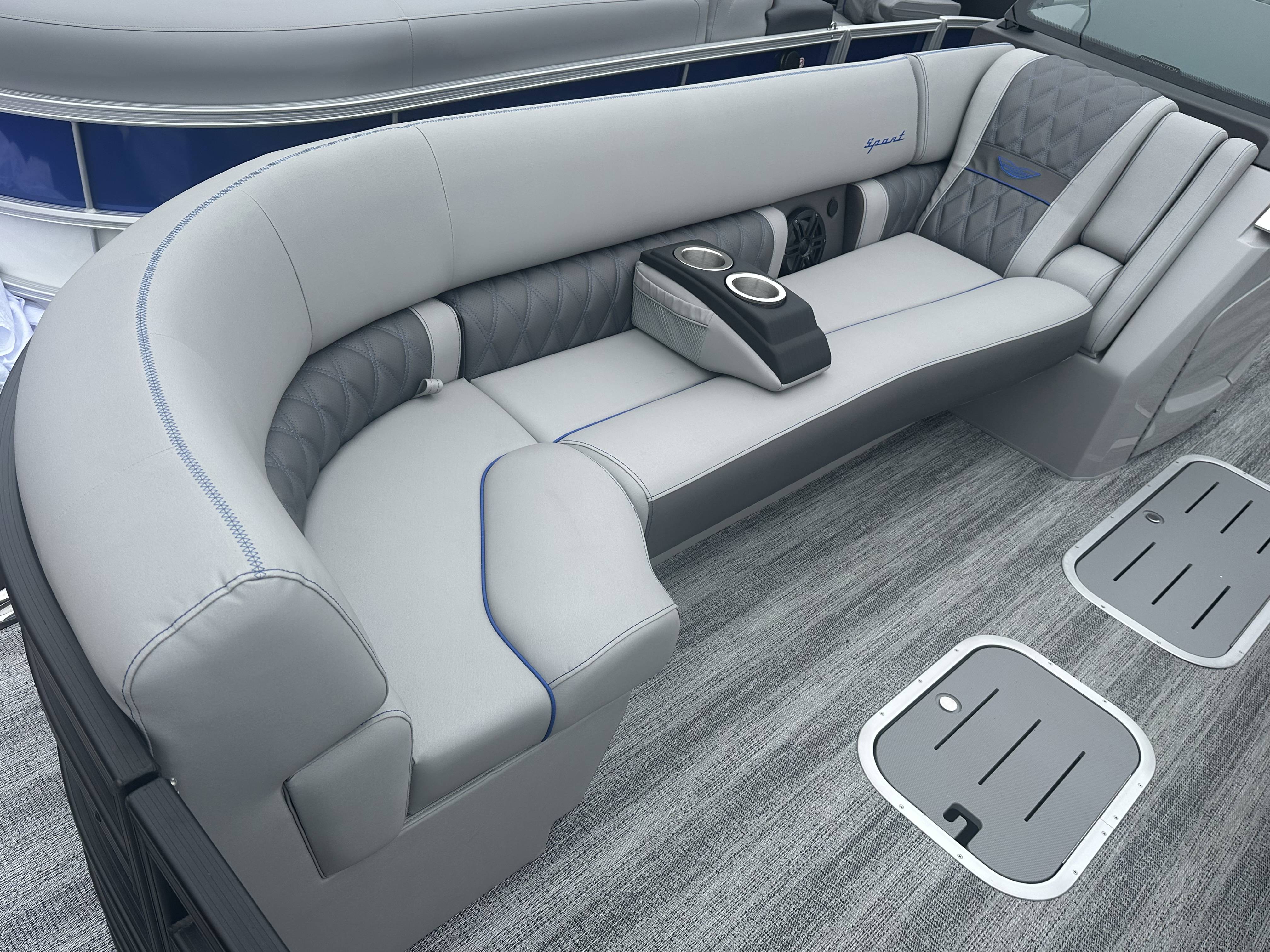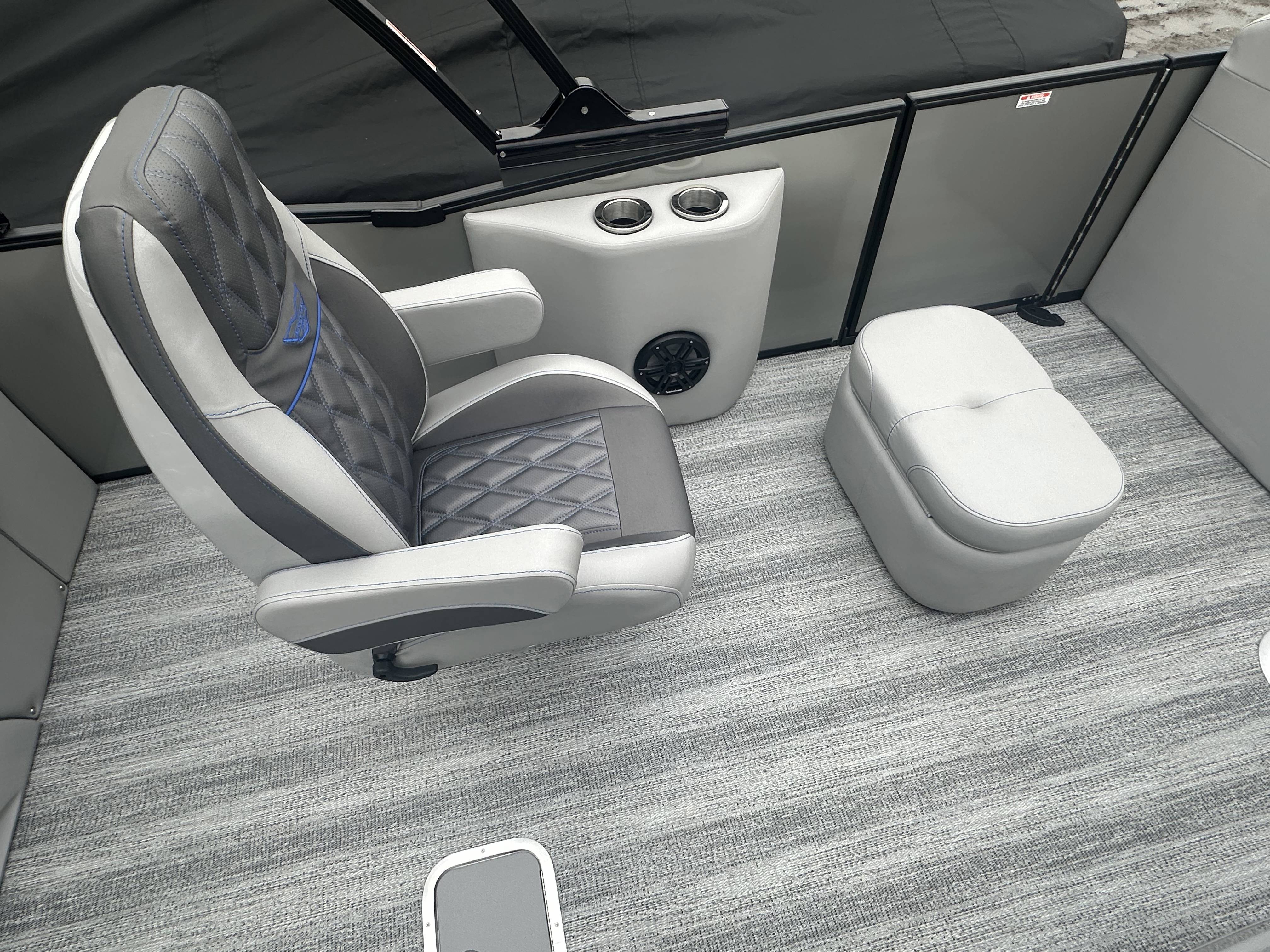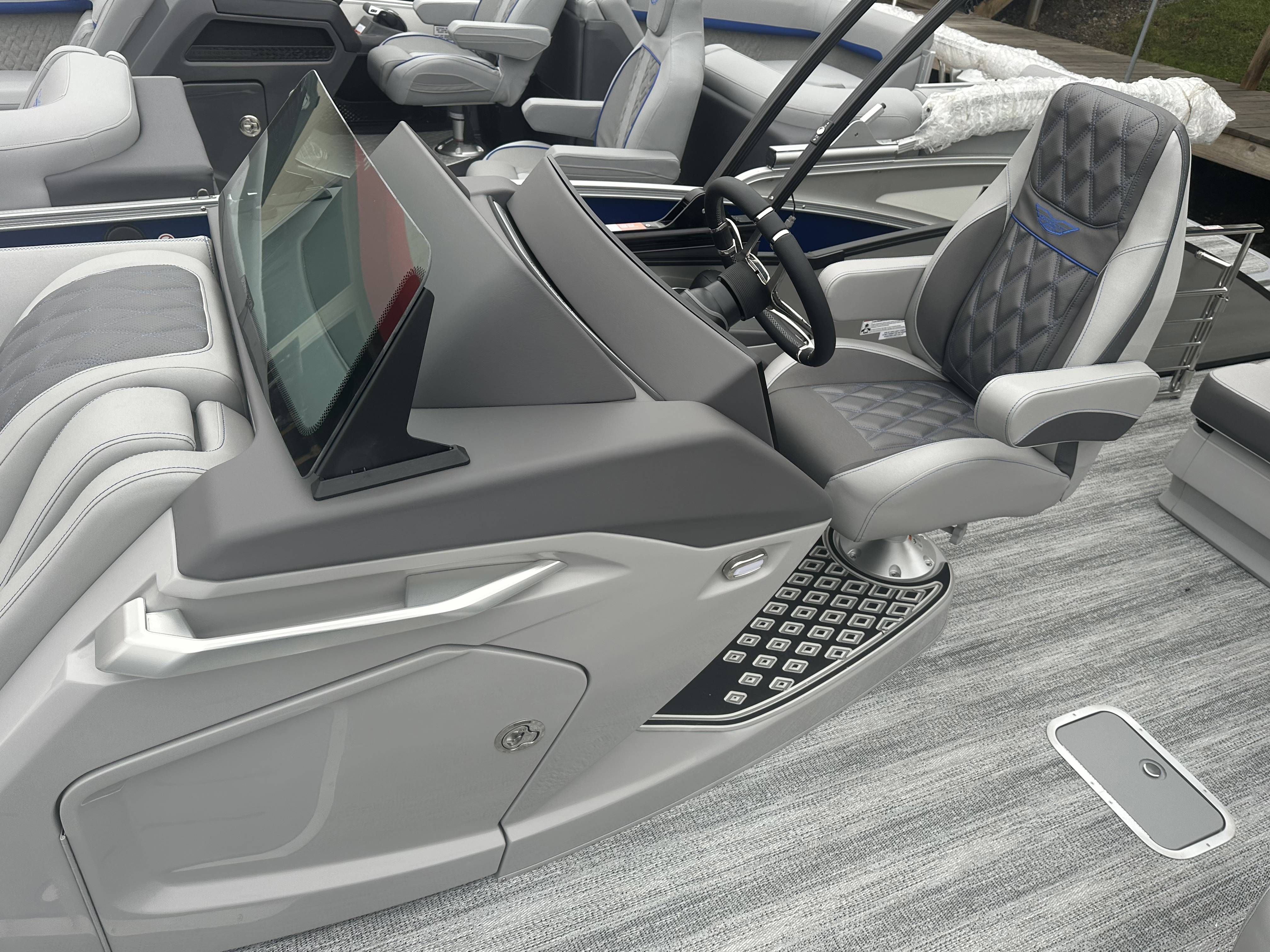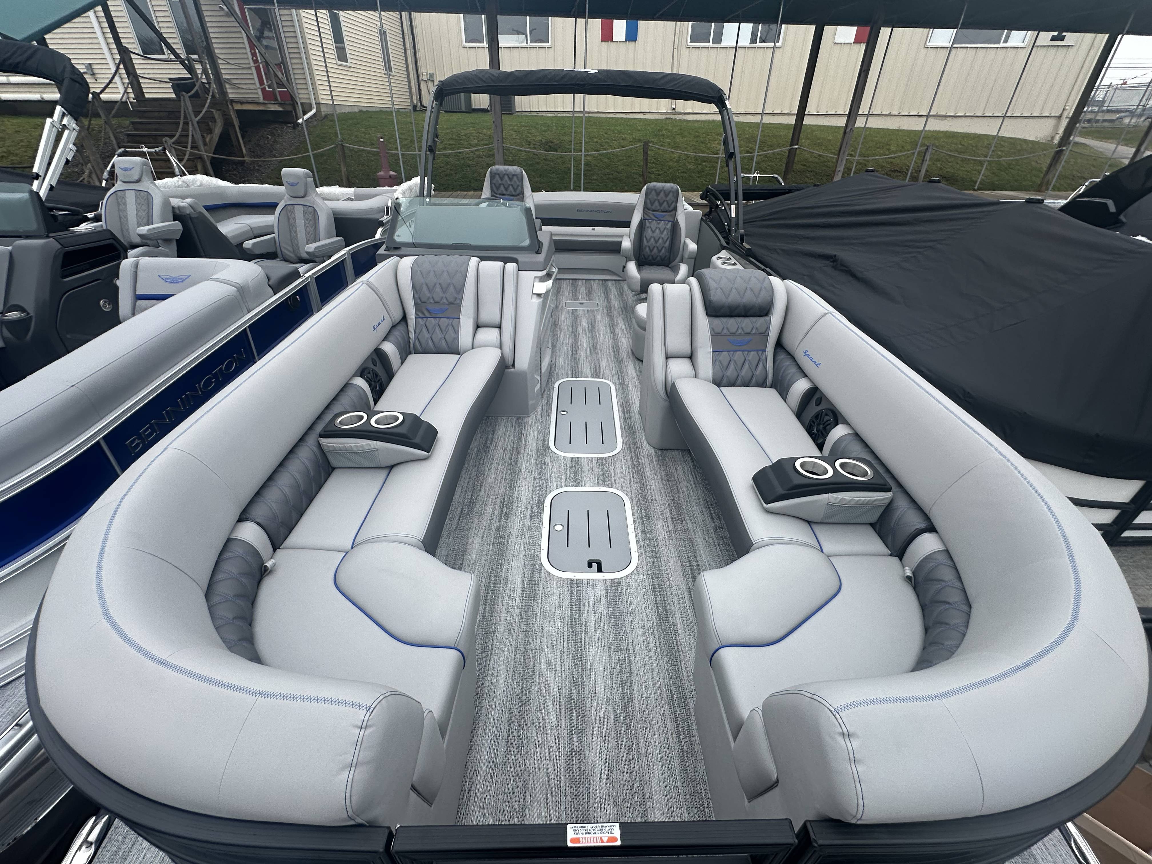 2025 Bennington 25 RSB powered by a Yamaha F250XSB!Factory Installed Options:Exterior- smooth metallic silver with smooth bottom satin luminous blue accentsInterior- Silver pillowtop sport with perforated metallic carbonBlack canvasBlackout luxeZebrawood slate matte trim accentGrey shoreline flooringM1 sub/ampBlack corvina steering wheelLighted mesh swing back logoLighted cupholdersExterior side lightsCurved biminiCo-captain seat exchangeOttomanLuxury swing back keeper railDeluxe swing back queen reclinerLuminous blue embroidery packageBow & aft pop up cleatsBlack rub rail insertElliptical sport perf package 25ftESP fuel 73galCenter & anchor storageWavetamerDisplay Garmin 12 vivid 12 carbonFender post with clipAmerican flag54" removable aluminum ski pylonPrivacy frame/curtain