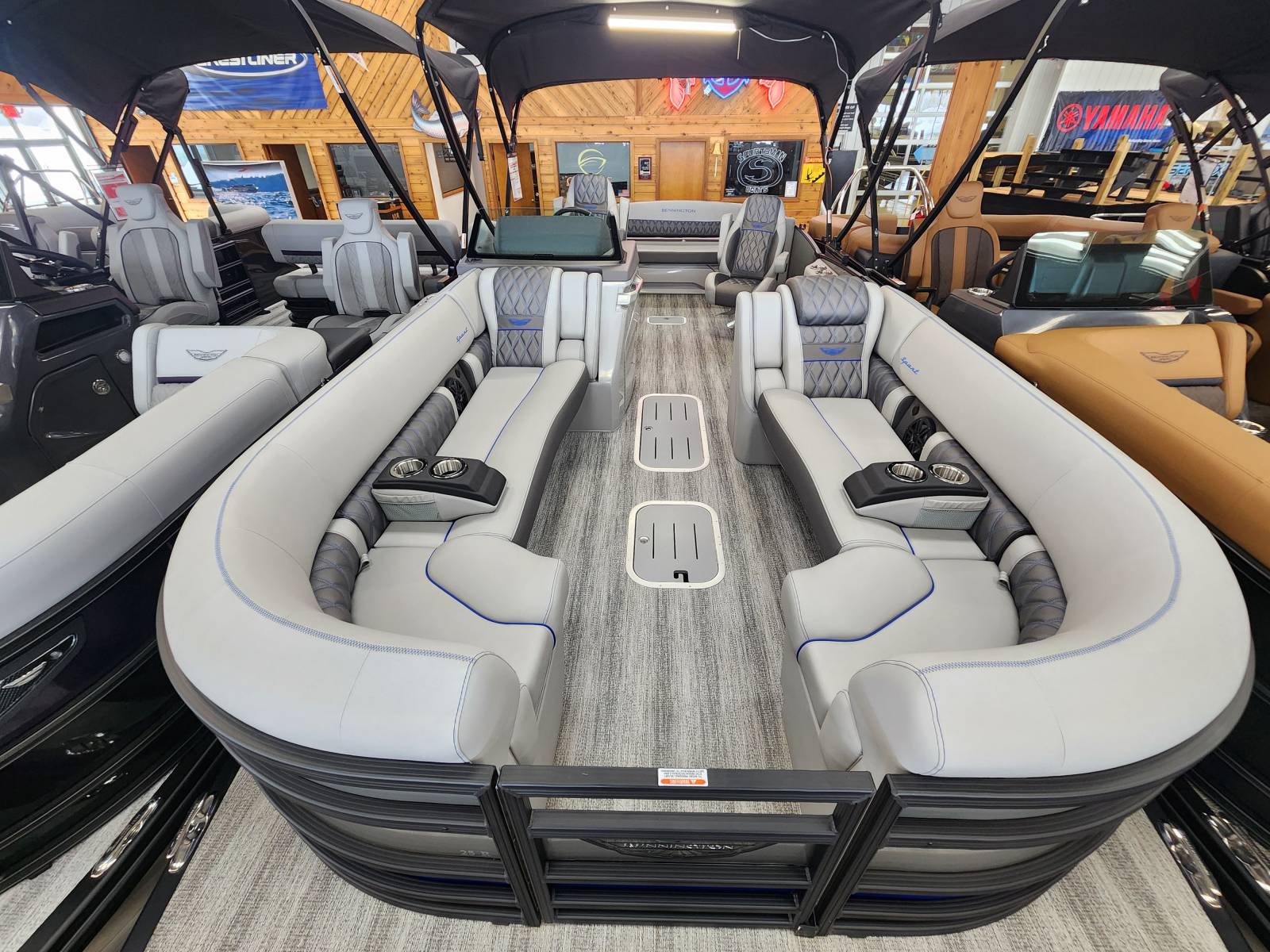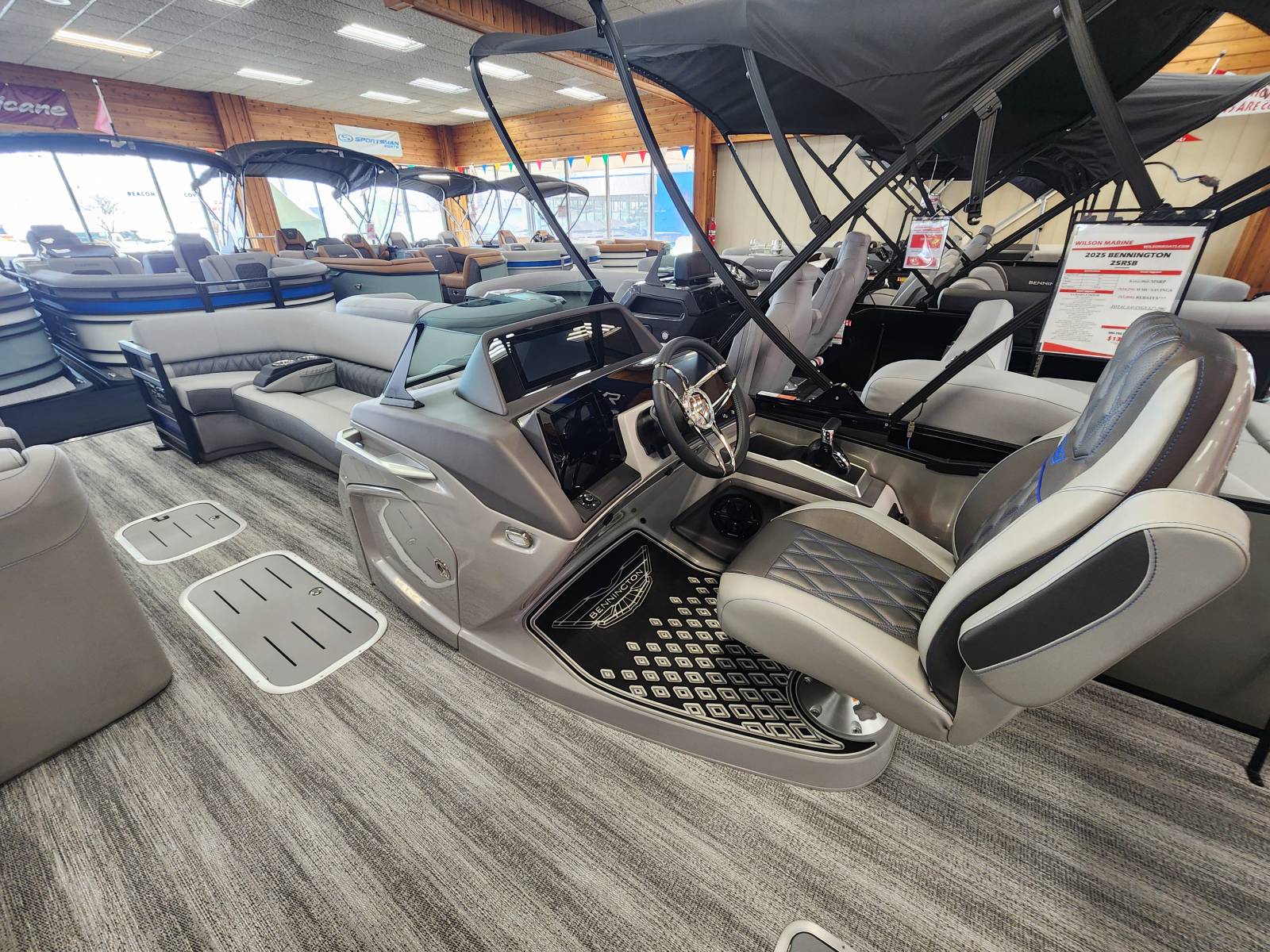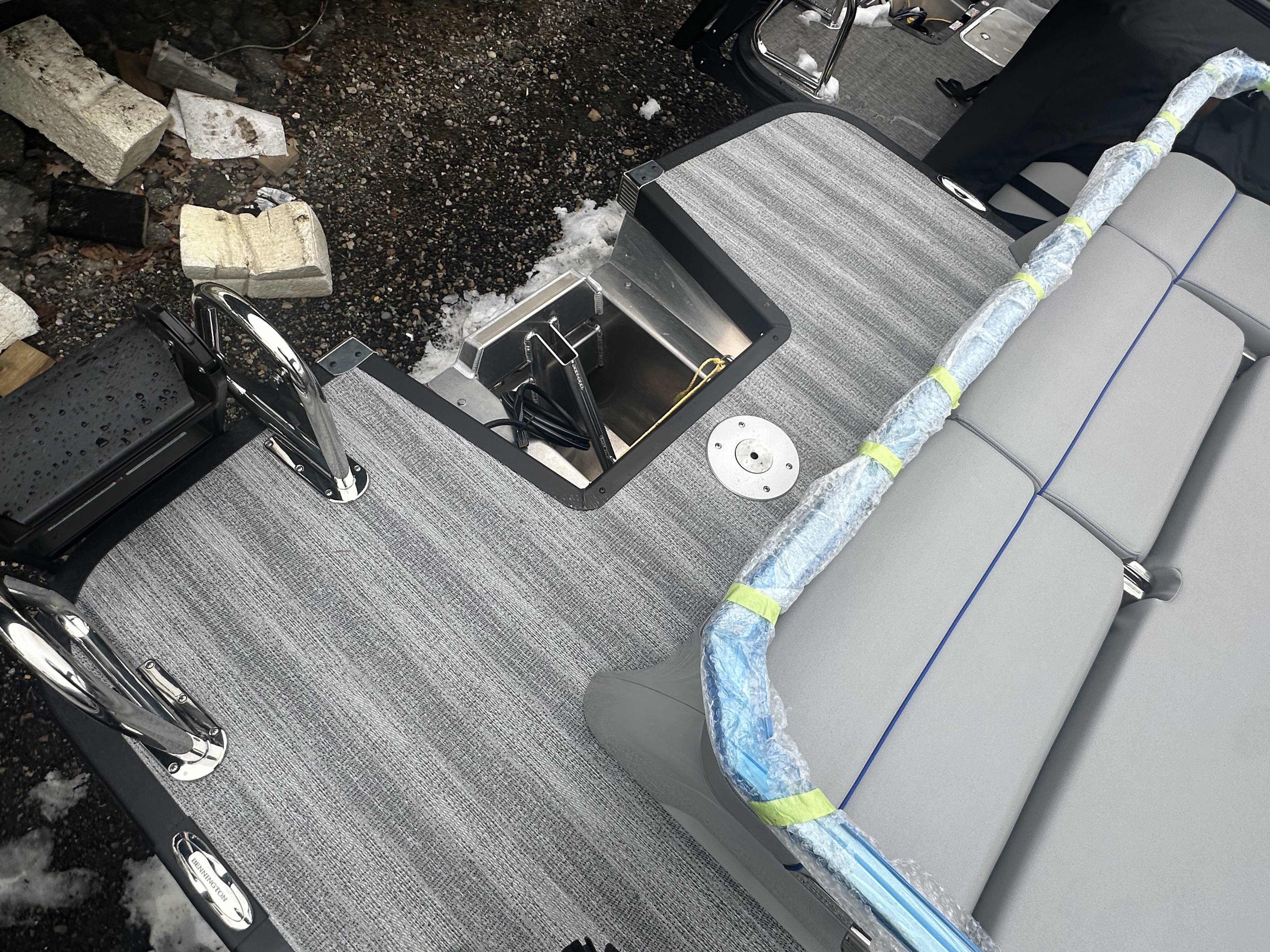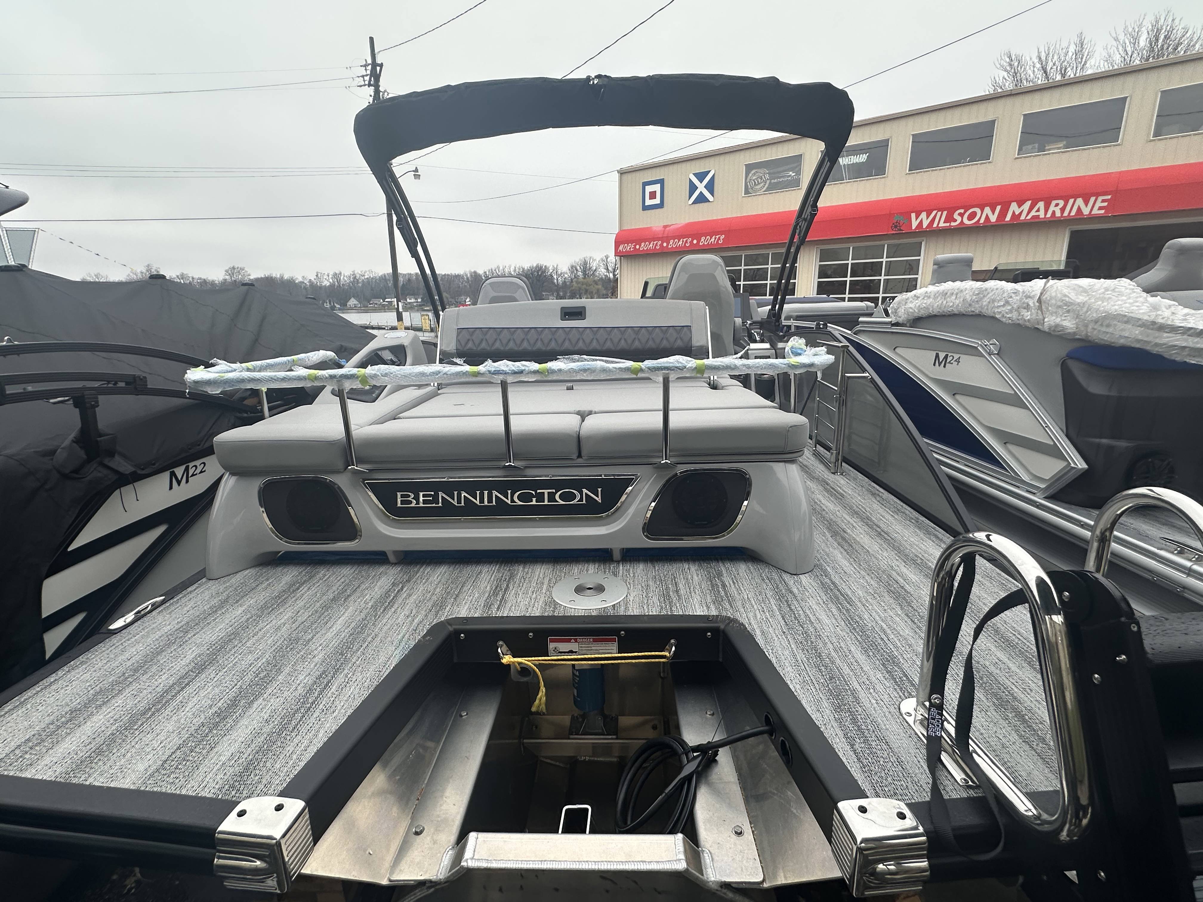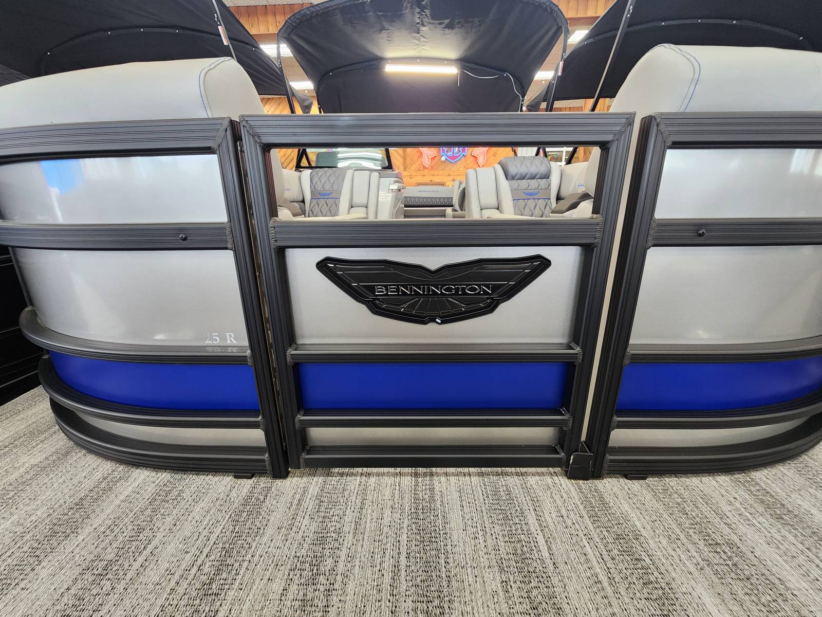 2025 Bennington 25 RSB powered by a Yamaha F250XSB!Factory Installed Options:Exterior- smooth metallic silver with smooth bottom satin luminous blue accentsInterior- Silver pillowtop sport with perforated metallic carbonBlack canvasBlackout luxeZebrawood slate matte trim accentGrey shoreline flooringM1 sub/ampBlack corvina steering wheelLighted mesh swing back logoLighted cupholdersExterior side lightsCurved biminiCo-captain seat exchangeOttomanLuxury swing back keeper railDeluxe swing back queen reclinerLuminous blue embroidery packageBow & aft pop up cleatsBlack rub rail insertElliptical sport perf package 25ftESP fuel 73galCenter & anchor storageWavetamerDisplay Garmin 12 vivid 12 carbonFender post with clipAmerican flag54" removable aluminum ski pylonPrivacy frame/curtain