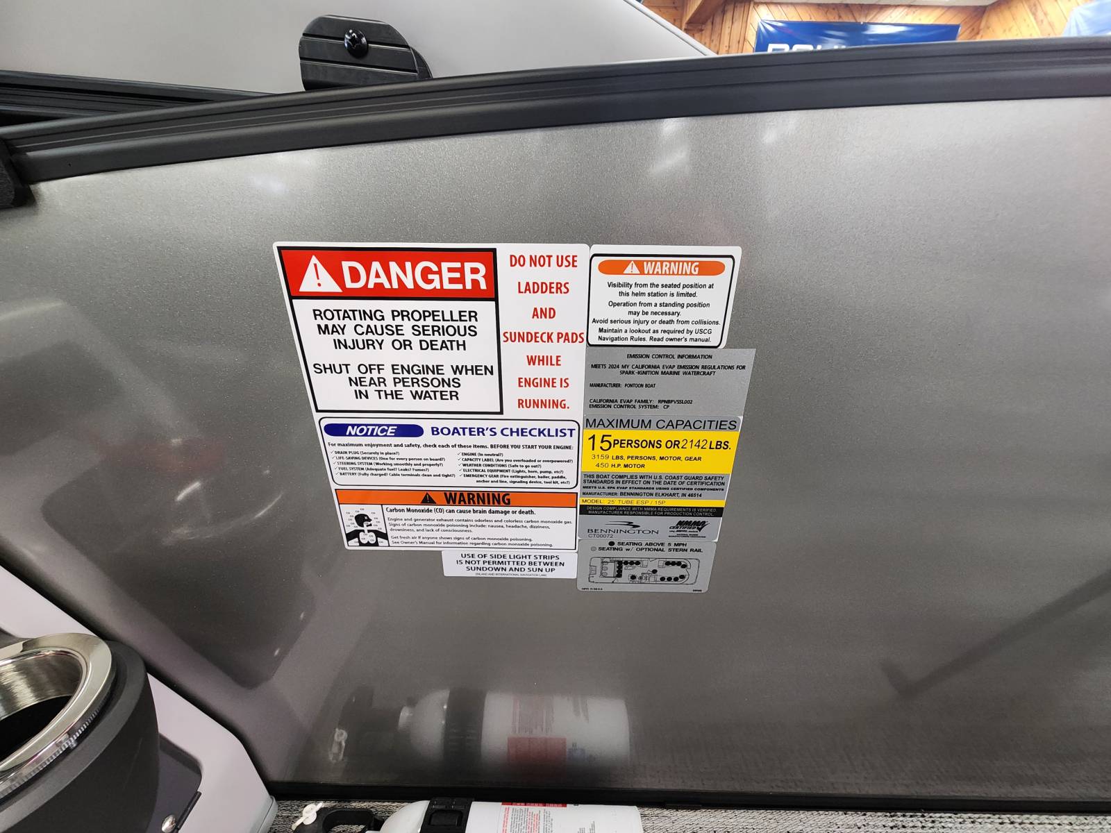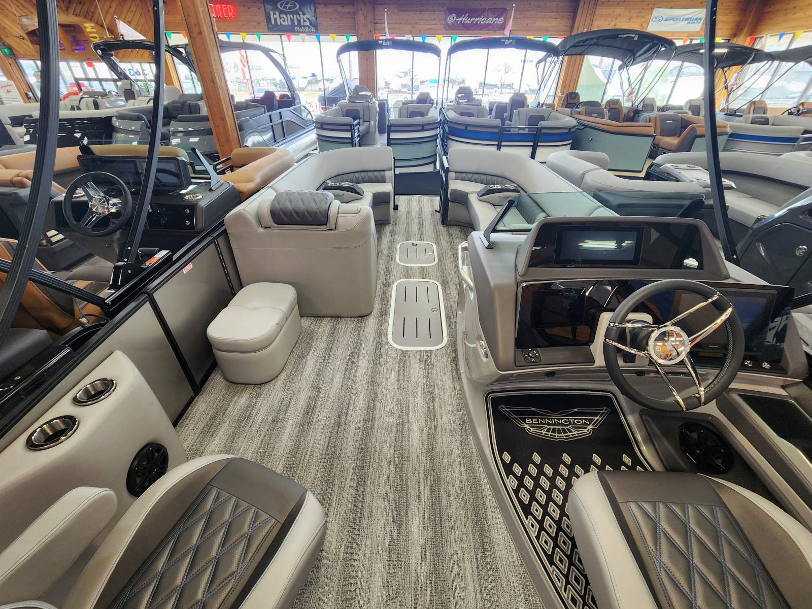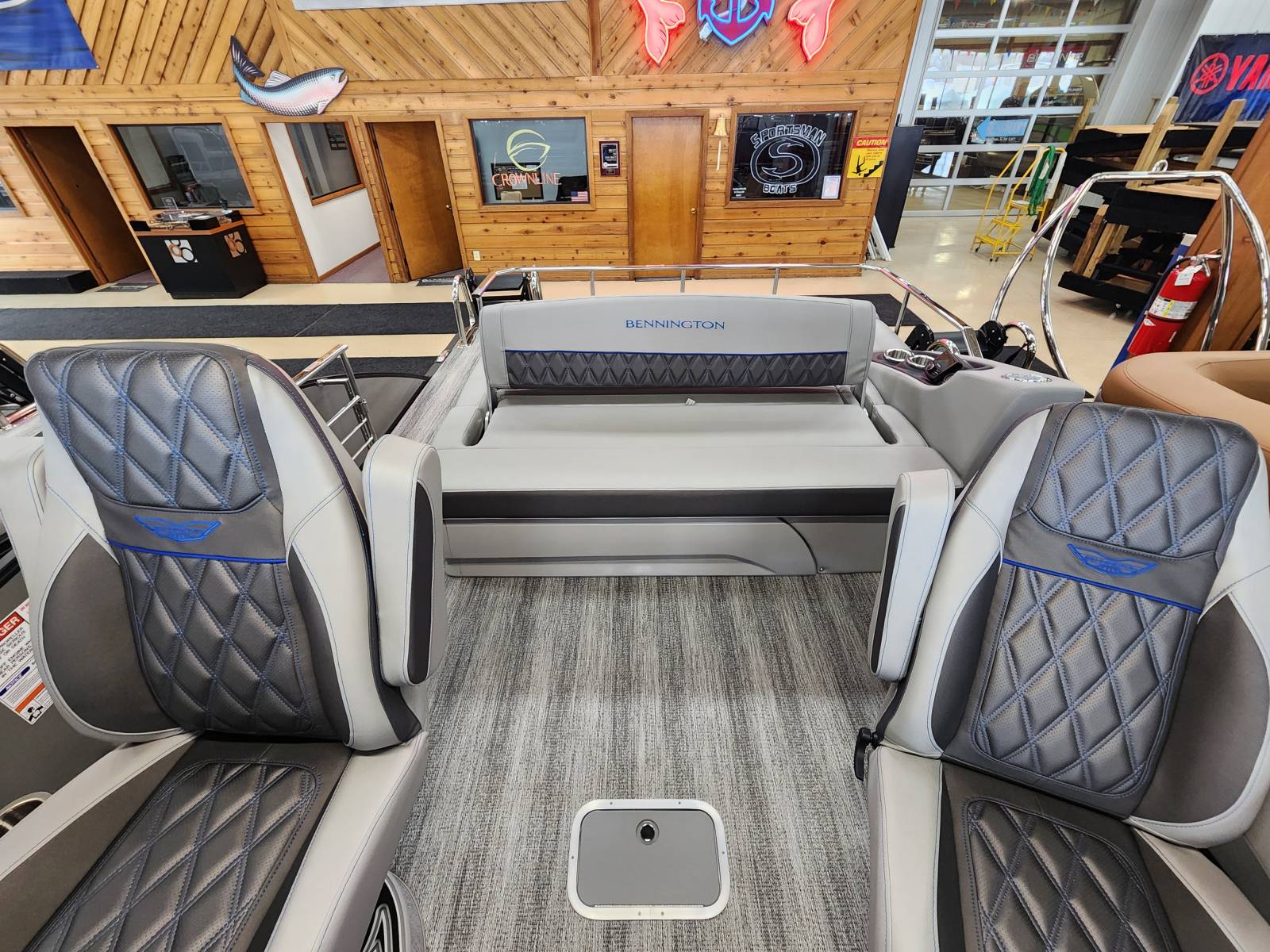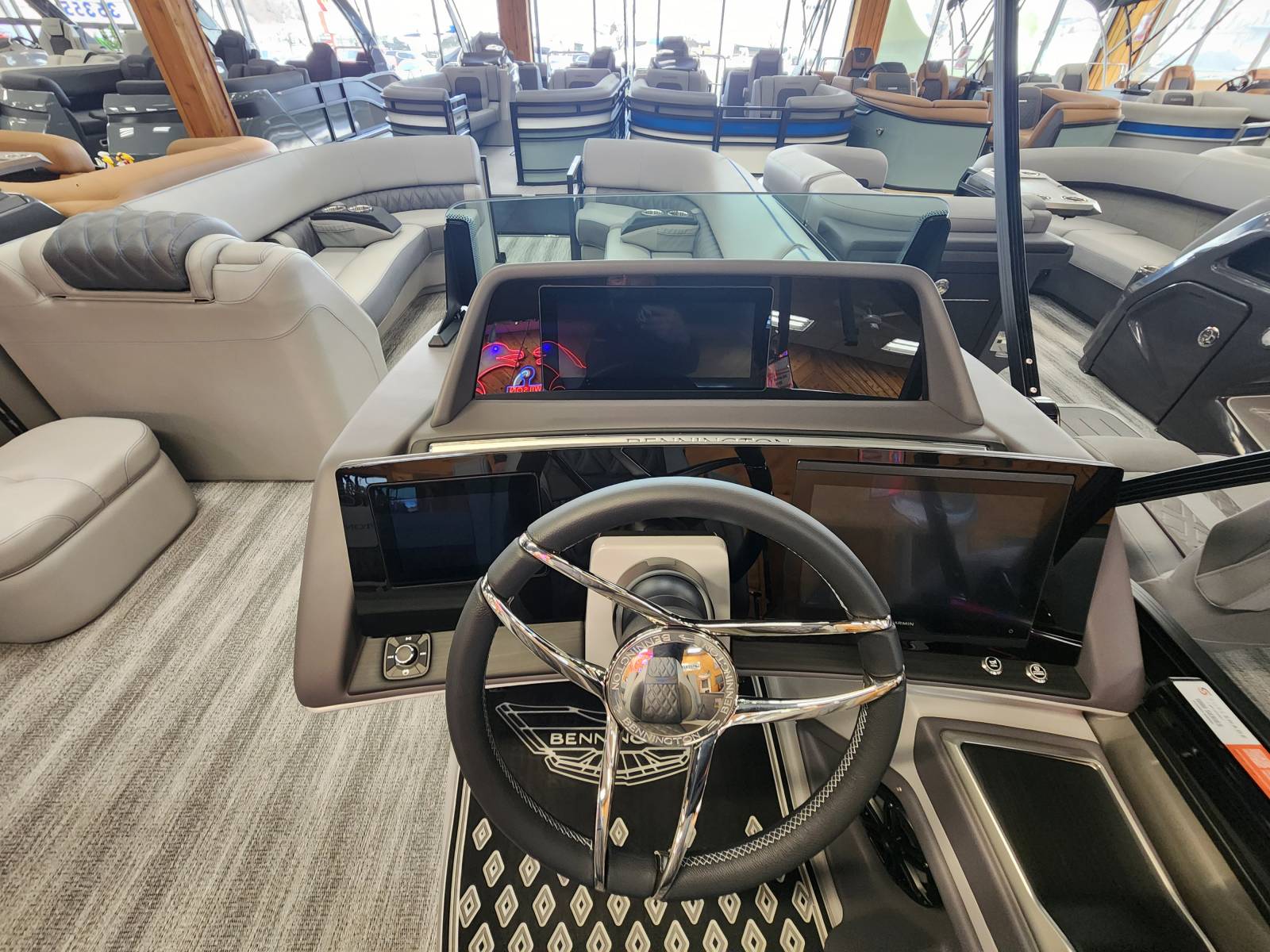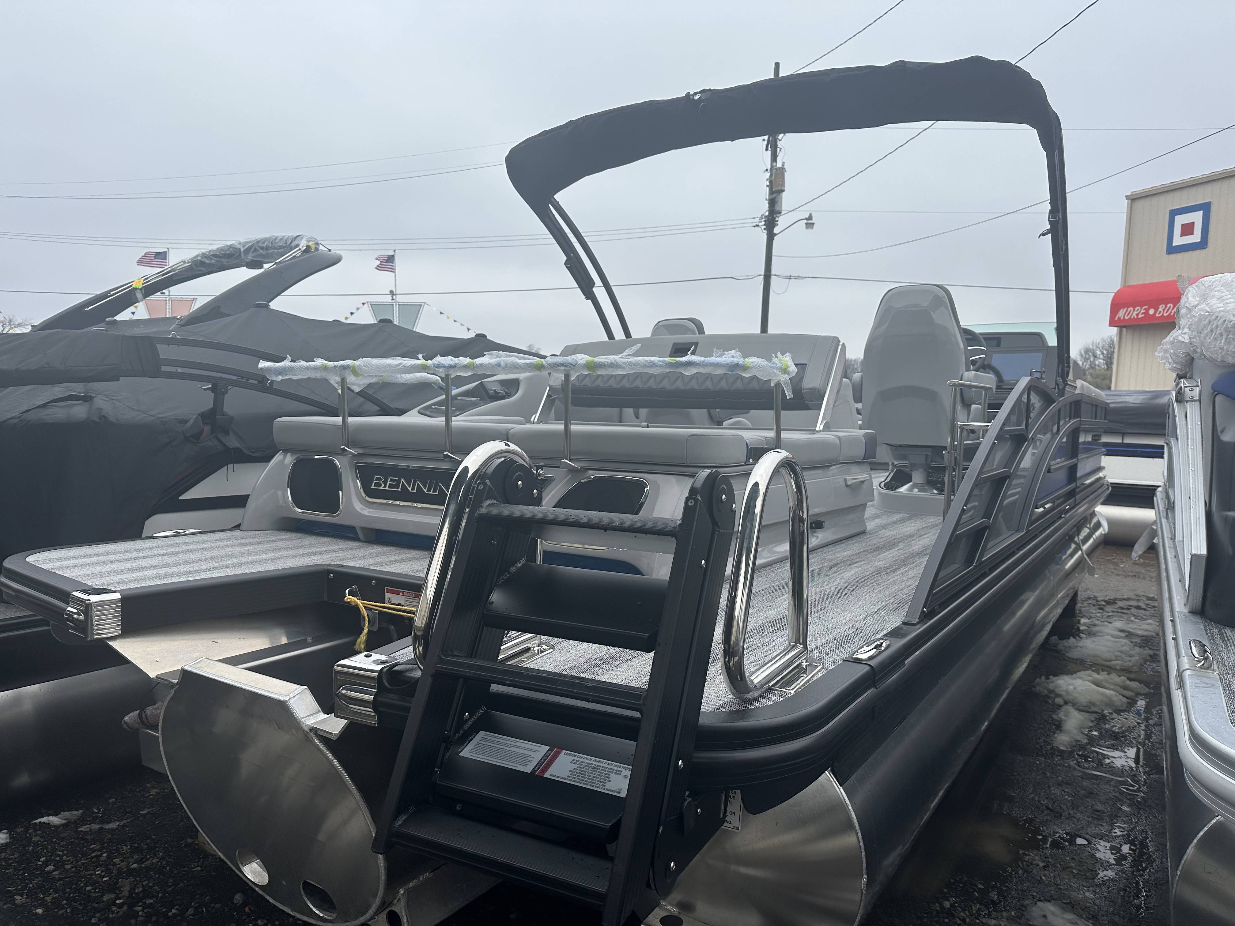 2025 Bennington 25 RSB powered by a Yamaha F250XSB!Factory Installed Options:Exterior- smooth metallic silver with smooth bottom satin luminous blue accentsInterior- Silver pillowtop sport with perforated metallic carbonBlack canvasBlackout luxeZebrawood slate matte trim accentGrey shoreline flooringM1 sub/ampBlack corvina steering wheelLighted mesh swing back logoLighted cupholdersExterior side lightsCurved biminiCo-captain seat exchangeOttomanLuxury swing back keeper railDeluxe swing back queen reclinerLuminous blue embroidery packageBow & aft pop up cleatsBlack rub rail insertElliptical sport perf package 25ftESP fuel 73galCenter & anchor storageWavetamerDisplay Garmin 12 vivid 12 carbonFender post with clipAmerican flag54" removable aluminum ski pylonPrivacy frame/curtain