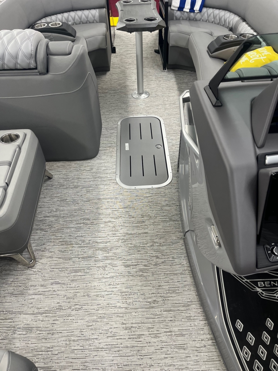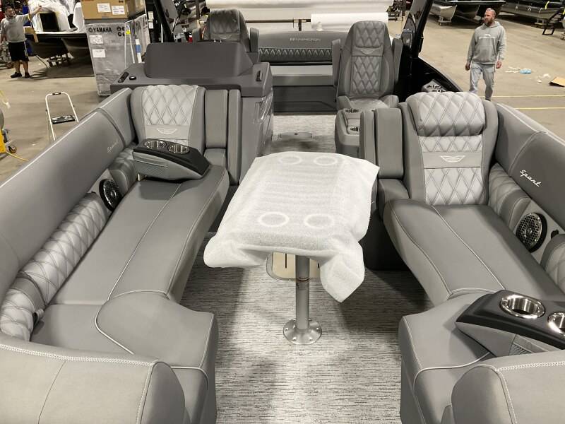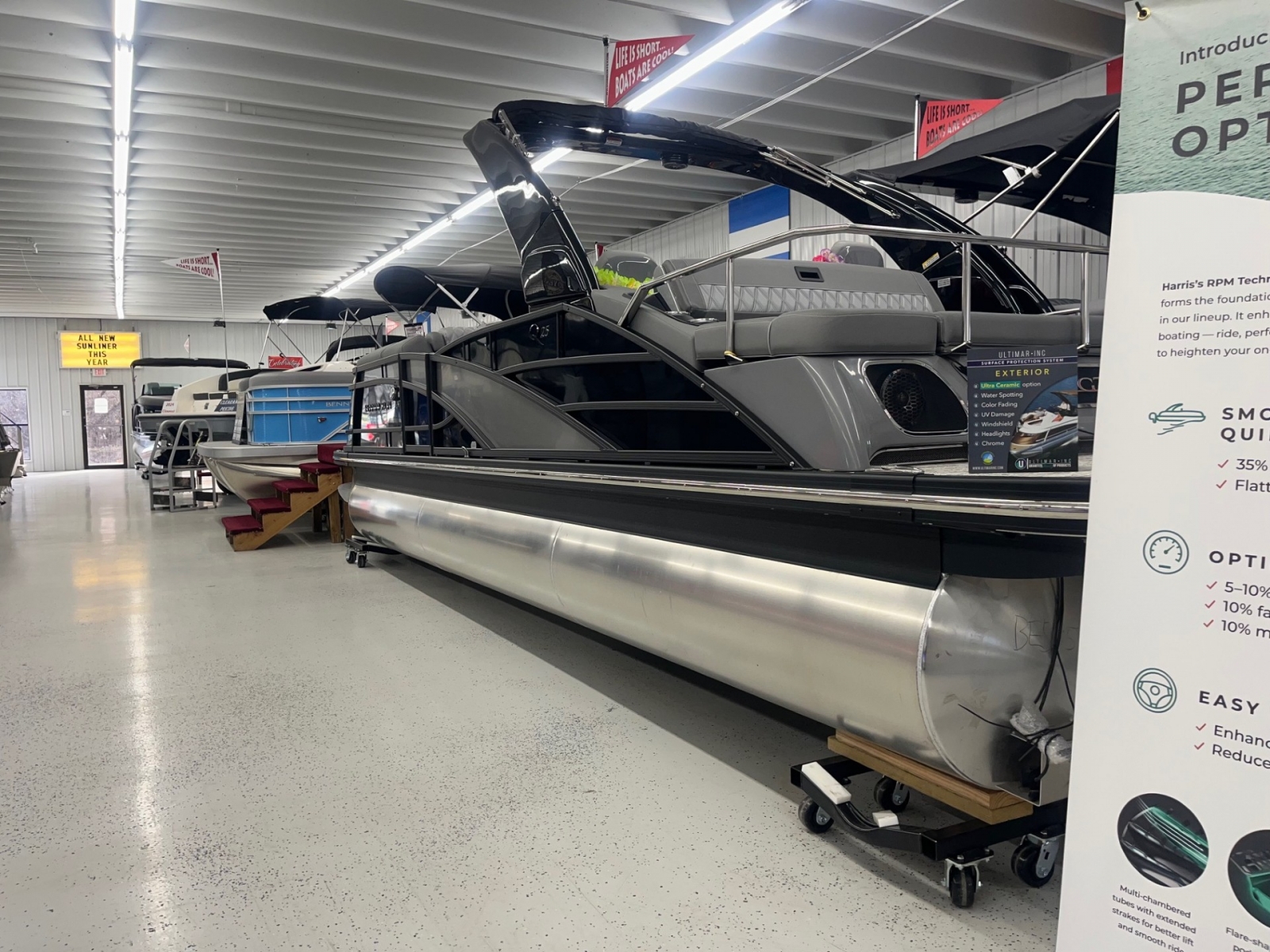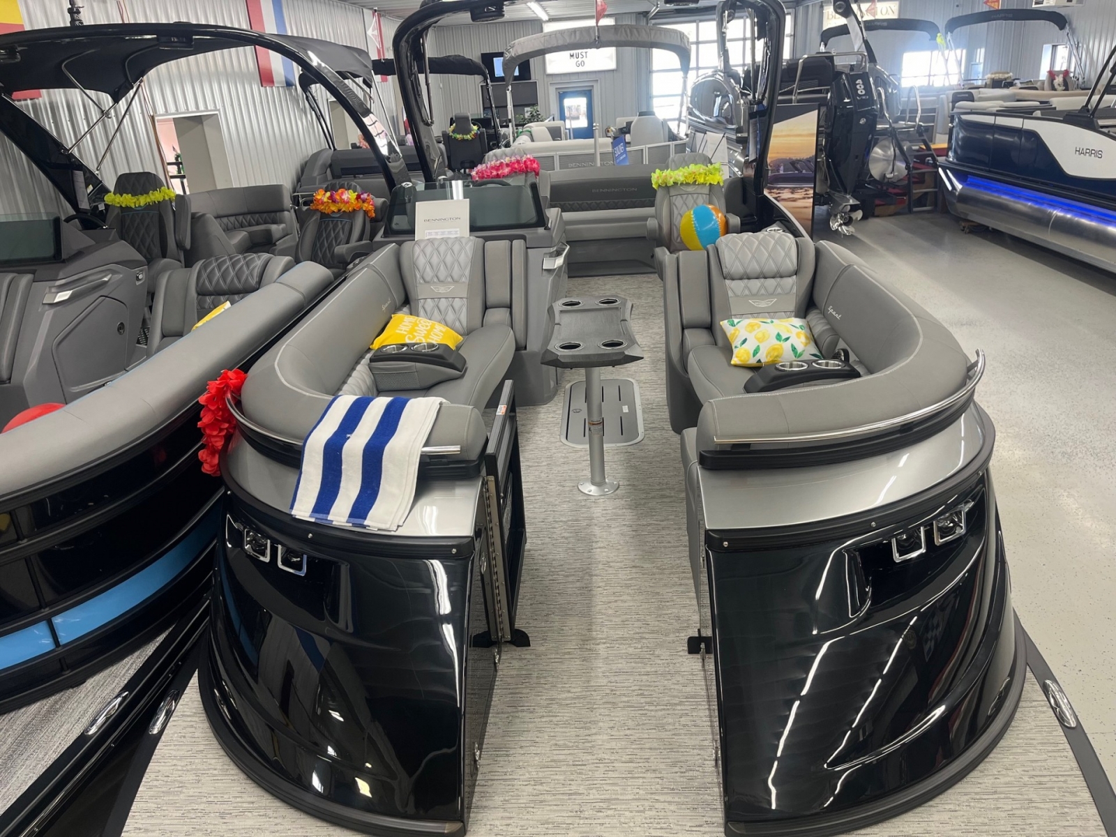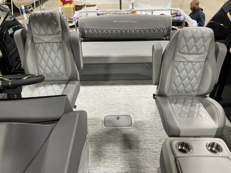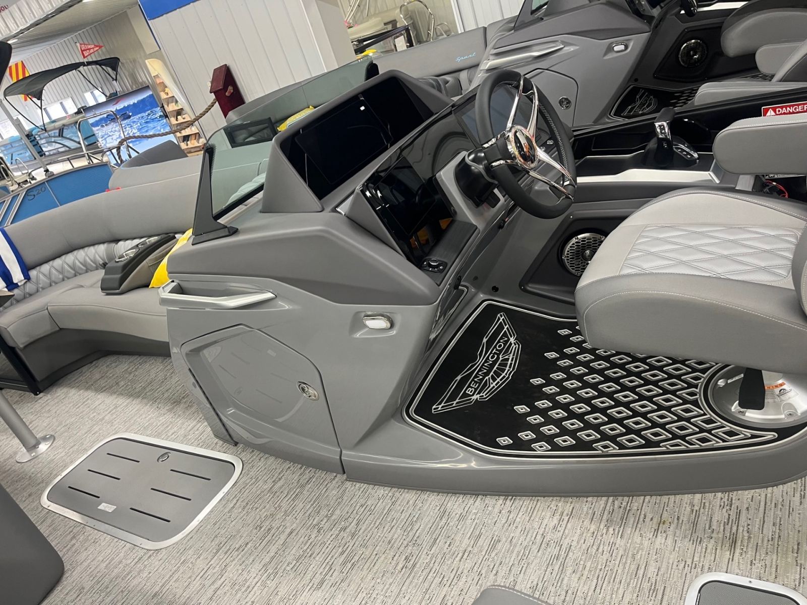2025 Bennington 25QSBA powered by a Yamaha XF425NSB!Factory Installed Options:Exterior- smooth gemini black with smooth metallic silver top accentsInterior- pillowtop sport graphite simtex with perforated silver accentsBlack canvasBlackout luxeCladded power archValencia grey flooringUpgraded M2 speaker sub/ampLighted cupholdersToekick lightingLighted mesh logo on swingbackOttomanLuxury keeper railDeluxe swingback queen reclinerBlack rectangular bow tablePop up cleats aftESP upgrade 25' OB .125Fuel-73 galDual port battery switchLifted strakesWavetamer to bowIn floor storageSealed transomDisplay Garmin 12 Vivid 7Fender post with clipsAmerican flag54" ski pylon