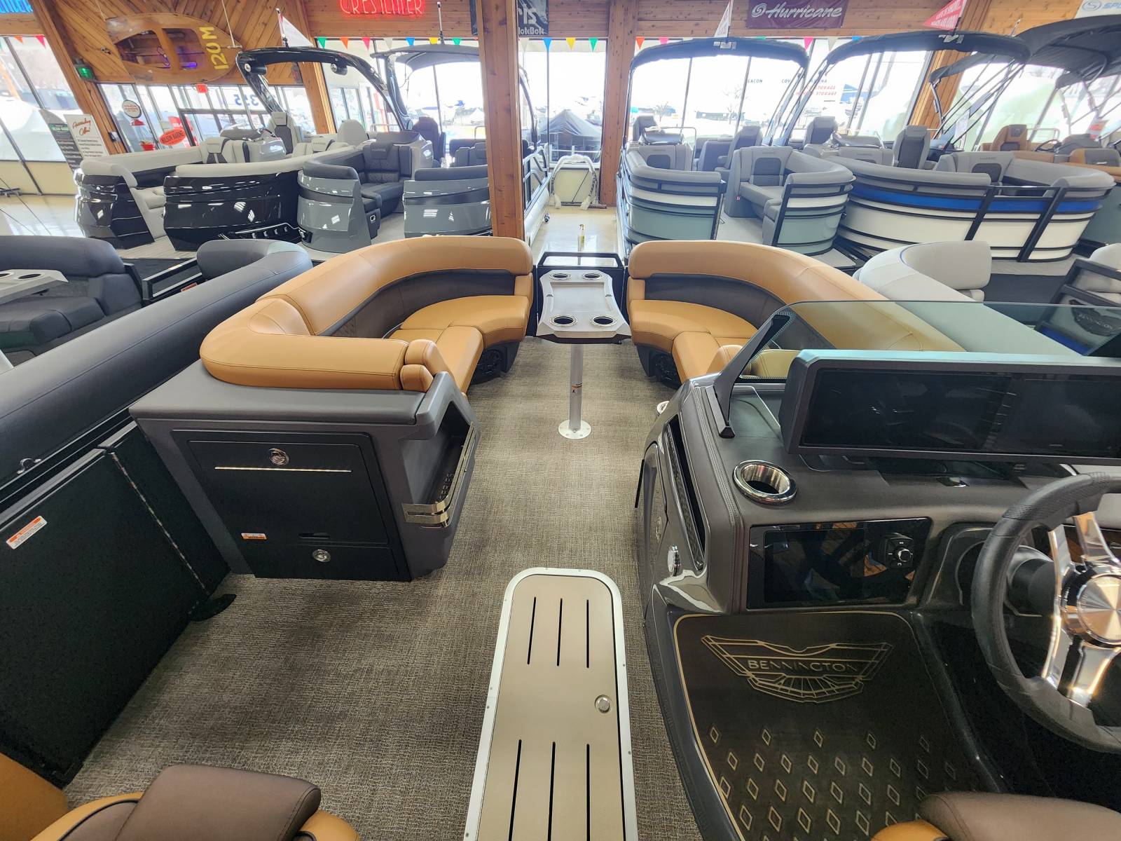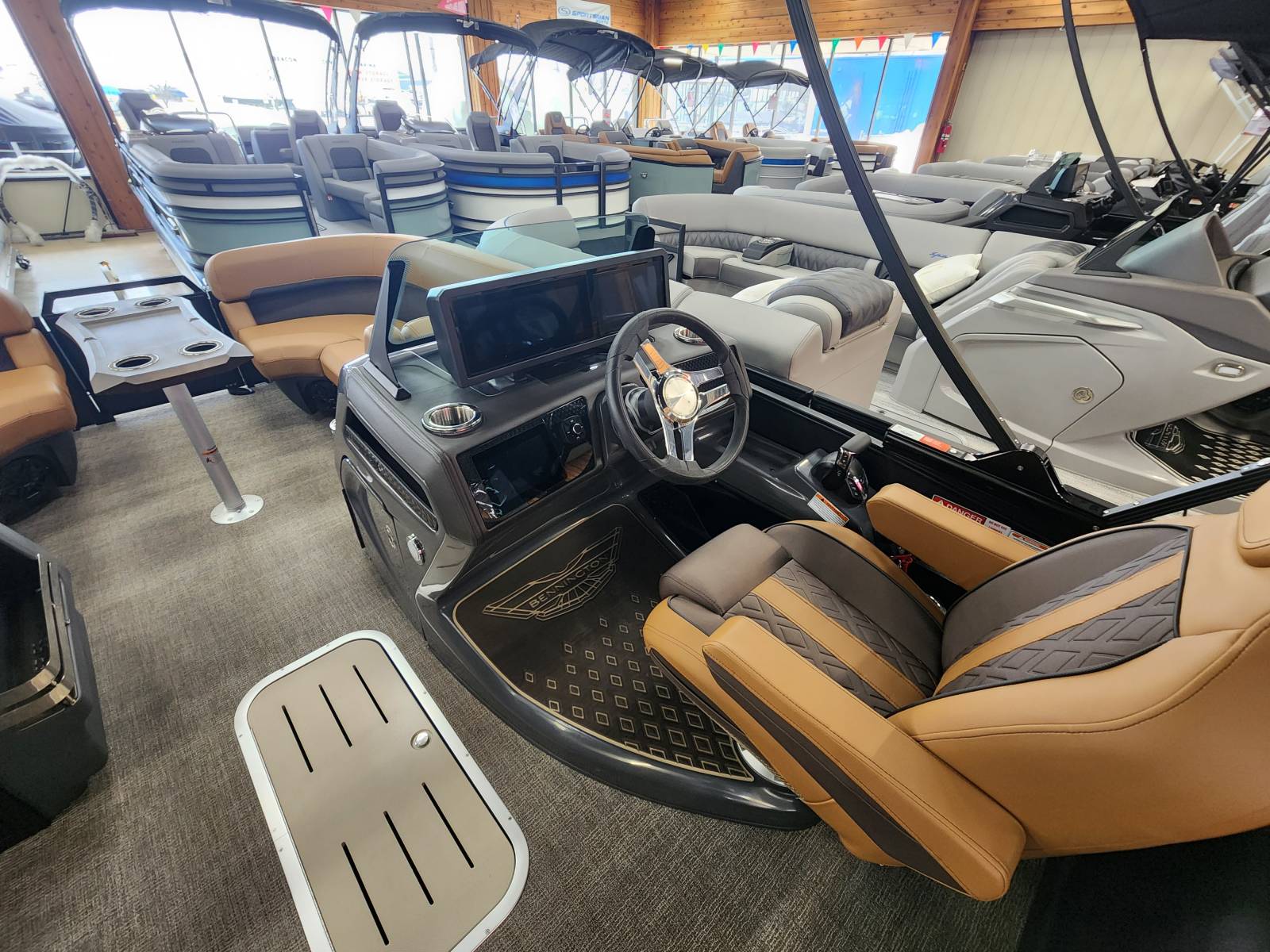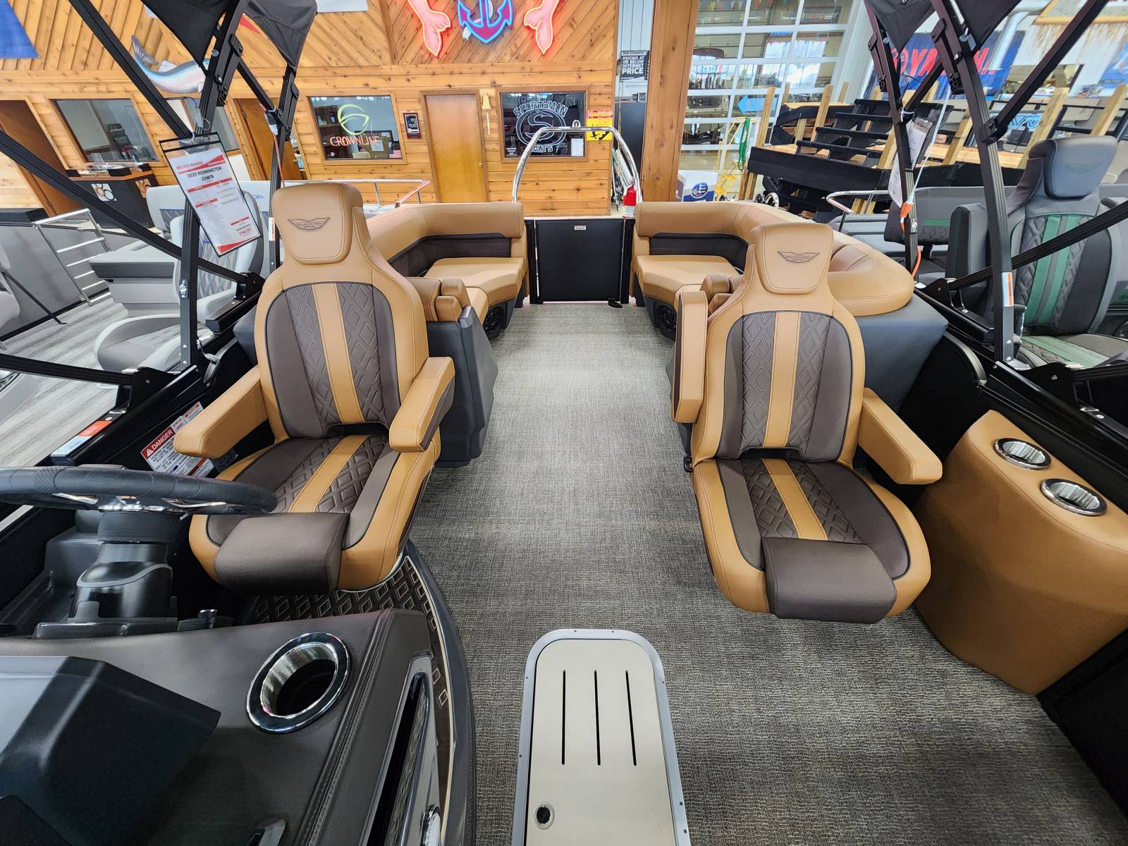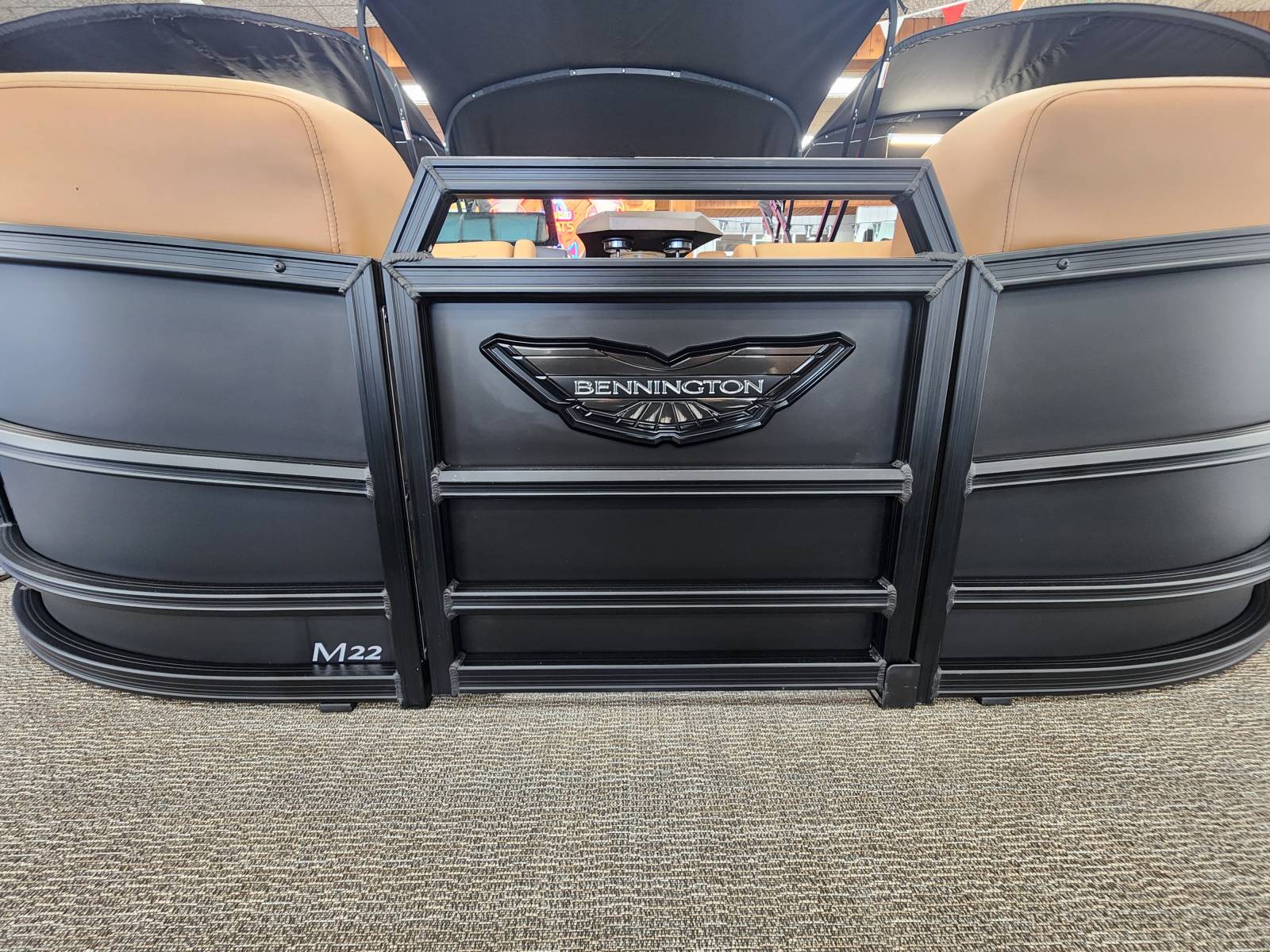 2025 Bennington 22MFB powered by a Yamaha F200XSA!Factory Installed Options:Exterior- smooth matte blackInterior- veneto 80% in modesto brown with mythos grey simtex accentsBlack canvasBlackout luxeBase M series trim packageBeige zebrawood trim accentGrano platinum flooringUpgraded M1 lighted speakerConsole exchangeExterior side lightsLumbar lightingCurved bimini topChaise convenience tablePop up cleats bow & aftBlack rub rail insertSPS package 22' transom direct fill 33galIn floor storageVivid vessel switchingMain display Vivid 12 VesselGarmin 9 Vivid 12Ski tow