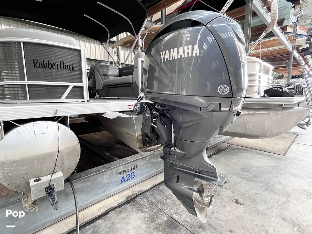 This Bennington is powered by a 150 HP Yamaha 4-stroke engine with a stainless steel prop and low hours.
