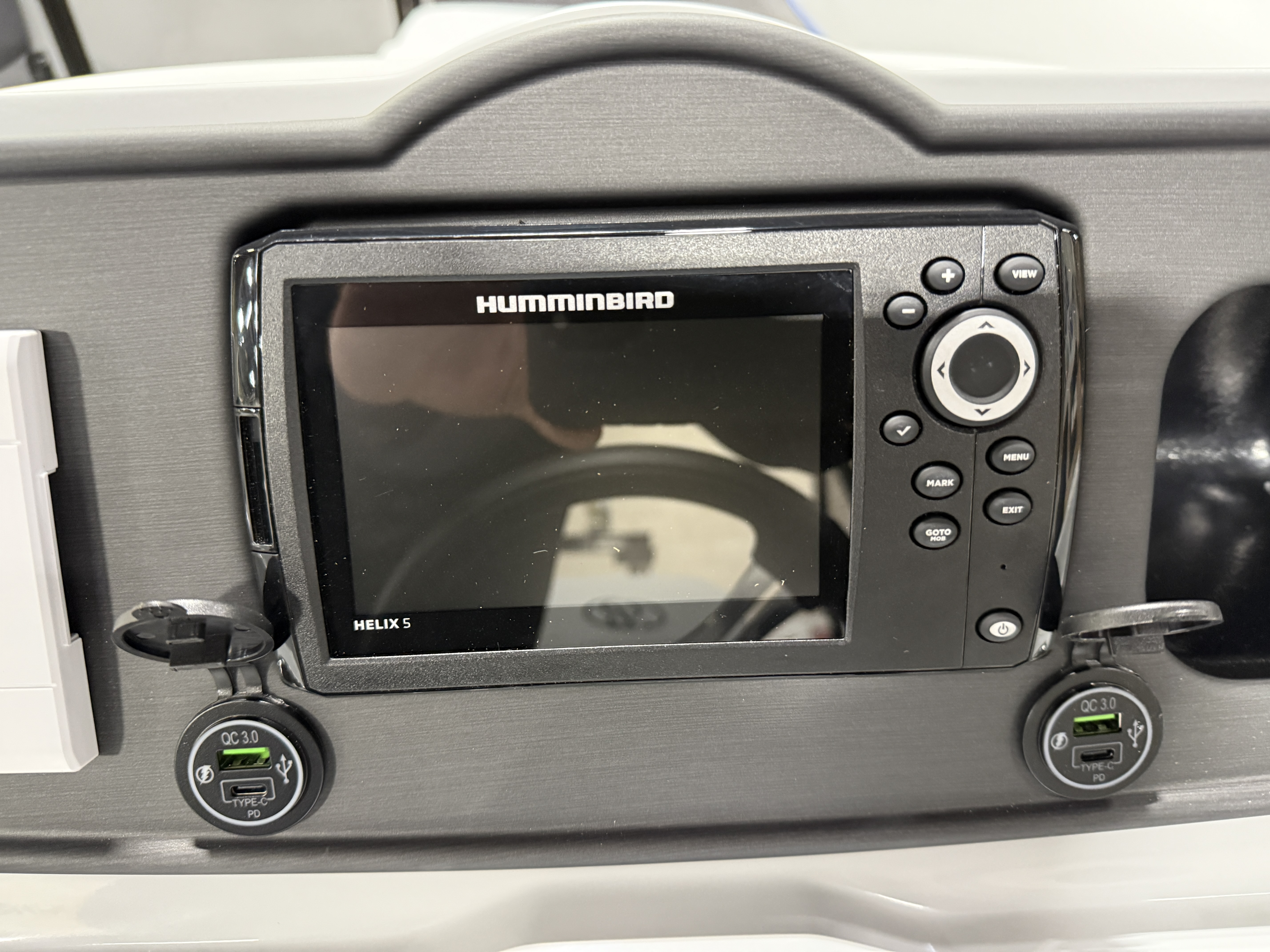 Seagrass Vinyl Flooring, Helix 5 Depth Finder, Windshield, Bluetooth Radio w/4
