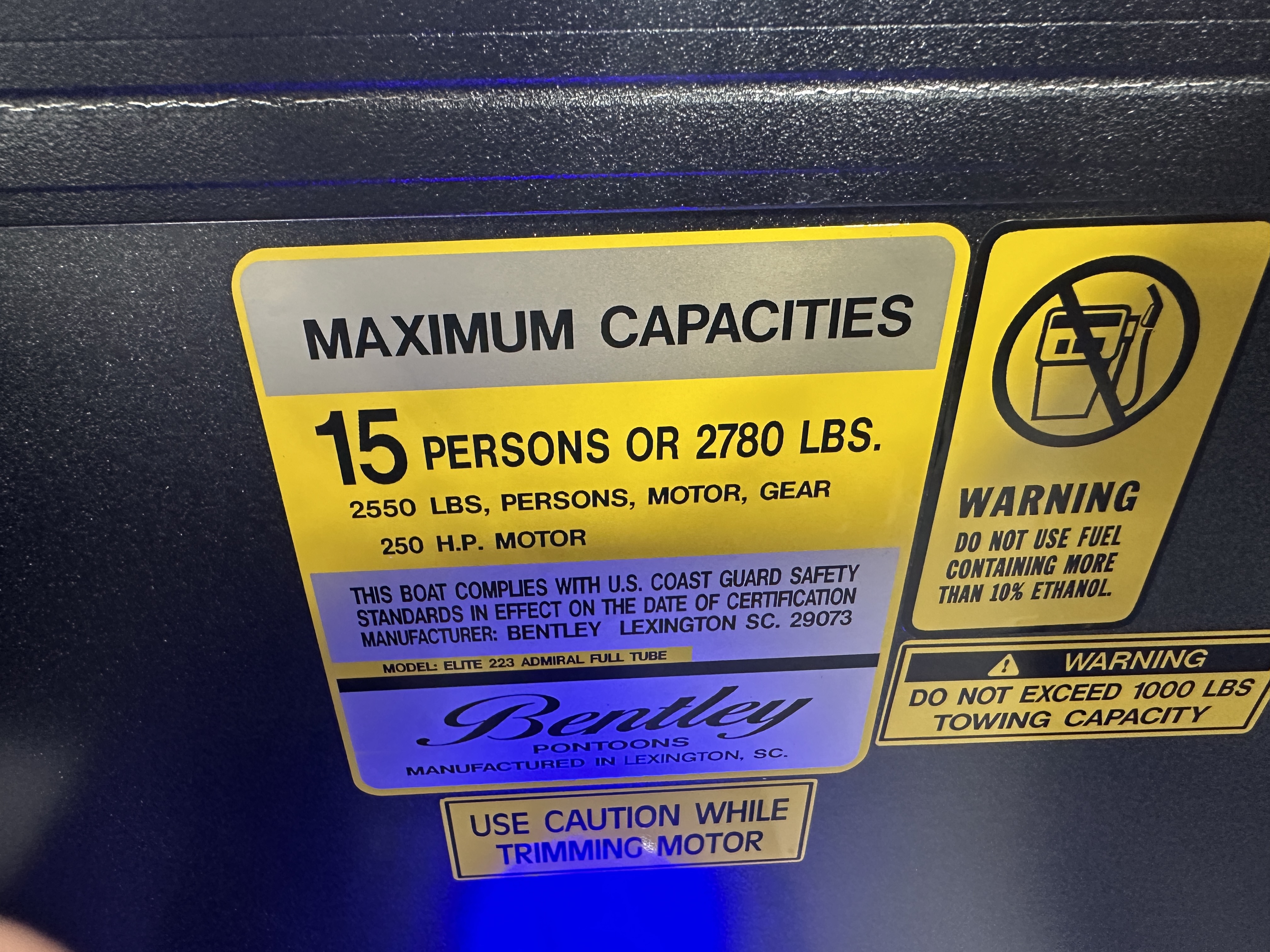 2025 Bentley Elite 223 Admiral Quad Lounge Tritoon Pontoon & Honda 4-Stroke EFI.