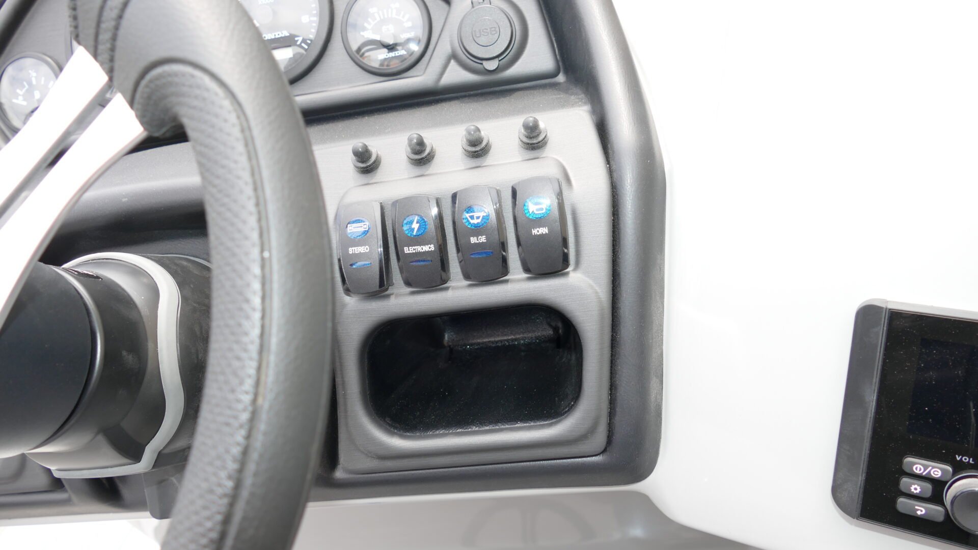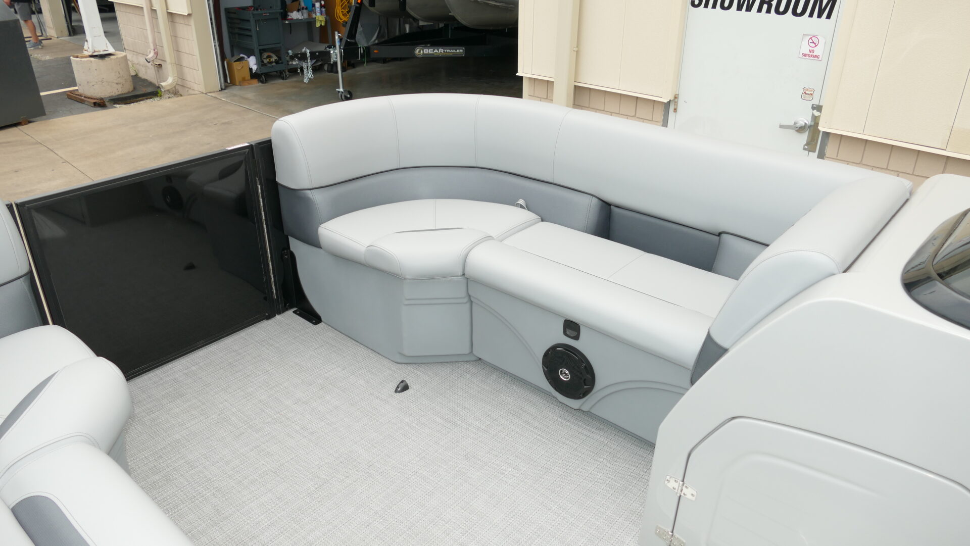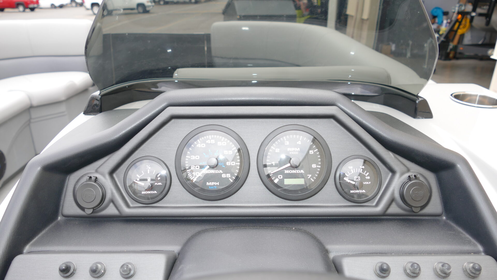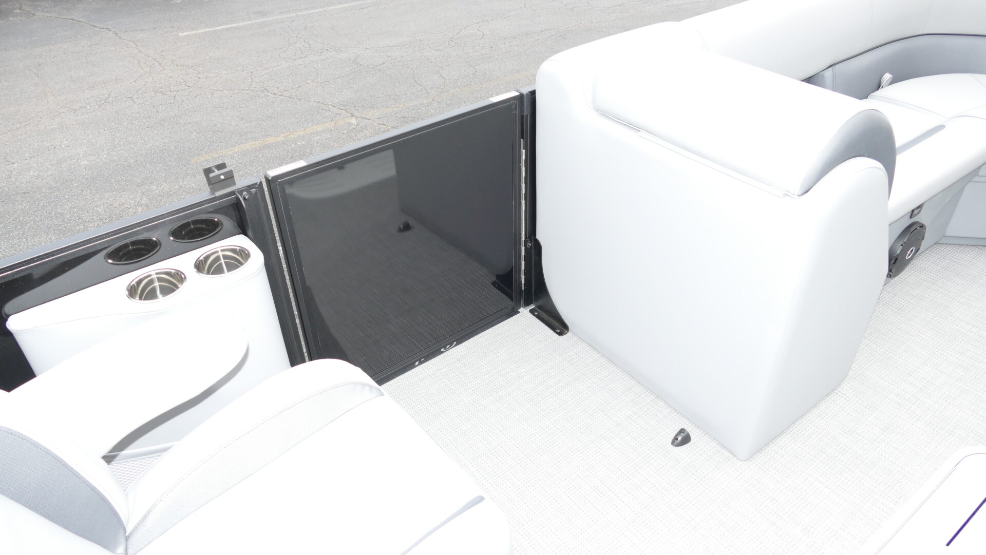 Exterior Colors : Black, Exterior Accent Color: Matte Black, Rail Color : Textured Black, Interior Colors : Gray, Flooring : Gray Seagrass Full Length Flooring. Honda BF150DLRA 4 Stroke, Sport Tri Toon Package: Lifting Strakes, Underskin, And Seastar Hydraulic Tilt Steering, SE Package Includes: Soft Touch Upholstery, Stainless Steel Cup Holders, Integrated Cupholders, In Floor Ski Locker, Ski Tow Bar, Windshield, 10′ Black Bimini Top Frame, Playpen Cover, Black Graphics Package, Aluminum Propeller, Installed Battery Cables With Cutoff, Honda Gauges, 1-24 Series Battery, Fire Extinguisher, Lifetime Plus 5 Year Warranty. Trailer Available For An Additional Cost.