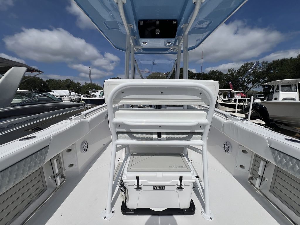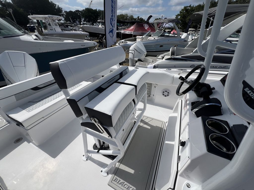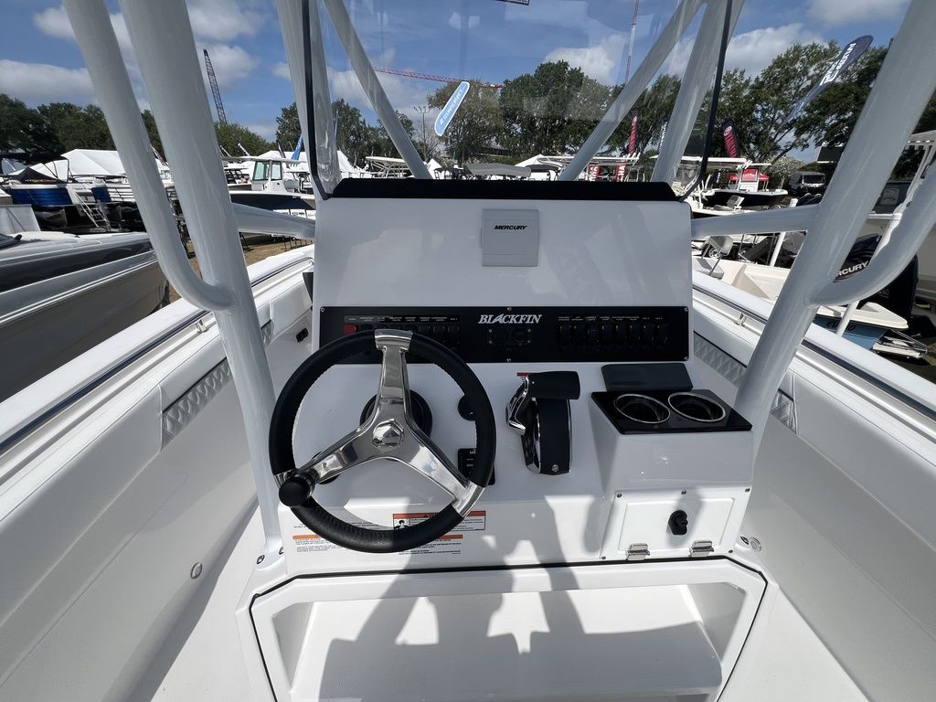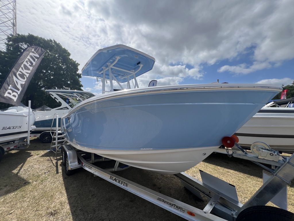 The 2025 Blackfin 222 CC is a sleek, versatile center console built for serious anglers and weekend adventurers alike. Powered by a robust 300hp Mercury outboard, this 22-foot offshore performer delivers thrilling speed, agile handling, and confident performance in a wide range of conditions. With its Deep-V hull design, the 222 CC slices through rough water with stability and comfort, while the integrated fiberglass hardtop and tempered glass windshield offer excellent protection from the elements. Onboard, you'll find premium amenities including a spacious bow seating area with removable cushions, insulated fish boxes, a large livewell, and a deluxe leaning post with rod holders and digital controls enhancing your on-water experience. Whether you're chasing big game or cruising with family, the 2025 Blackfin 222 CC offers rugged capability with luxurious touches in a compact, trailerable package.