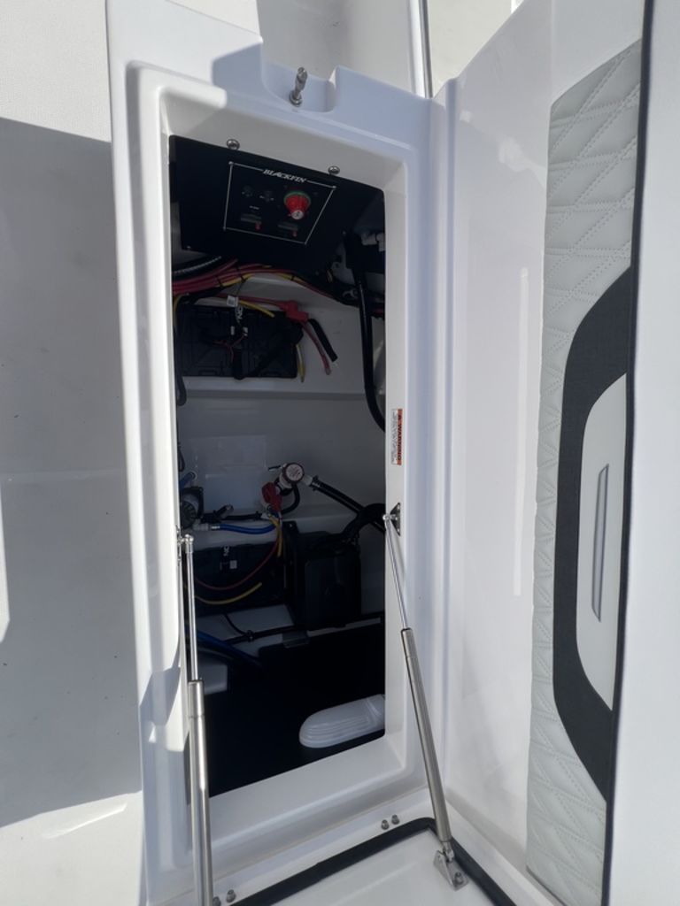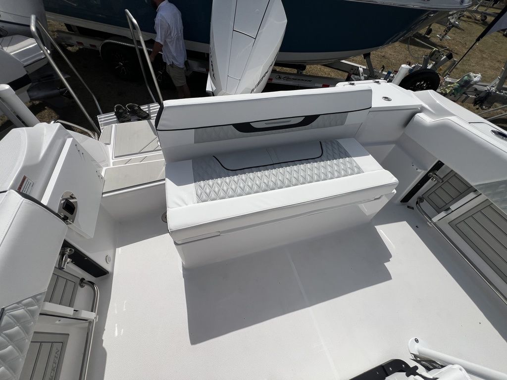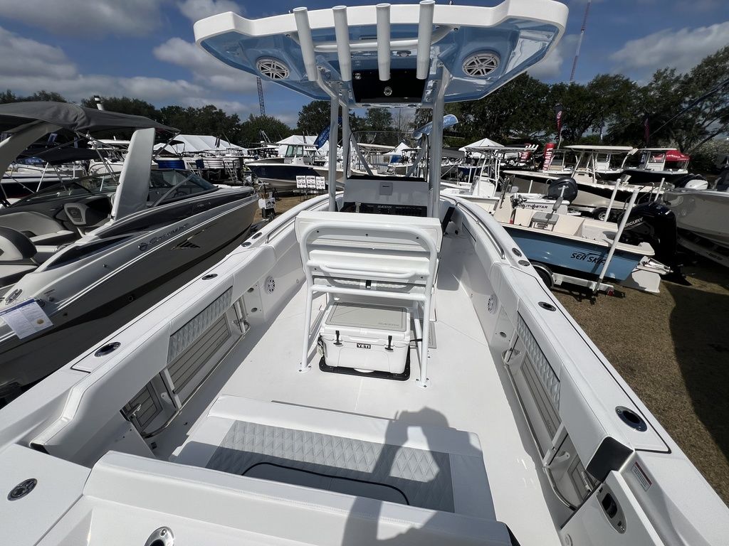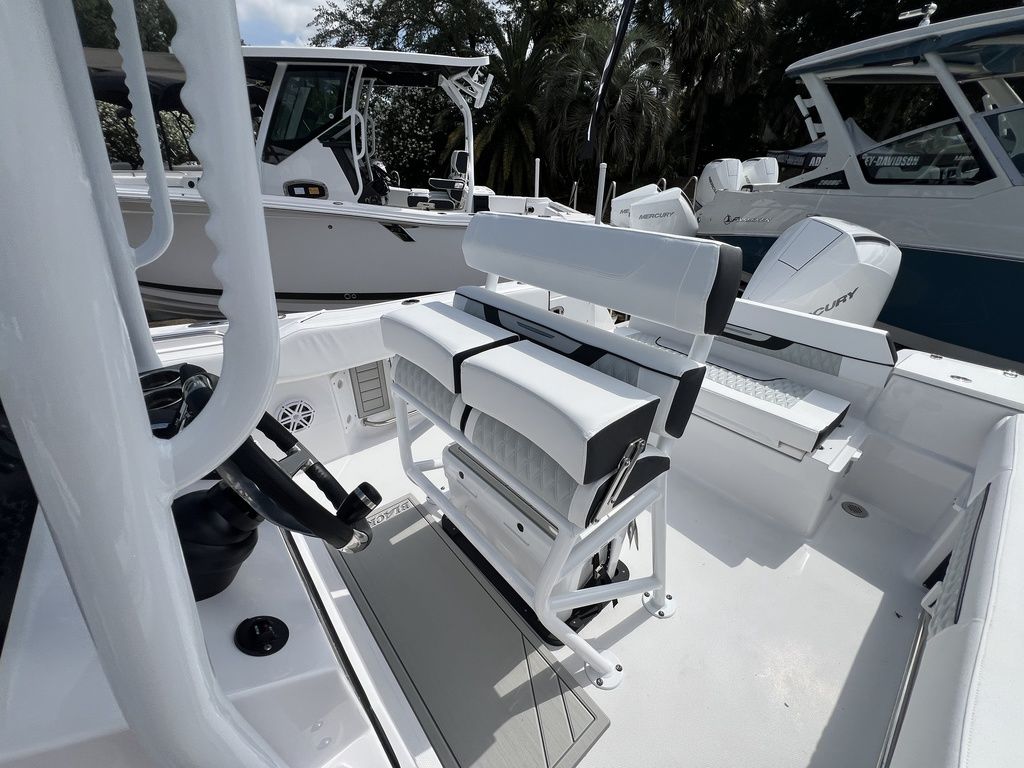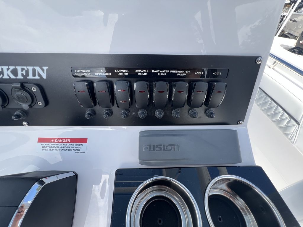 The 2025 Blackfin 222 CC is a sleek, versatile center console built for serious anglers and weekend adventurers alike. Powered by a robust 300hp Mercury outboard, this 22-foot offshore performer delivers thrilling speed, agile handling, and confident performance in a wide range of conditions. With its Deep-V hull design, the 222 CC slices through rough water with stability and comfort, while the integrated fiberglass hardtop and tempered glass windshield offer excellent protection from the elements. Onboard, you'll find premium amenities including a spacious bow seating area with removable cushions, insulated fish boxes, a large livewell, and a deluxe leaning post with rod holders and digital controls enhancing your on-water experience. Whether you're chasing big game or cruising with family, the 2025 Blackfin 222 CC offers rugged capability with luxurious touches in a compact, trailerable package.