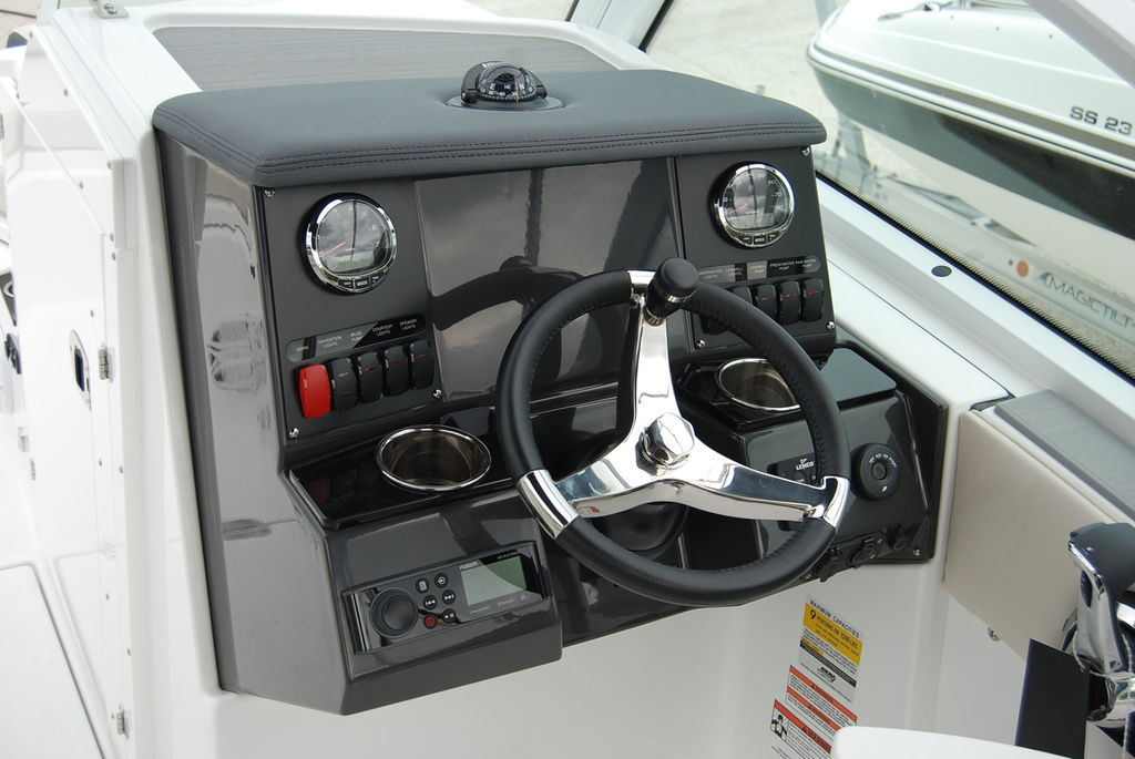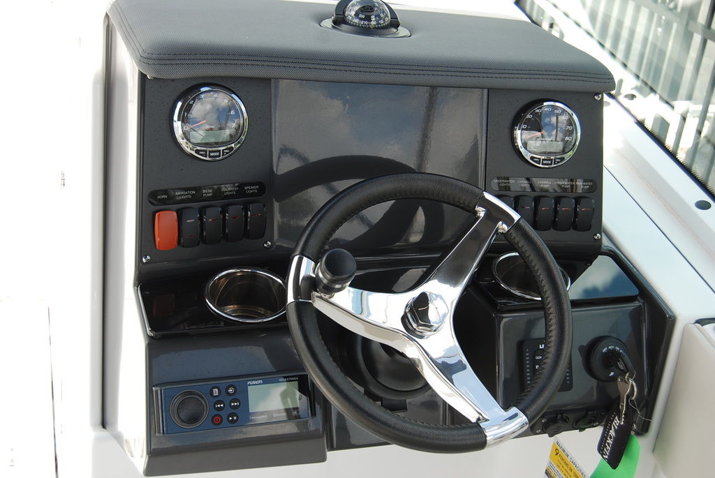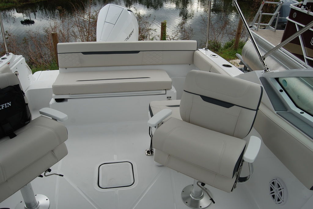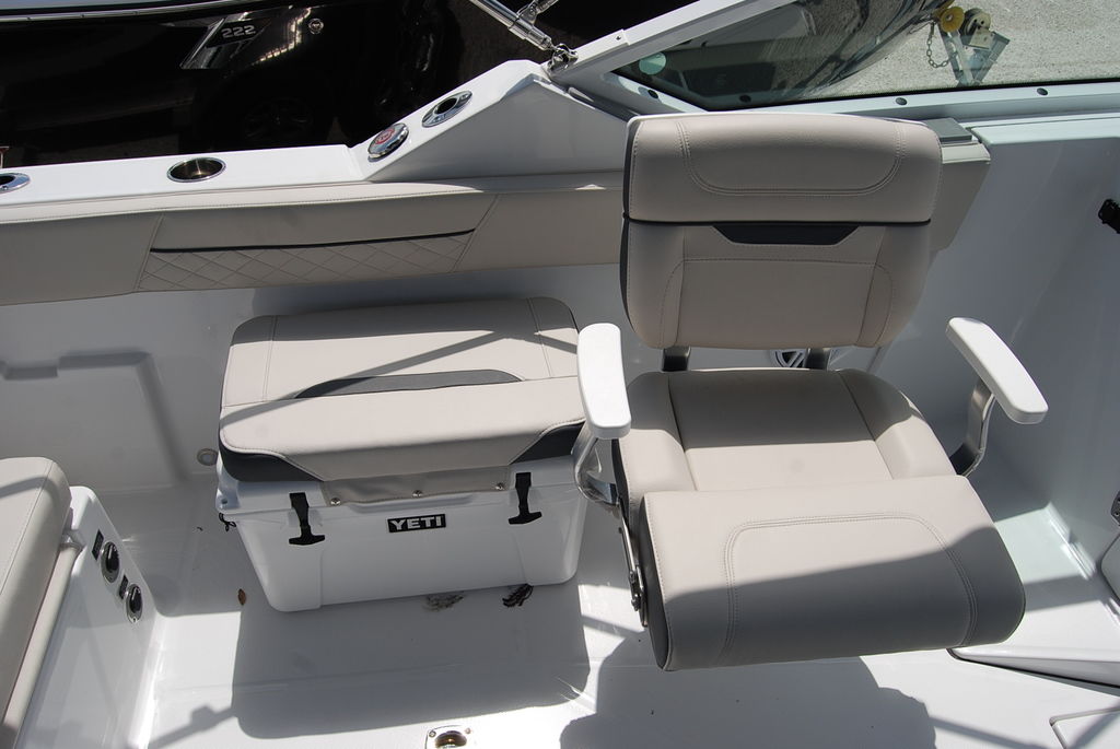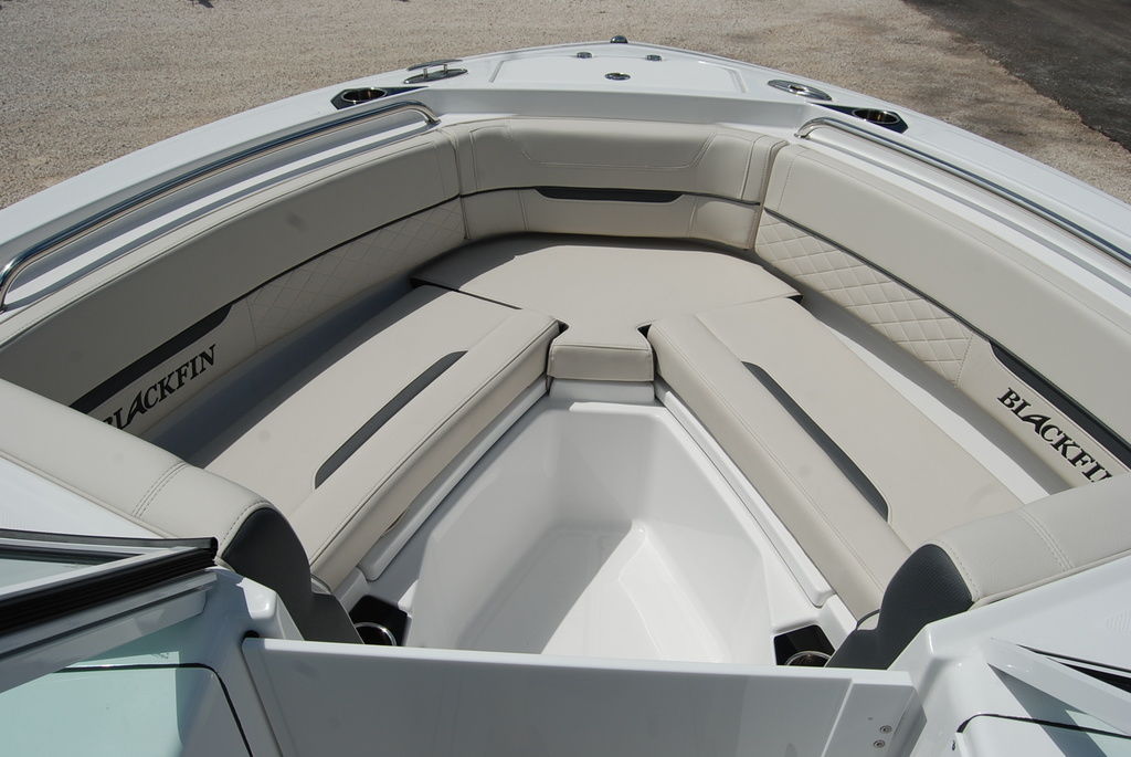 From offshore fishing excursions to cruising the intercoastal waterways, the 232DC has everything you need to enjoy your time on the water to the fullest. The crossover design provides the versatility you need to satisfy all of your on the water needs. Standard features include U-shaped bow seating, custom helm seats, an insulated 18 gallon baitwell, 4 stainless steel gunnel mounted rod holders, 3 transom mounted stainless steel rod holders, a Fusion Satellite Stereo, telescoping & recessed swim ladder, and impressive command center. Blackfins 232DC is the perfect vessel for family boaters or anglers alike. With an LOA of 21’6”, and 8’6” beam, Blackfin’s 232 Dual Console offers the best of both worlds.