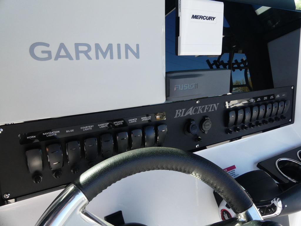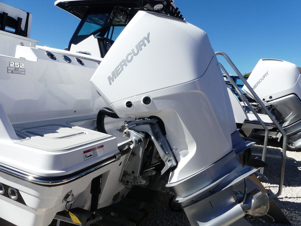 Powering this versatile center console are twin Mercury 200HP Outboard engines, providing reliable performance, excellent fuel efficiency, and strong acceleration. The twin-engine setup gives captains added confidence when running offshore while delivering smooth handling and responsive control. Combined with Blackfin’s advanced hull design, the 252CC provides a stable, comfortable ride whether you’re navigating calm bays or venturing further into open Gulf waters.
