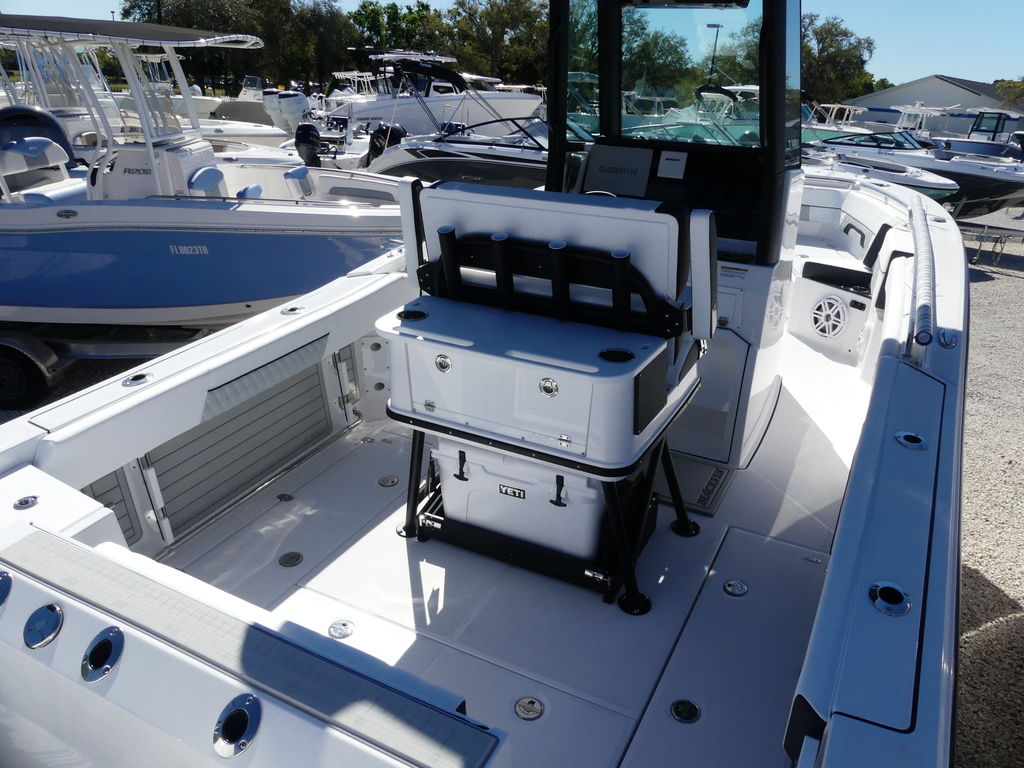 Designed with anglers in mind, the Blackfin 252CC features a spacious deck layout that allows multiple anglers to fish comfortably at the same time. Integrated rod holders, large insulated fish boxes, and well-designed livewell systems ensure that you have everything needed for a productive day on the water. The open cockpit provides ample room for casting and fighting fish, while the elevated helm station offers excellent visibility and modern electronics integration to help you locate and reach your favorite fishing spots.
