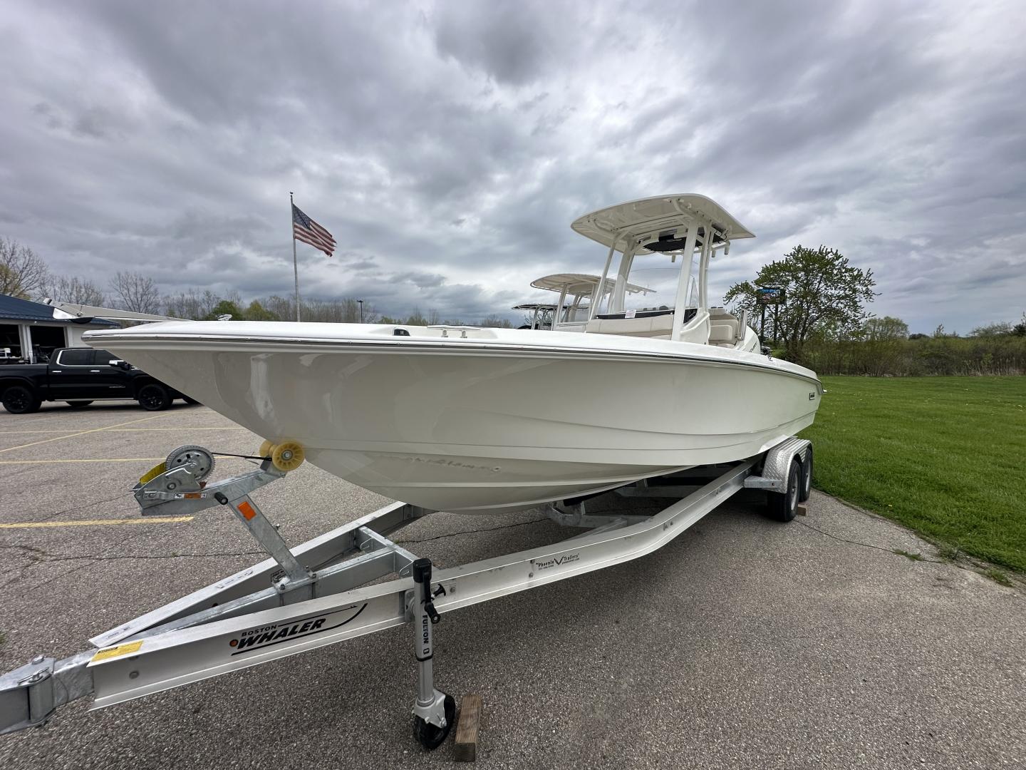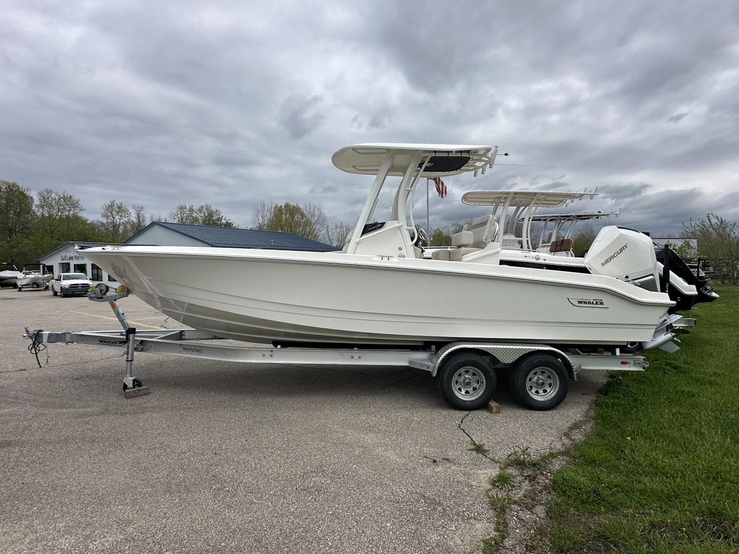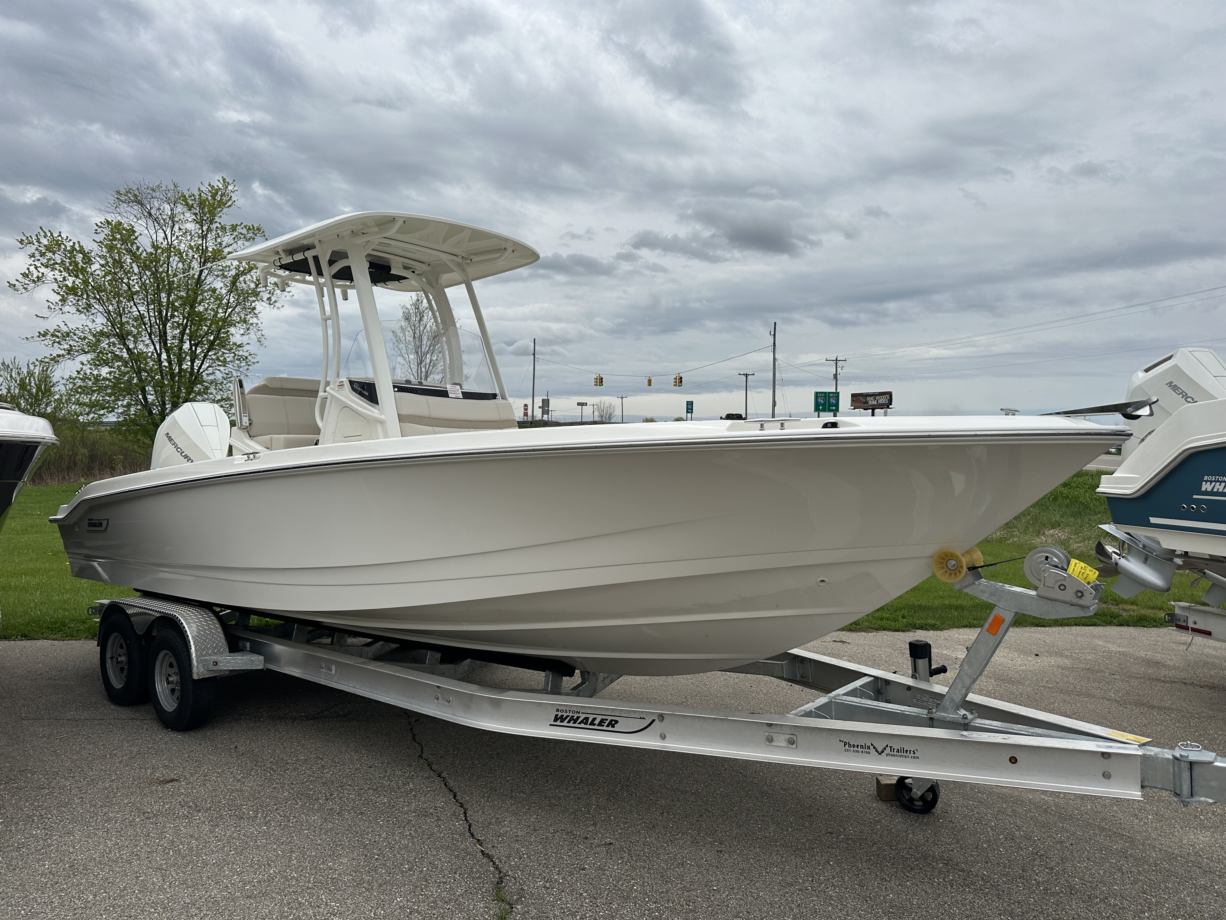 One of our most versatile models, the 250 Dauntless is a perfect synthesis of inshore fishing performance and premium offshore capability. This generously sized 25-ft. bay boat features a roomy center console layout with double forward lounge seats and dual bow seating, and generous storage can be found throughout the interior. Watersports, angling, and cruising amenities abound—and the classic Whaler lines plus your choice of gelcoat colors make this a boat that will turn heads and stand the test of time.Options Include:Mercury 300HP V8Reversible Pilot Seat with LivewellDeluxe Leaning Post with StoragePlumbing PackageElectric Trim TabsFiberglass HardtopRaw Water WashdownStereoSIMRAD VHFSIMRAD 12" NSXVessel View DisplayHelm Seat and Console CoverTrailerGull Lake Marine is West Michigan’s trusted marine dealership. We have over 100 years experience of providing fun on the water. Every boat purchase includes: Free delivery within 30 miles, a thorough on-water orientation by our trained delivery captain and guaranteed service after the sale. Contact our Sales Department today at (616) 303-0402 or at sales@GullLakeMarine.com for more details. Not finding what you’re looking for? You can view our entire inventory at GullLakeMarine.com or call us directly.
