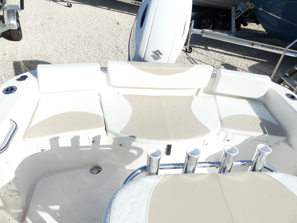 It features plenty of seating and spacious fore and aft casting decks as well as a center console large enough to house an optional porta potty.