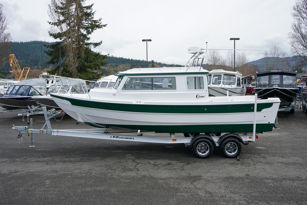 The C-Dory 25' Cruiser is a versatile and rugged vessel designed for extended cruising, fishing, and adventure. Building on the 22' Cruiser, it offers an enclosed head with a shower, a self-bailing cockpit, a larger galley, and a forward-facing companion seat. Welded stainless steel railings enhance safety, while its efficient design supports up to 200HP for smooth performance. With a spacious layout and durable construction, the 25' Cruiser is ideal for boaters seeking comfort and capability on the water.