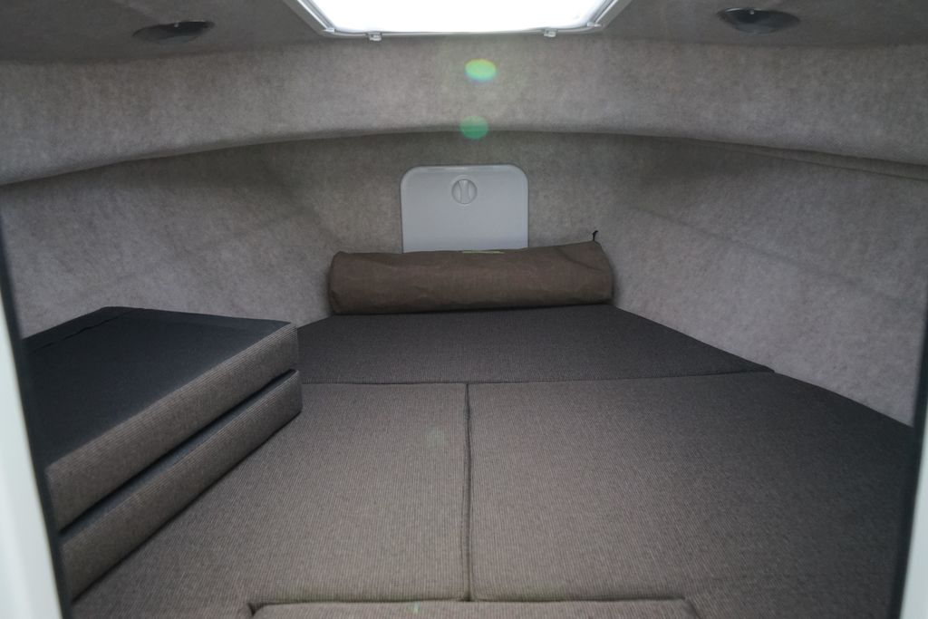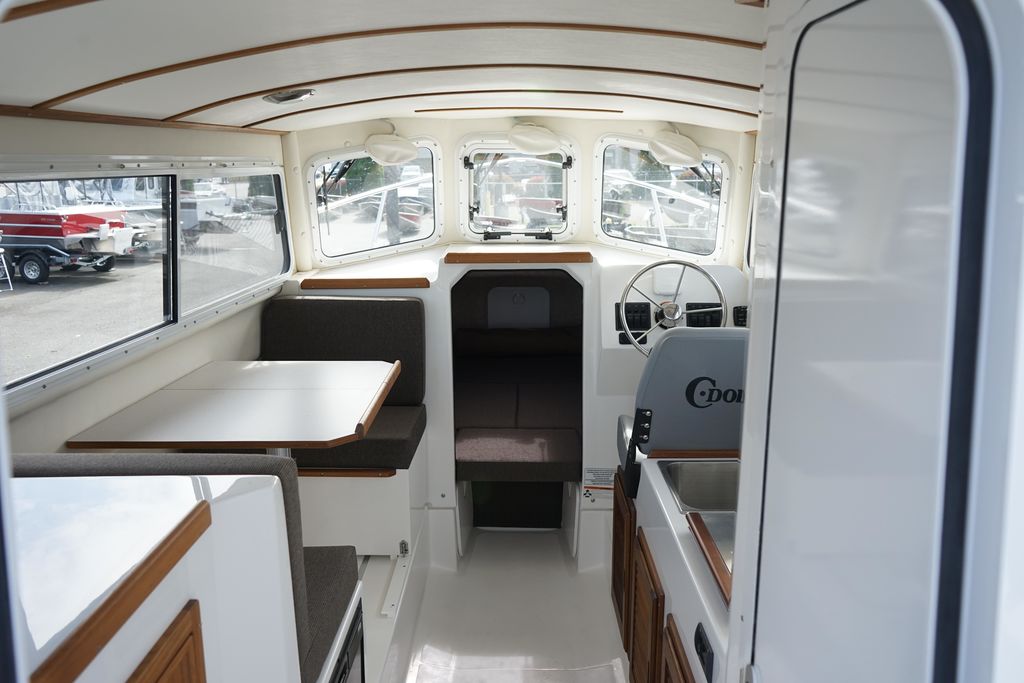 Maneuverability at speed is balanced and predictable, even in heavy seas. The boat holds her course with little effort. The hull’s near flatness toward the stern and reverse chines greatly reduces the rolling motions, making cruising in rough water much more pleasant. Fishermen will love the way the boat tracks at trolling speeds, allowing the focus to remain on the fishing. And with only 8? of draft and a thick bottom she can easily be beached or anchored for beach combing adventures.