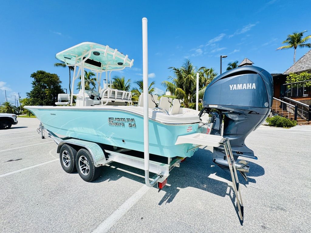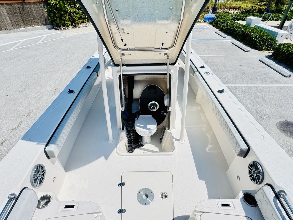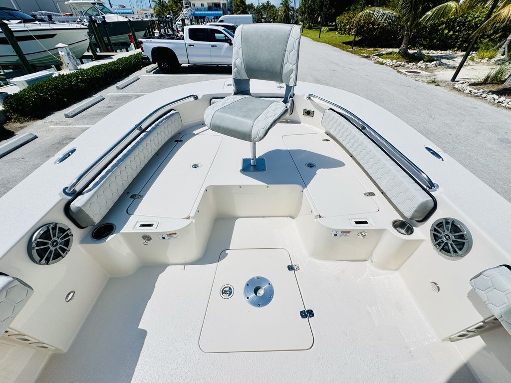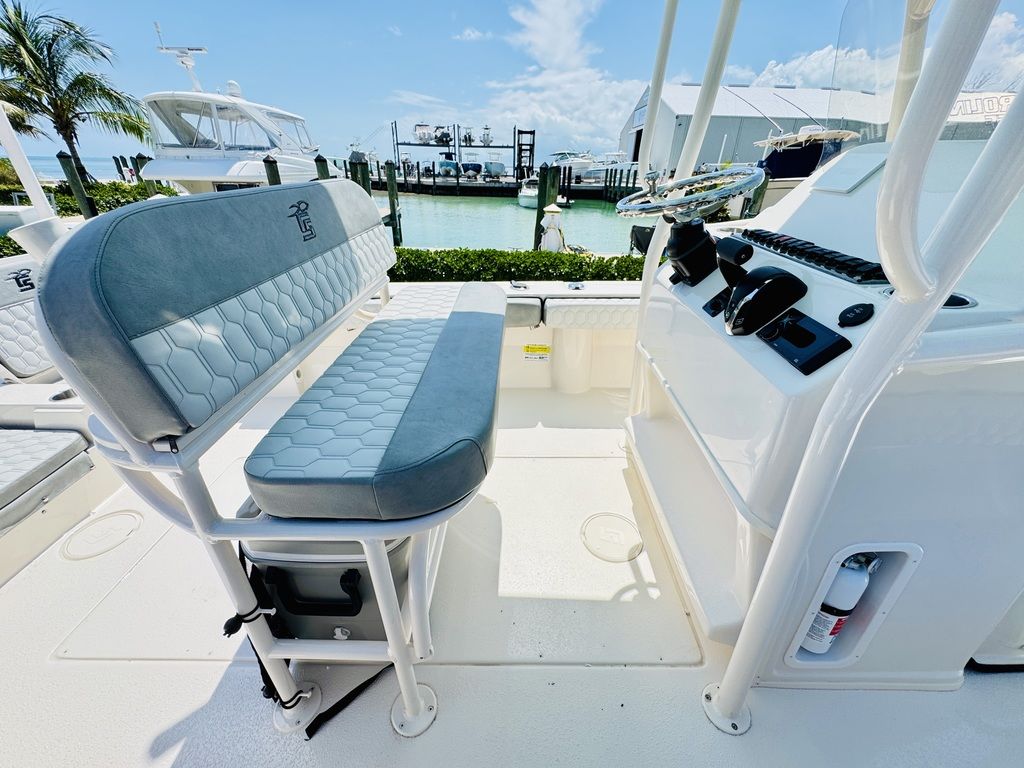 Climb onboard the 2025 model year 24 Ultra Elite – a fantastic boat for family, fishing and fun. One of the many reasons why the 24 Ultra Elite is popular among boaters and charter captains is its family-friendly flip-up fiberglass console with a changing curtain and porta potti. This easy-to-use and innovative design feature provides a head onboard, and can also be used as a changing area or for extra storage. For fishing enthusiasts, the 24 Ultra Elite comes equipped with ample rod storage throughout, a 20-gallon bait well, a removable 70-quart cooler, two deluxe two tone removable fishing seats and a cargo net. Other family-friendly features include a swim platform with a 3-step telescoping ladder, molded-in storage compartments and a host of comfortable onboard seating. CALL 786-883-0072 FOR A PERSONAL APPOINTMENT TO CHECK HER OUT AND SCHEDULE YOUR SEA TRIAL TODAY!
