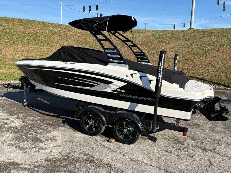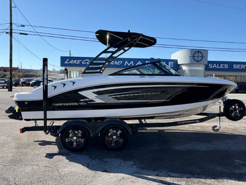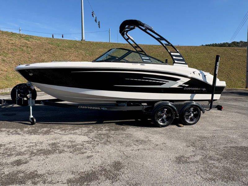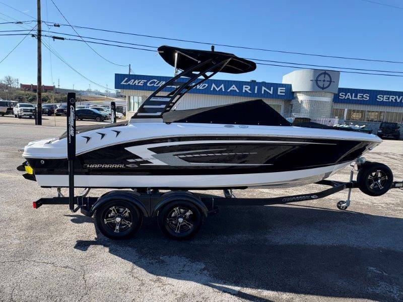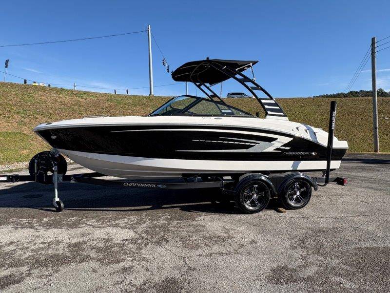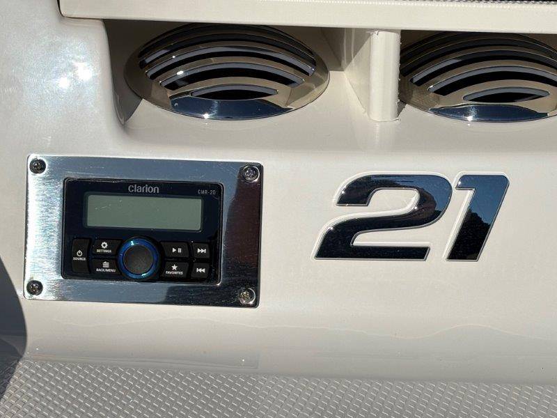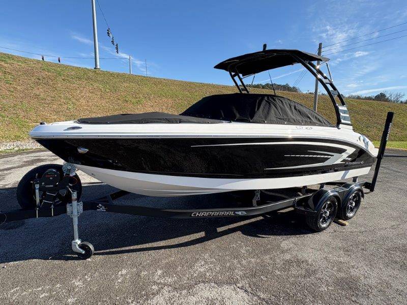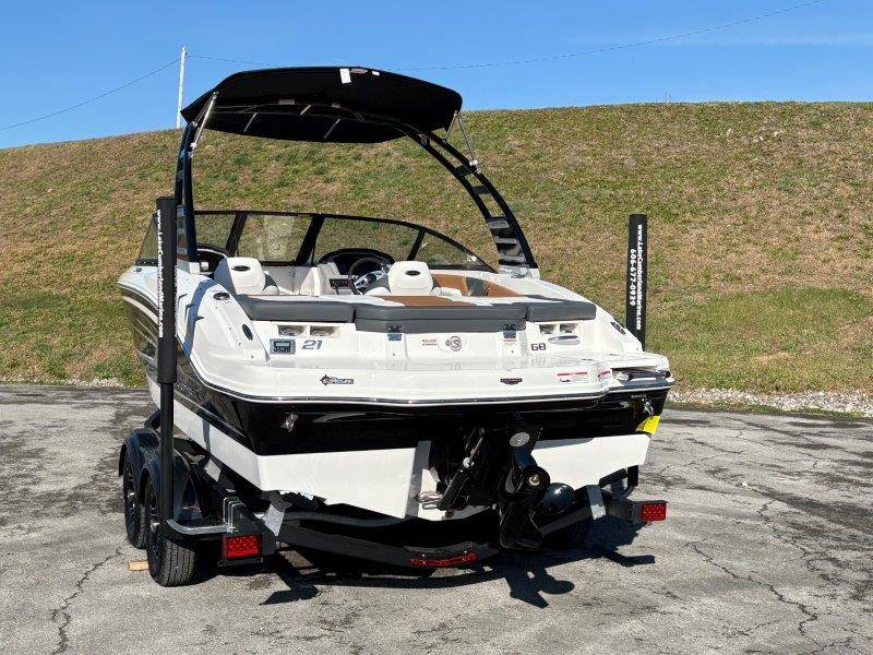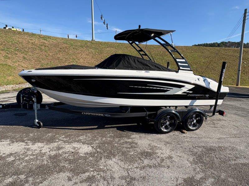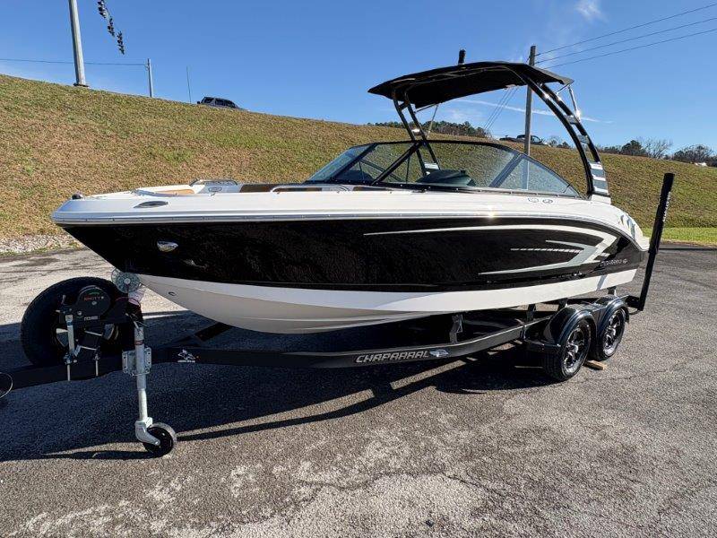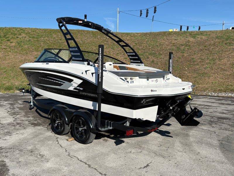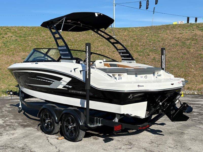 2025 Chaparral 21 SSi OPTIONS · Mercury 4.5L MPI 1.62 Alpha 250 HP · Hull Side Gelcoat - Black · Hull Bottom - White · VX Sport Graphic - White/Alloy Gray · Cockpit Interior - Cayenne White Storm · Standard Canvas - Black · Folding Velocity Arch Tower - Black · Cockpit and Bow Cover · Deluxe Package: Includes Digital Depth Gauge, Bimini Top with Boot or Tower Top Canvas, Ultra Comfort Pedestal Seat with Flip Up Bolster for Helm & Passenger, Port Console Storage Door and Deluxe Badging · Simrad GO9 Touch Multifunction Chartplotter/Fishfinder · Snap-In Seadek Cockpit Flooring - Cayenne · Clarion Transom Remote · Black Bonded Windshield · Anchor - Galvanized · Docking Lights · 5 Year Premium Level Limited Component Warranty · Trailer Upgrade - Black Tandem Axle with Brakes and Aluminum Wheels · Spare Tire Kit - Aluminum Wheel UNIQUE KEY FEATURES • 5-Year Premium Level Limited Component Warranty • Battery On/Off Switch • Built-In Cooler (70 Quart) Under Rear Bench Seat • Deep Freeboard • Dual Walk Thru Transom w/Hinged Chaise Lounge • Extended V-Plane Hull • Forward Anchor Locker • Full Complement of Color Selections - Standard • Full-Height Wraparound Windshield • Glare Resistant Fiberglass Helm Station • Integrated Swim Platform • Lifetime Limited Hull Warranty • NMMA Certified • Powder-Coated Tandem Axle Trailer with Swing-Away Tongue • Premium Envision Marine Silicone Upholstery • Premium Gelcoat and Hydropel Resin • SIMRAD GO7 Touch Chartplotter/Fishfinder with Engine Data and Audio Controls • Stainless Steel Rubrail and Grab Handles • Ultra Comfort Premium Bucket Seats with Flip-up Bolsters • Water Resistant Circuit Breakers • Water Resistant Speakers (4) with Blue LED Lighting