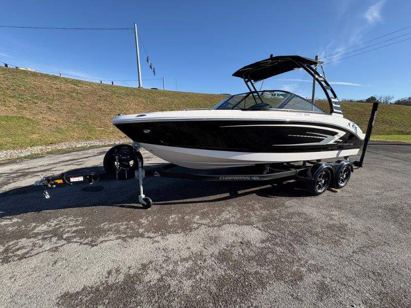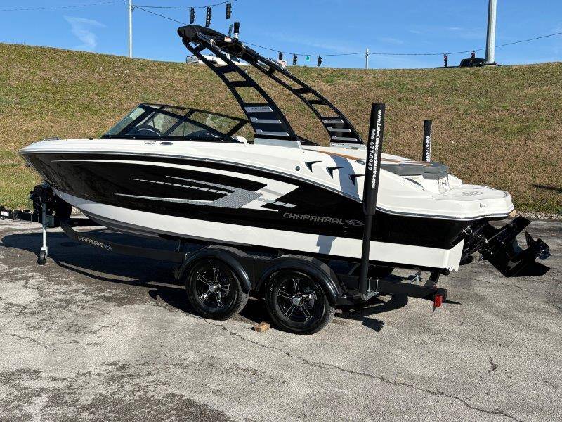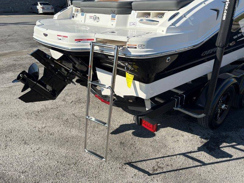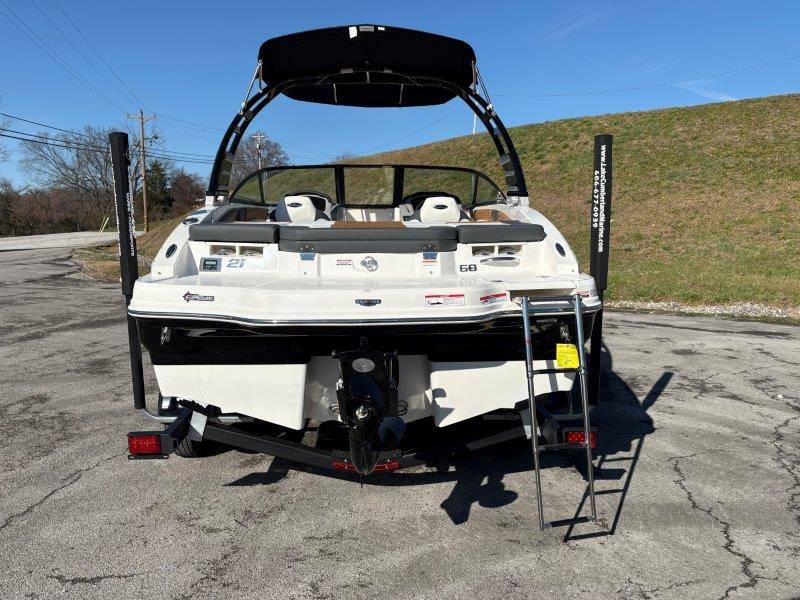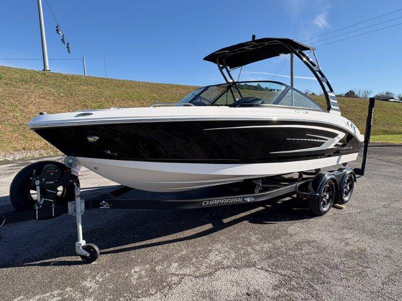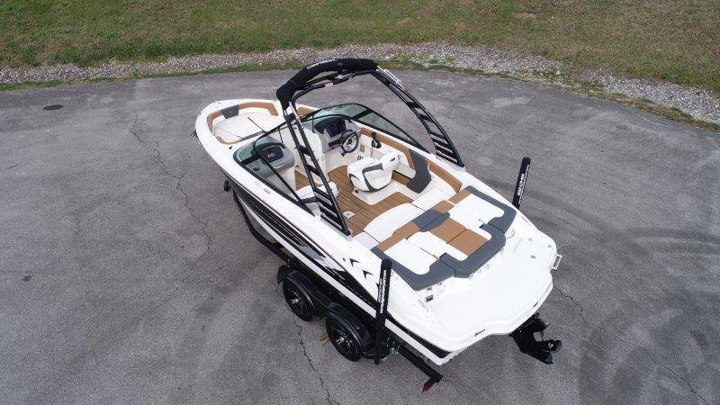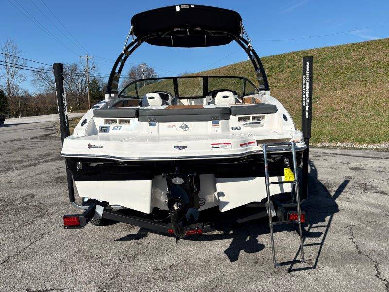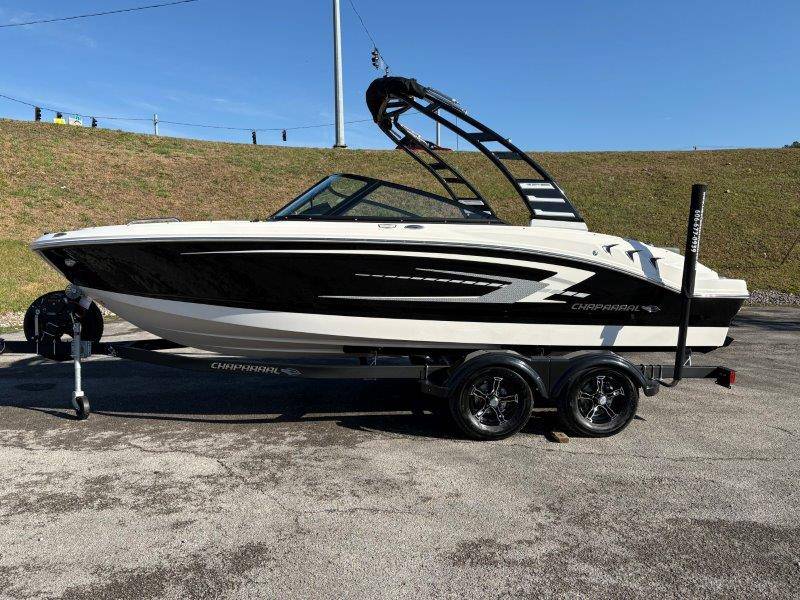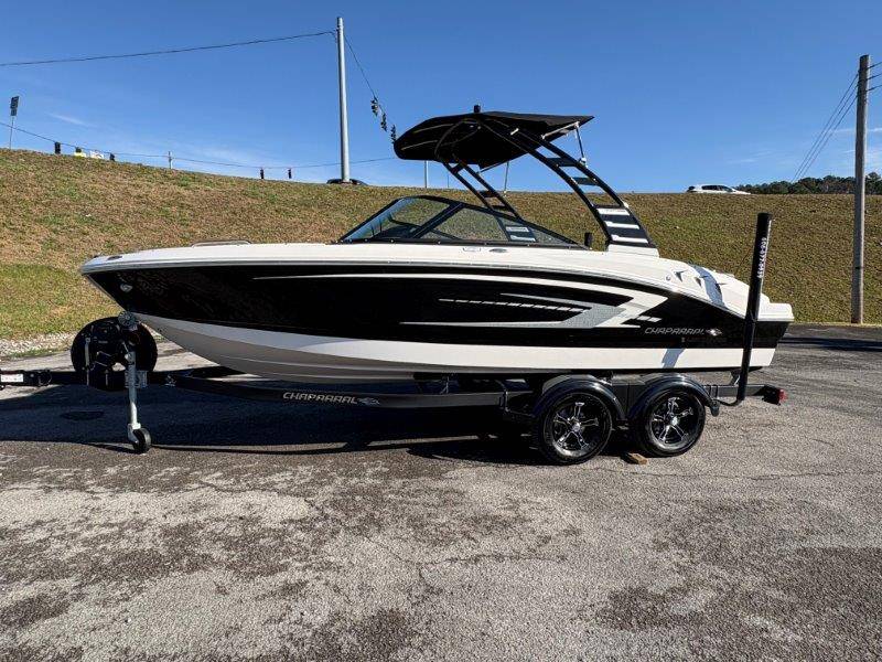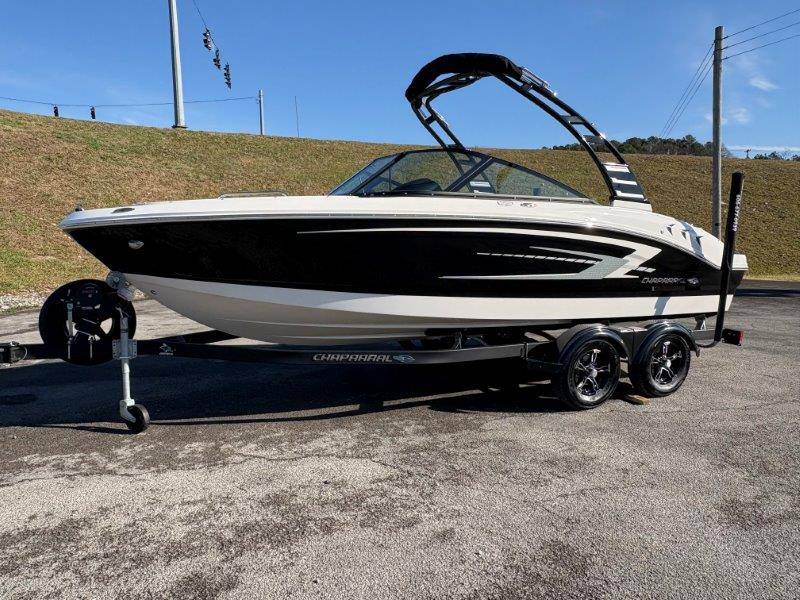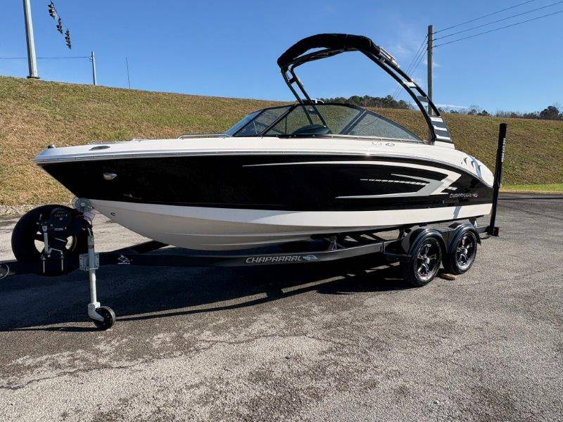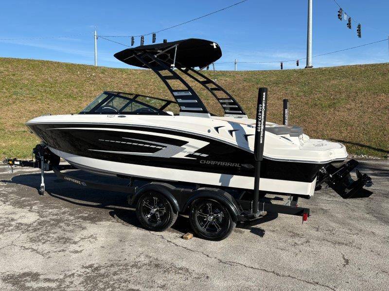 2025 Chaparral 21 SSi OPTIONS · Mercury 4.5L MPI 1.62 Alpha 250 HP · Hull Side Gelcoat - Black · Hull Bottom - White · VX Sport Graphic - White/Alloy Gray · Cockpit Interior - Cayenne White Storm · Standard Canvas - Black · Folding Velocity Arch Tower - Black · Cockpit and Bow Cover · Deluxe Package: Includes Digital Depth Gauge, Bimini Top with Boot or Tower Top Canvas, Ultra Comfort Pedestal Seat with Flip Up Bolster for Helm & Passenger, Port Console Storage Door and Deluxe Badging · Simrad GO9 Touch Multifunction Chartplotter/Fishfinder · Snap-In Seadek Cockpit Flooring - Cayenne · Clarion Transom Remote · Black Bonded Windshield · Anchor - Galvanized · Docking Lights · 5 Year Premium Level Limited Component Warranty · Trailer Upgrade - Black Tandem Axle with Brakes and Aluminum Wheels · Spare Tire Kit - Aluminum Wheel UNIQUE KEY FEATURES • 5-Year Premium Level Limited Component Warranty • Battery On/Off Switch • Built-In Cooler (70 Quart) Under Rear Bench Seat • Deep Freeboard • Dual Walk Thru Transom w/Hinged Chaise Lounge • Extended V-Plane Hull • Forward Anchor Locker • Full Complement of Color Selections - Standard • Full-Height Wraparound Windshield • Glare Resistant Fiberglass Helm Station • Integrated Swim Platform • Lifetime Limited Hull Warranty • NMMA Certified • Powder-Coated Tandem Axle Trailer with Swing-Away Tongue • Premium Envision Marine Silicone Upholstery • Premium Gelcoat and Hydropel Resin • SIMRAD GO7 Touch Chartplotter/Fishfinder with Engine Data and Audio Controls • Stainless Steel Rubrail and Grab Handles • Ultra Comfort Premium Bucket Seats with Flip-up Bolsters • Water Resistant Circuit Breakers • Water Resistant Speakers (4) with Blue LED Lighting