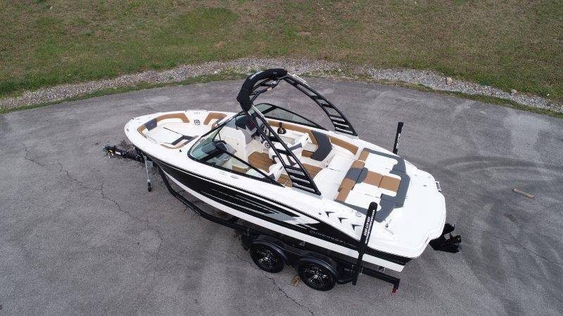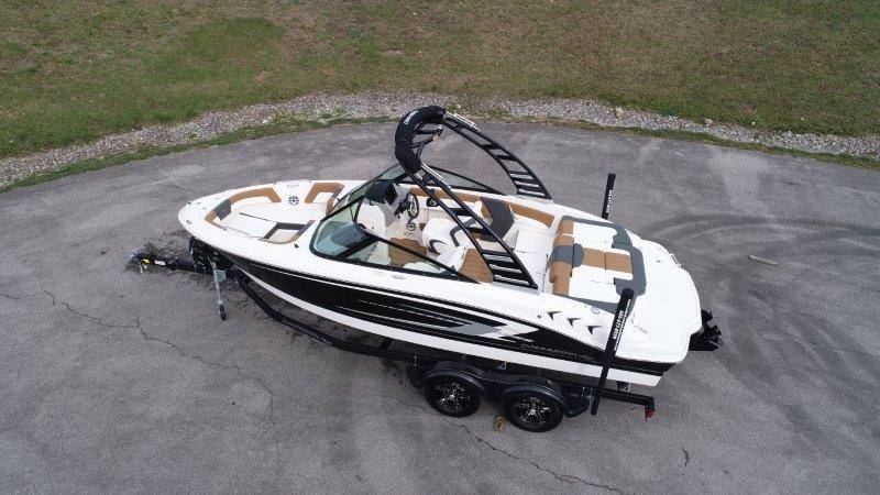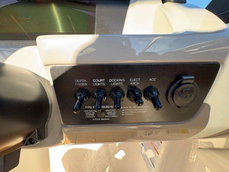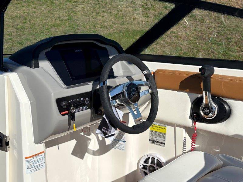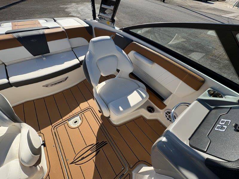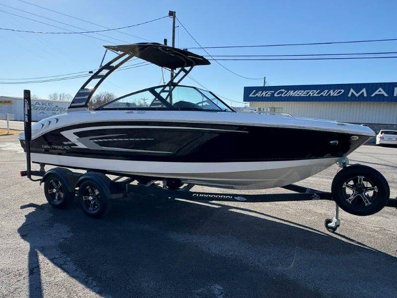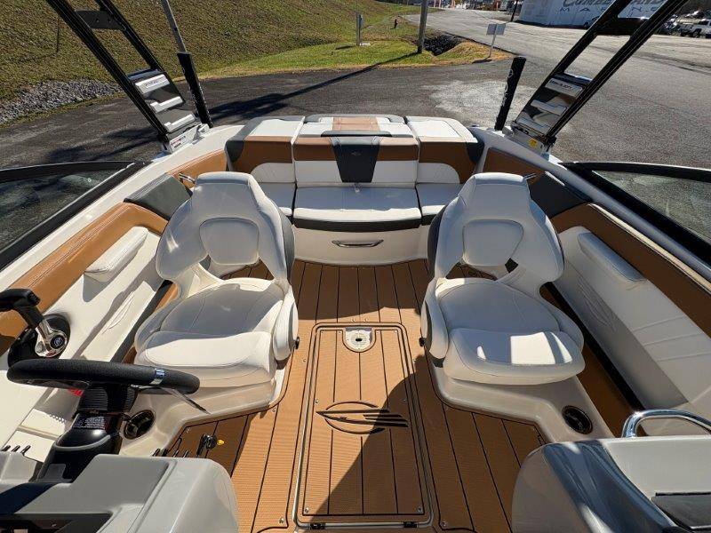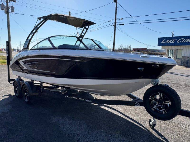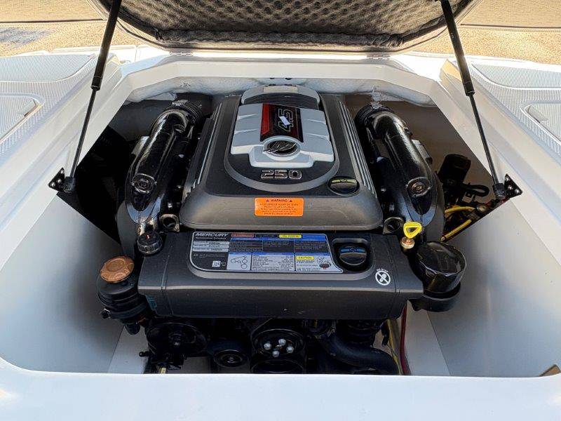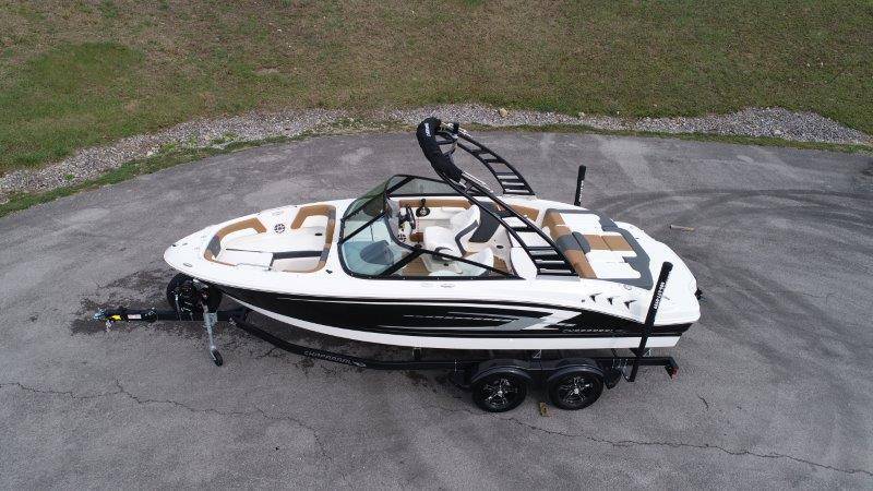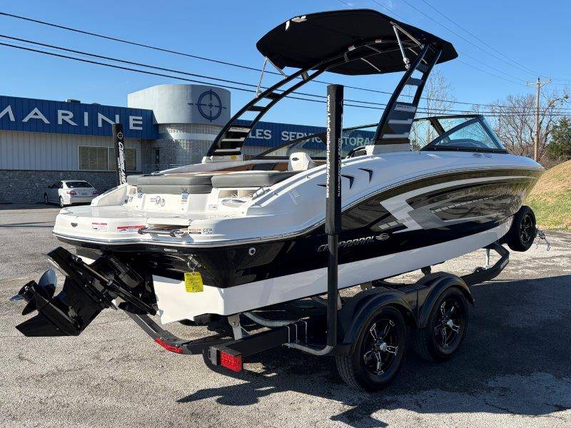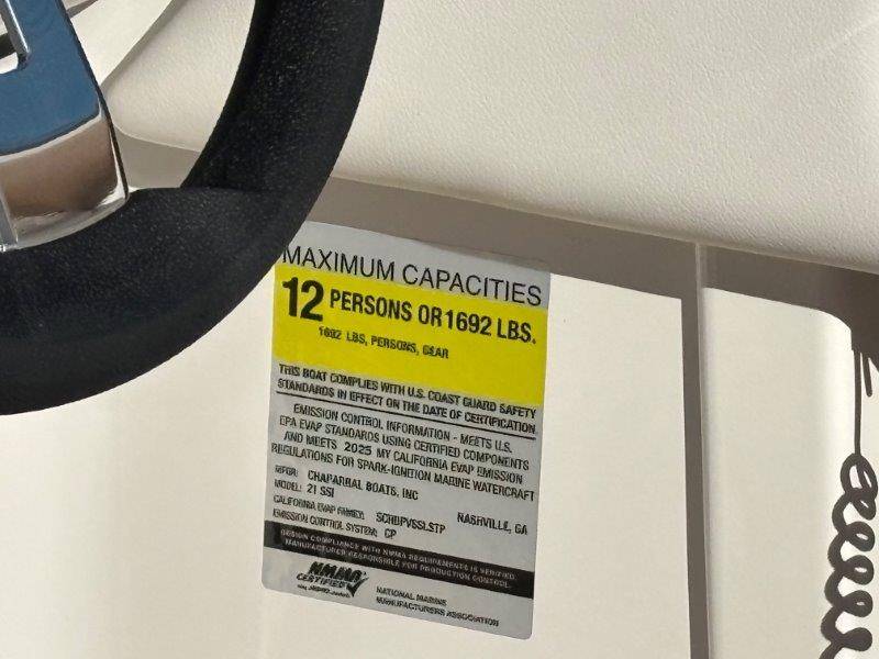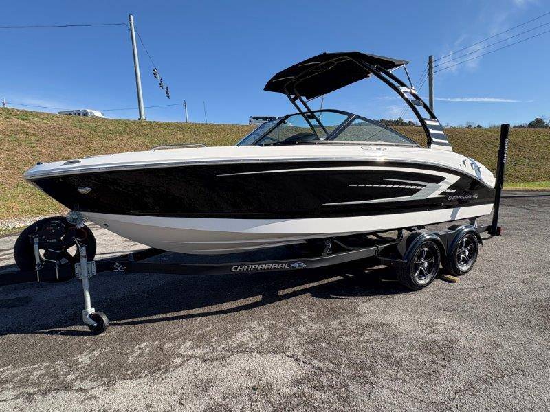 2025 Chaparral 21 SSi OPTIONS · Mercury 4.5L MPI 1.62 Alpha 250 HP · Hull Side Gelcoat - Black · Hull Bottom - White · VX Sport Graphic - White/Alloy Gray · Cockpit Interior - Cayenne White Storm · Standard Canvas - Black · Folding Velocity Arch Tower - Black · Cockpit and Bow Cover · Deluxe Package: Includes Digital Depth Gauge, Bimini Top with Boot or Tower Top Canvas, Ultra Comfort Pedestal Seat with Flip Up Bolster for Helm & Passenger, Port Console Storage Door and Deluxe Badging · Simrad GO9 Touch Multifunction Chartplotter/Fishfinder · Snap-In Seadek Cockpit Flooring - Cayenne · Clarion Transom Remote · Black Bonded Windshield · Anchor - Galvanized · Docking Lights · 5 Year Premium Level Limited Component Warranty · Trailer Upgrade - Black Tandem Axle with Brakes and Aluminum Wheels · Spare Tire Kit - Aluminum Wheel UNIQUE KEY FEATURES • 5-Year Premium Level Limited Component Warranty • Battery On/Off Switch • Built-In Cooler (70 Quart) Under Rear Bench Seat • Deep Freeboard • Dual Walk Thru Transom w/Hinged Chaise Lounge • Extended V-Plane Hull • Forward Anchor Locker • Full Complement of Color Selections - Standard • Full-Height Wraparound Windshield • Glare Resistant Fiberglass Helm Station • Integrated Swim Platform • Lifetime Limited Hull Warranty • NMMA Certified • Powder-Coated Tandem Axle Trailer with Swing-Away Tongue • Premium Envision Marine Silicone Upholstery • Premium Gelcoat and Hydropel Resin • SIMRAD GO7 Touch Chartplotter/Fishfinder with Engine Data and Audio Controls • Stainless Steel Rubrail and Grab Handles • Ultra Comfort Premium Bucket Seats with Flip-up Bolsters • Water Resistant Circuit Breakers • Water Resistant Speakers (4) with Blue LED Lighting