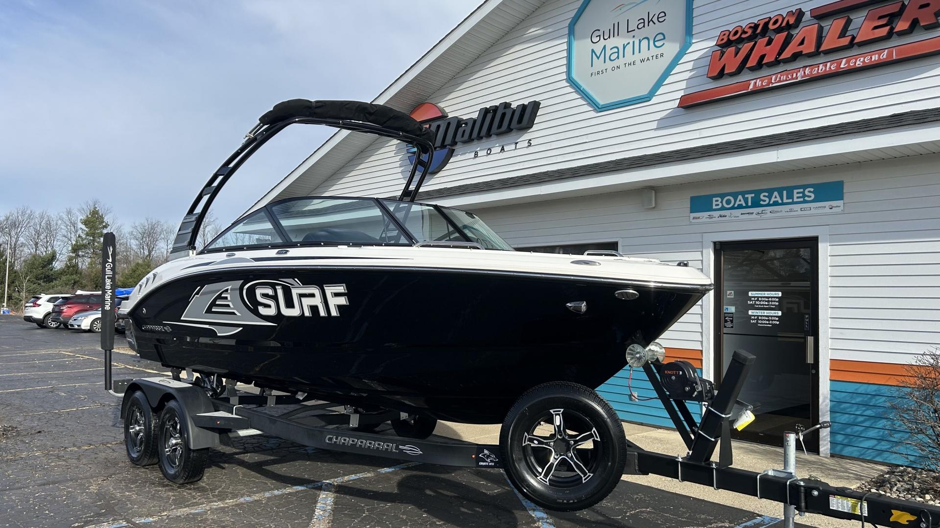 2025 Chaparral 21 Surf The 2025 Chaparral 21 Surf is the ultimate compact surf boat, blending advanced technology with premium comfort for unforgettable days on the water. Powered by the Mercury 4.5L DTS 250HP Bravo 4 engine and featuring the innovative Malibu Surf Gate, this boat delivers effortless wave customization and smooth handling. With the addition of the extended swim platform, you’ll enjoy convenient access to the water for all your surfing adventures. Notable Options Include:Mercury 4.5L DTS 250HP Bravo 4 EngineVelocity Folding Arch TowerMalibu Surf GateWakesurfing HullBallast BagSIMRAD GO9 Touchscreen with Surf ControlsExtended Swim PlatformPremium Silicone UpholsterySnap-In SeaDek FlooringBow & Cockpit CoversCoyote Tandem-Axle Trailer Additional Details: The 2025 Chaparral 21 Surf offers cutting-edge surf technology like Malibu Surf Gate for customizable waves and ballast bag for enhanced wake performance. The SIMRAD GO9 touchscreen with surf controls simplifies operation, allowing you to adjust settings with ease. Premium silicone upholstery and snap-in SeaDek flooring ensure a comfortable and stylish interior, while the extended swim platform provides ample space for relaxation and easy water access. Why Choose Gull Lake Marine? Gull Lake Marine is West Michigan’s trusted marine dealership with over 100 years of experience providing fun on the water. Every boat purchase includes:Free delivery within 15 milesOn-water orientation with our trained Delivery CaptainFree watersports lesson to get you started For more details, visit GullLakeMarine.com, or email us at sales@gulllakemarine.com.