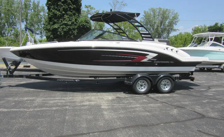 In Stock Now See the Chaparral 23 SSi, our best-selling 23-footer! This 23 SSi is superbly equipped with Mercury 300 HP Bravo 3 MPI power and many Chaparral extras. Trailer included, too! This hearty runabout will trailer to your dream destinations and is versatile enough for Lake Michigan or inland lake boating.