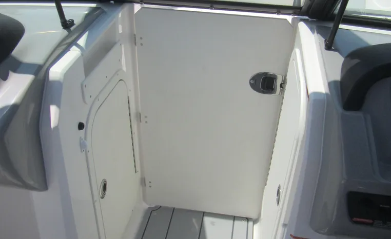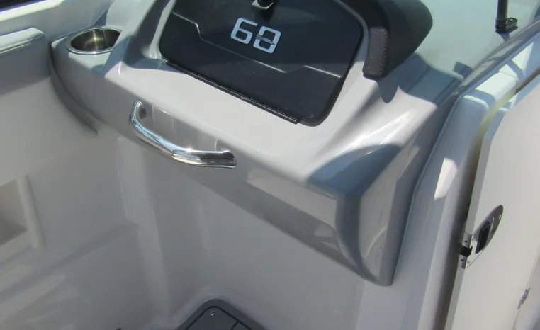 STANDARD - DELUXE PACKAGE: Includes Digital Depth Gauge, Tower Top Canvas, Ultra Comfort Pedestal Seat with Flip Up Bolster for Helm and Passenger, Port Console Storage Door and Deluxe Badging