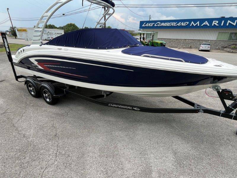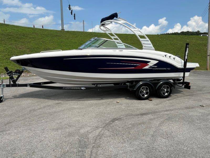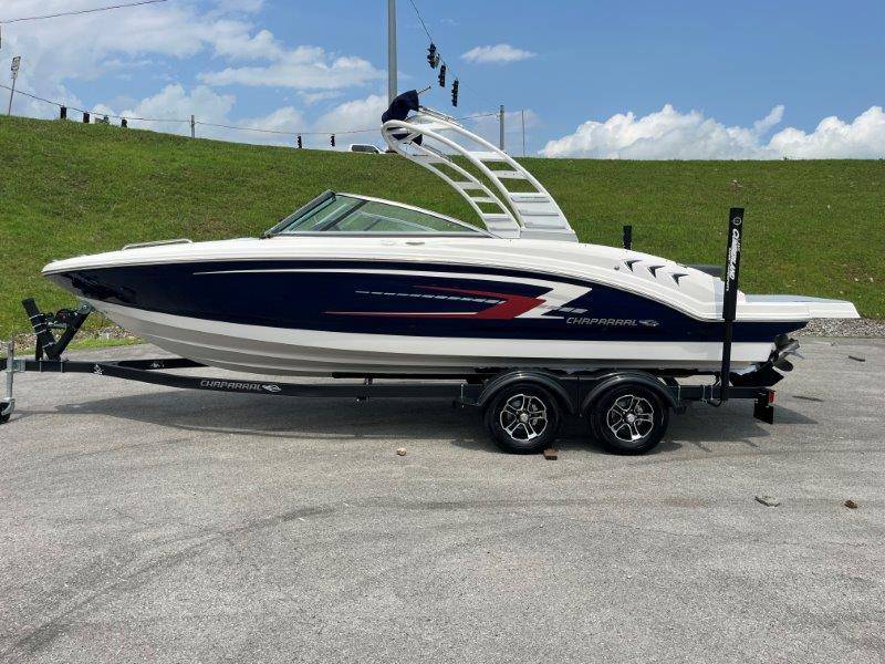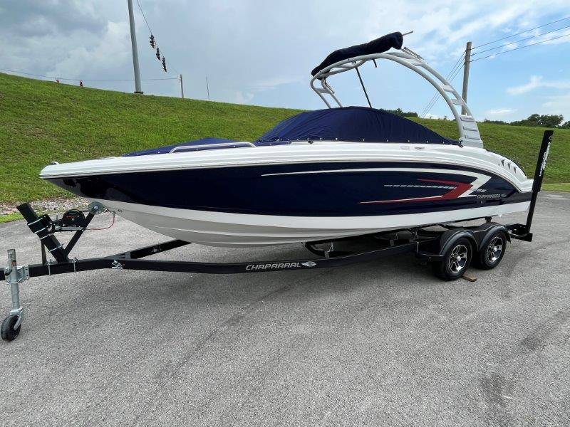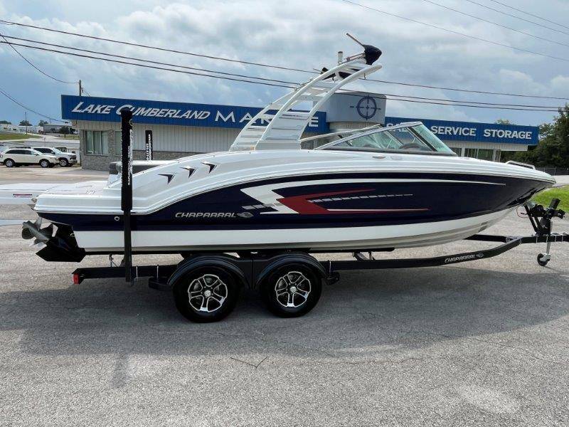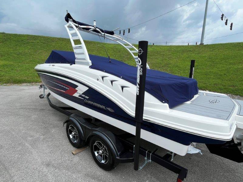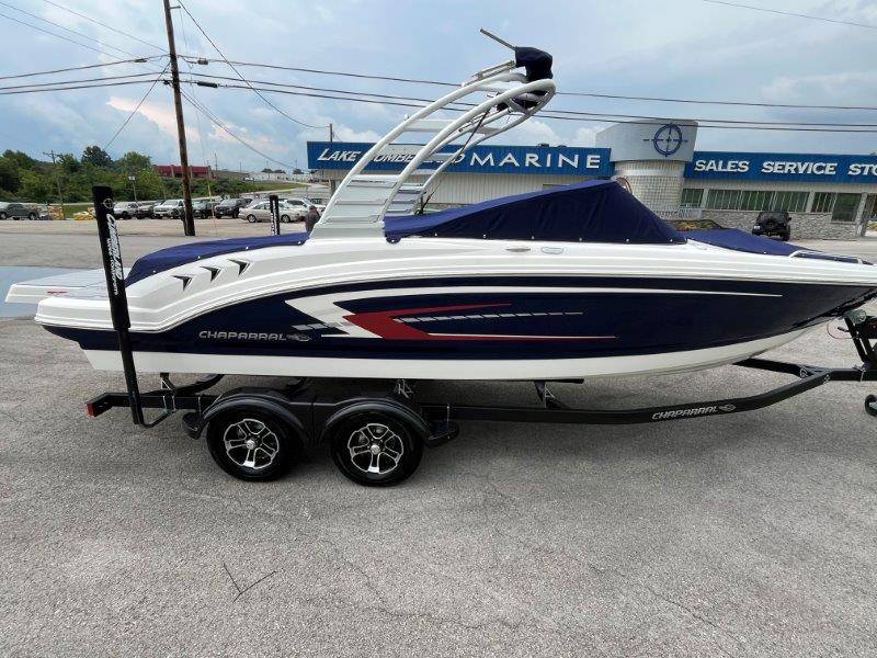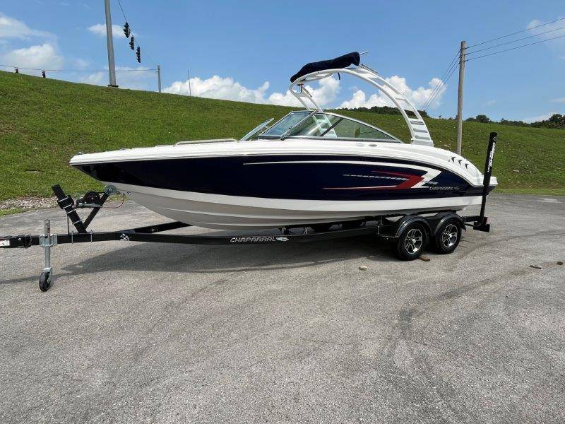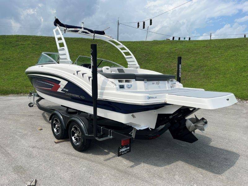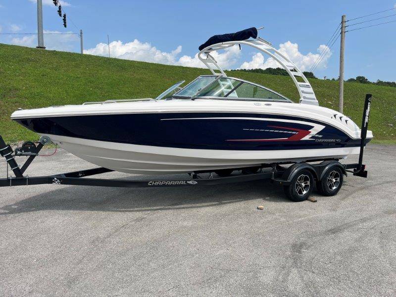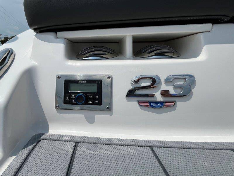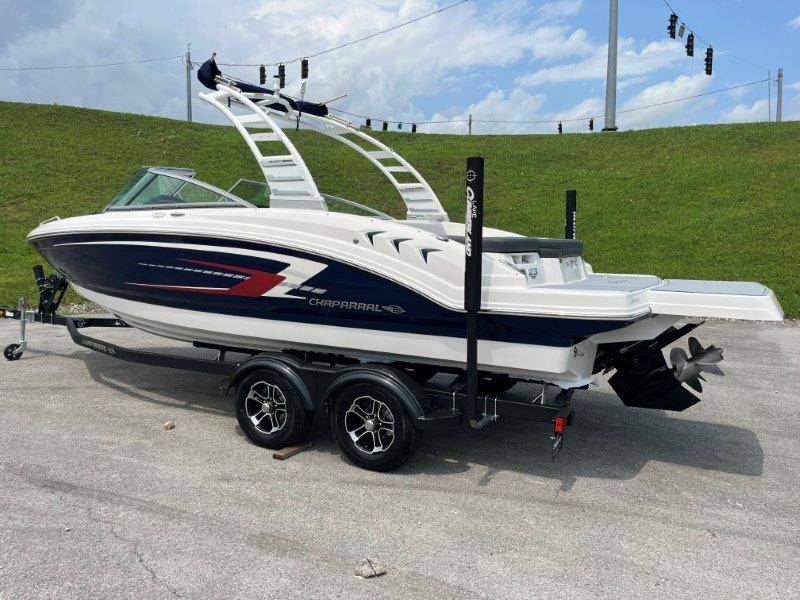 2025 Chaparral 23 SSi BEST IN CLASS Everything that has made Chaparral's wildly popular SSi Series the talk of the waterways, gets bigger and better with the amazing 23 SSi. With a ChaparralONE price including the trailer, the 23 SSi's style is captivating, but its appeal is more than skin deep. Stainless steel hardware, composite seat bases, a cockpit drainage system, an Extended V-Plane running surface, and a vinyl-wrapped dash are keeping with the Chaparral DNA. MerCruiser and Volvo power options deliver crisp low-end, controlled midrange, and exciting full-throttle performance. Step up to the 23 SSi and enjoy U-Shaped cockpit seating, a spacious bow, and a dual-direction chaise lounge. Features may include: EXTERIOR COLORS/GRAPHICS Color Selection for Hull Side Gelcoat with Color Matched Deck Accent Graphics (Alloy Gray, Biscayne Blue, Black, Fire Red, Steel Blue or White) – Note: with White Boat Selection the Deck Accent Graphics can be any Color POWER Three Blade Aluminum Prop CANVAS / TOPS / TOWERS Color Coordinated Bimini Top with Boot and Aluminum Frame (Sunbrella) Shipping Cover DASH / ELECTRICAL Aluminum Switch Panels with Toggle Switches and Water Resistant DC Breakers Custom Molded Fiberglass Dash with Hand Stitched and Wrapped Visor Electrical Connectors Triple O-Ring Sealed and Water Tight Grounding Bars - Engine and Dash Loom Wrapped Wiring Polished Spoke Steering Wheel Power Assisted Steering with Tilt Wheel Simrad GO7 Touch Multifunction Chartplotter/Fishfinder Combination with SS60 Transducer, Engine Data and Audio Control COCKPIT Bow Cushions with Storage Underneath Bow Ice Chest (Insulated) Bow Walk Thru Door Built in Cooler (70-Quart) Under Rear Bench Seat Cockpit Drainage System (CDS) Cockpit Layout: Two Bucket Seats (Slide and Swivel) with Logo Badging, U-Shaped Seating and Aft Hinged Sundeck with Walk-Thru, Lounge Position and Aft Facing Seat Cockpit LED Lighting DC Power Plug -12volt Diamond Pattern Non-Skid Surfaces Fiberglass Molded Bowrider Area Interior Color Packages: Cayenne White or Sterling Gray Lockable Glove Box with Foam Protectant Pad Molded-In Footrest - Port and Starboard Premium Sound System Includes: AM/FM Bluetooth and Remote Control thru NMEA Interface (Compatible for Sirius Satellite) Premium Stain Resistant Silicone Cockpit Fabric Side Panels with Coaming Storage Stainless Steel Cockpit Grab Handles Stainless Steel Drinkholders (8) UTILITY Anchor Locker with Molded Lid Battery On/Off Switch Battery Tray Bilge Pump - Automatic Electric Horn Extended V-Plane Hull Garboard Drain Heavy Duty Bilge Blower Integrated Swim Platform Kevlar Reinforced Hull Laminate Lifetime Limited Hull Warranty Navigational Lights - LED NMMA Certified using ABYC Standards Perma-Panel Structural System Plastic Fuel Tank with Stainless Steel Deck Fill Plate Premium Hydropel Resin - Blister Resistant PVC Rubrail with Stainless Steel Insert Stainless Steel Hardware, Including Bow and Stern Eyes and Ski Tow