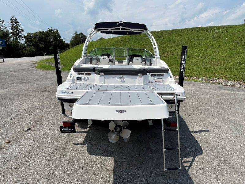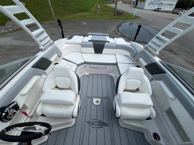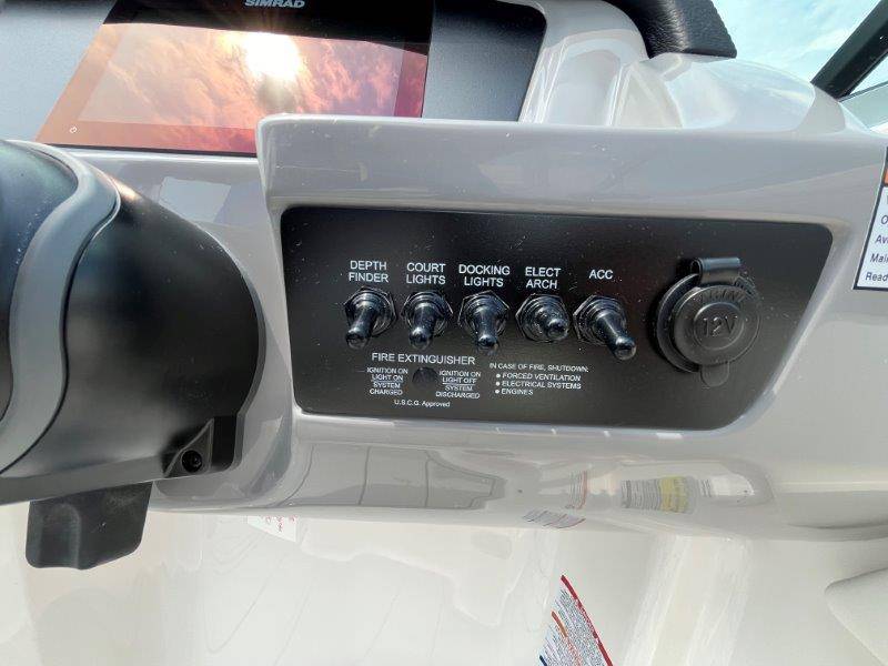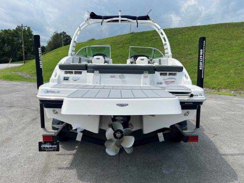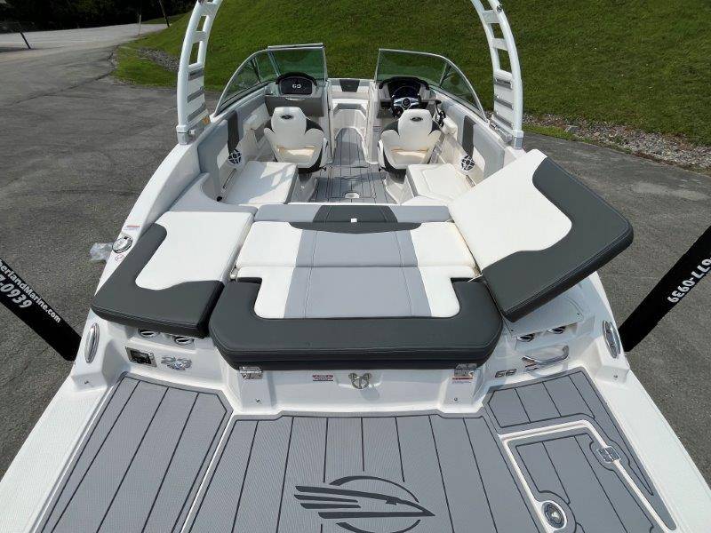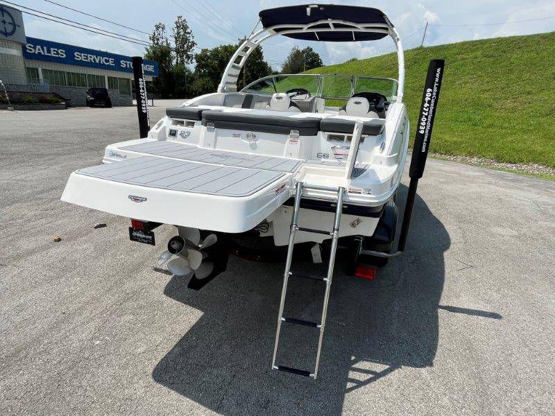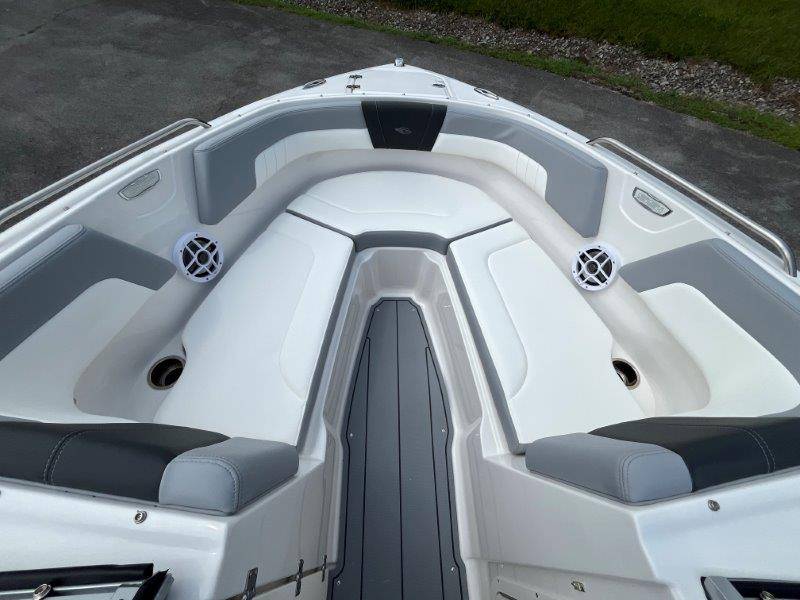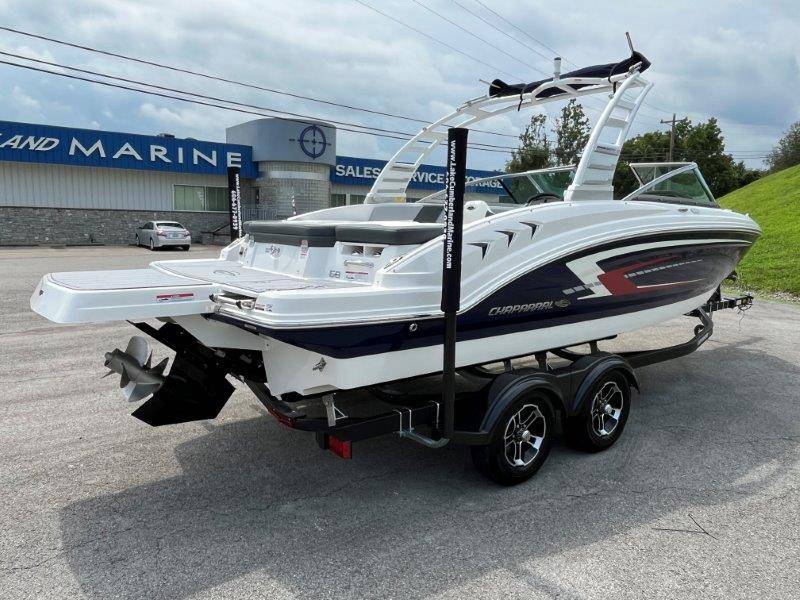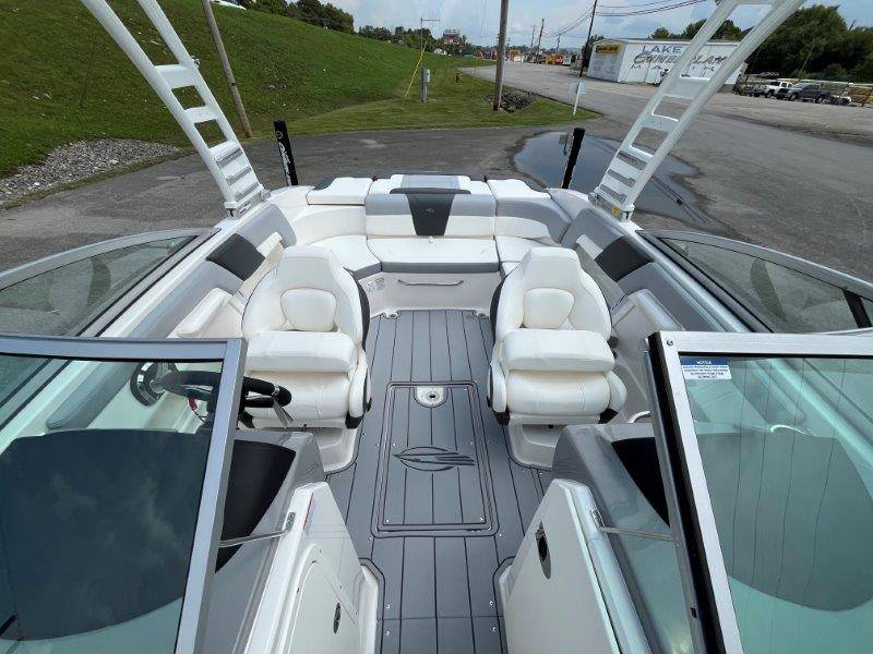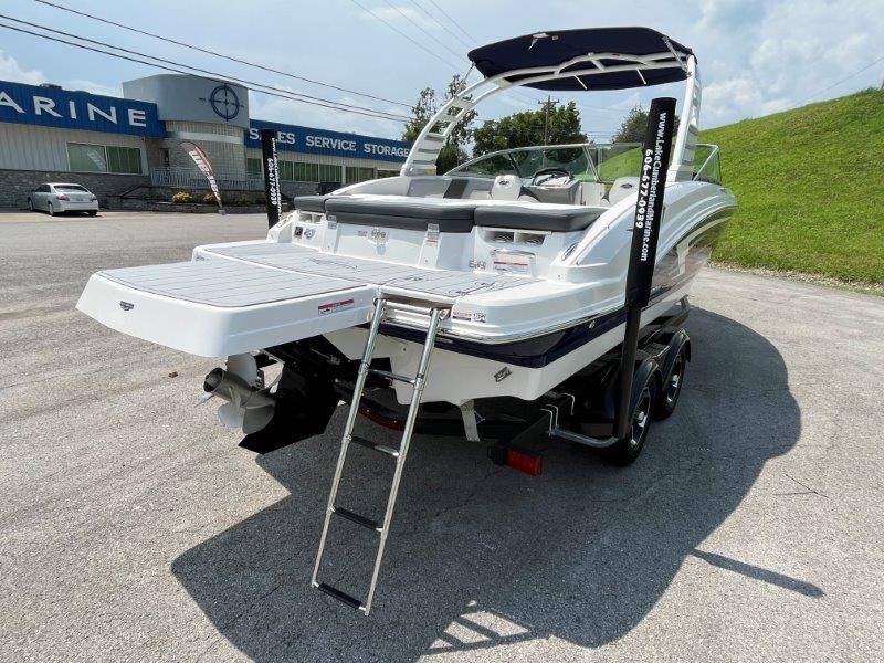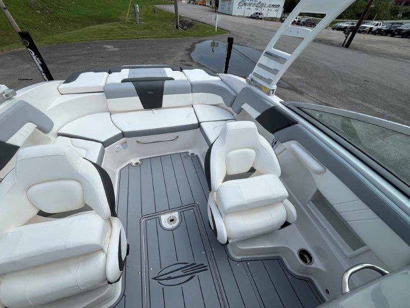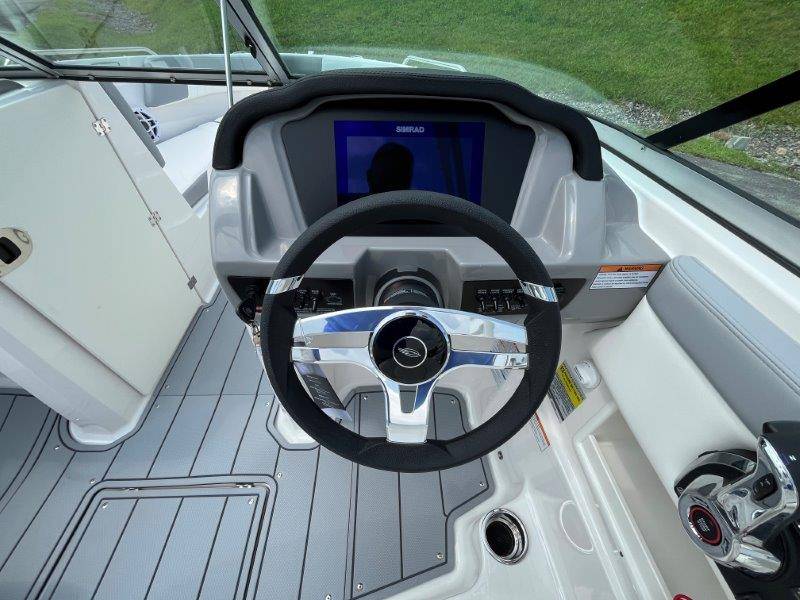 2025 Chaparral 23 SSi BEST IN CLASS Everything that has made Chaparral's wildly popular SSi Series the talk of the waterways, gets bigger and better with the amazing 23 SSi. With a ChaparralONE price including the trailer, the 23 SSi's style is captivating, but its appeal is more than skin deep. Stainless steel hardware, composite seat bases, a cockpit drainage system, an Extended V-Plane running surface, and a vinyl-wrapped dash are keeping with the Chaparral DNA. MerCruiser and Volvo power options deliver crisp low-end, controlled midrange, and exciting full-throttle performance. Step up to the 23 SSi and enjoy U-Shaped cockpit seating, a spacious bow, and a dual-direction chaise lounge. Features may include: EXTERIOR COLORS/GRAPHICS Color Selection for Hull Side Gelcoat with Color Matched Deck Accent Graphics (Alloy Gray, Biscayne Blue, Black, Fire Red, Steel Blue or White) – Note: with White Boat Selection the Deck Accent Graphics can be any Color POWER Three Blade Aluminum Prop CANVAS / TOPS / TOWERS Color Coordinated Bimini Top with Boot and Aluminum Frame (Sunbrella) Shipping Cover DASH / ELECTRICAL Aluminum Switch Panels with Toggle Switches and Water Resistant DC Breakers Custom Molded Fiberglass Dash with Hand Stitched and Wrapped Visor Electrical Connectors Triple O-Ring Sealed and Water Tight Grounding Bars - Engine and Dash Loom Wrapped Wiring Polished Spoke Steering Wheel Power Assisted Steering with Tilt Wheel Simrad GO7 Touch Multifunction Chartplotter/Fishfinder Combination with SS60 Transducer, Engine Data and Audio Control COCKPIT Bow Cushions with Storage Underneath Bow Ice Chest (Insulated) Bow Walk Thru Door Built in Cooler (70-Quart) Under Rear Bench Seat Cockpit Drainage System (CDS) Cockpit Layout: Two Bucket Seats (Slide and Swivel) with Logo Badging, U-Shaped Seating and Aft Hinged Sundeck with Walk-Thru, Lounge Position and Aft Facing Seat Cockpit LED Lighting DC Power Plug -12volt Diamond Pattern Non-Skid Surfaces Fiberglass Molded Bowrider Area Interior Color Packages: Cayenne White or Sterling Gray Lockable Glove Box with Foam Protectant Pad Molded-In Footrest - Port and Starboard Premium Sound System Includes: AM/FM Bluetooth and Remote Control thru NMEA Interface (Compatible for Sirius Satellite) Premium Stain Resistant Silicone Cockpit Fabric Side Panels with Coaming Storage Stainless Steel Cockpit Grab Handles Stainless Steel Drinkholders (8) UTILITY Anchor Locker with Molded Lid Battery On/Off Switch Battery Tray Bilge Pump - Automatic Electric Horn Extended V-Plane Hull Garboard Drain Heavy Duty Bilge Blower Integrated Swim Platform Kevlar Reinforced Hull Laminate Lifetime Limited Hull Warranty Navigational Lights - LED NMMA Certified using ABYC Standards Perma-Panel Structural System Plastic Fuel Tank with Stainless Steel Deck Fill Plate Premium Hydropel Resin - Blister Resistant PVC Rubrail with Stainless Steel Insert Stainless Steel Hardware, Including Bow and Stern Eyes and Ski Tow